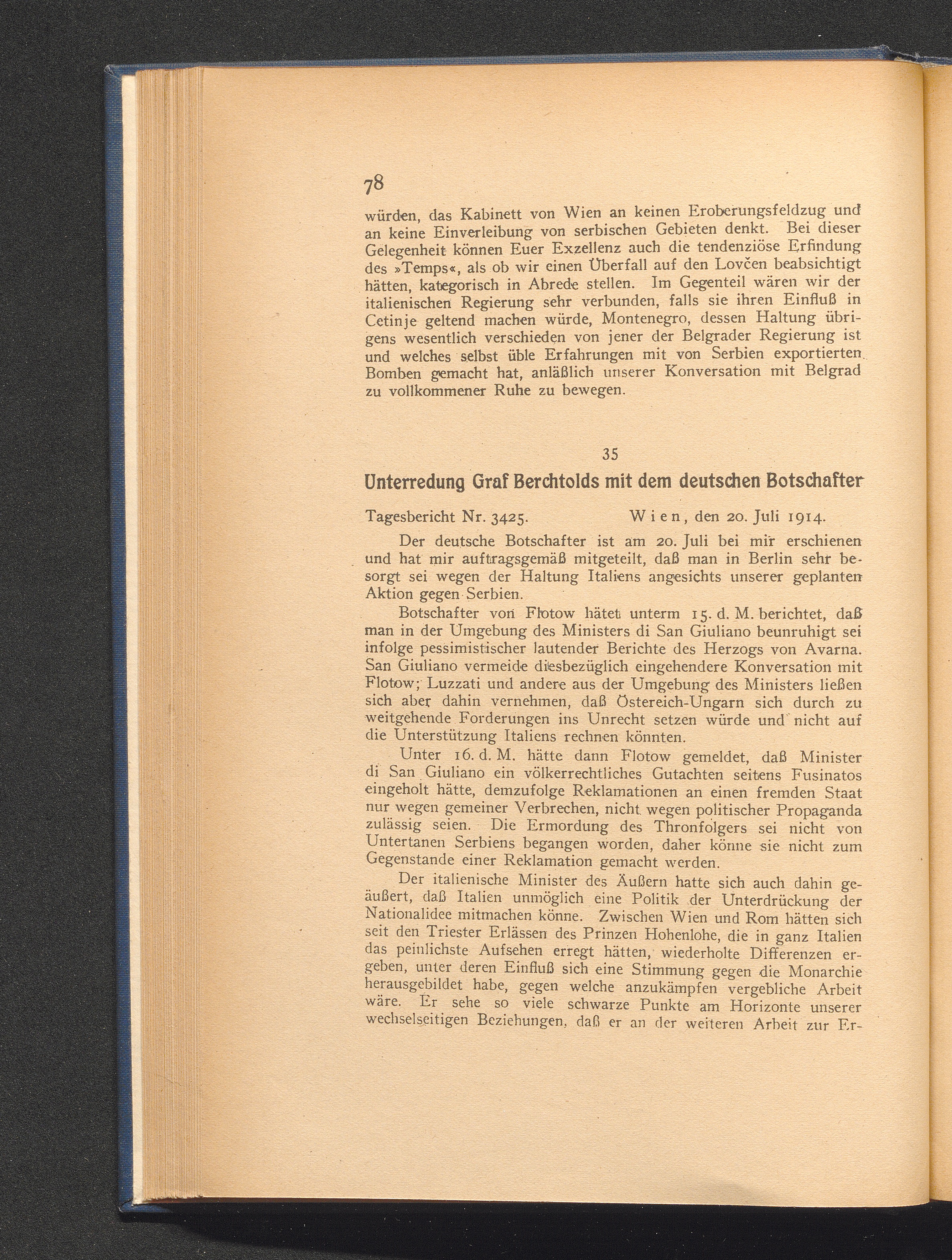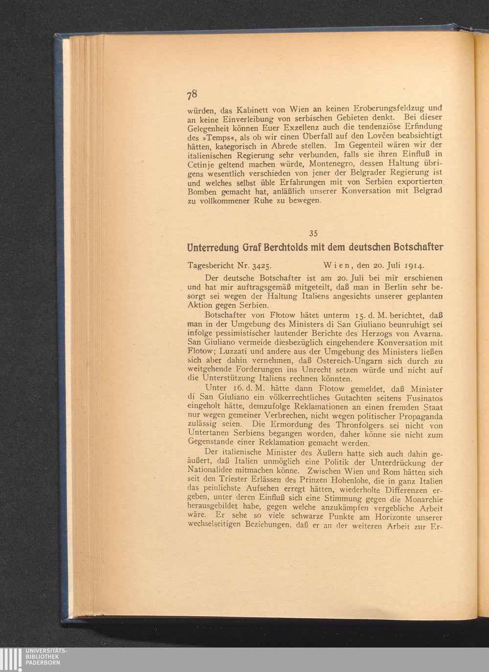 35. Wien, den 20. Juli 1914. Unterredung Graf Berchtolds mit dem deutschen Botsc[...]