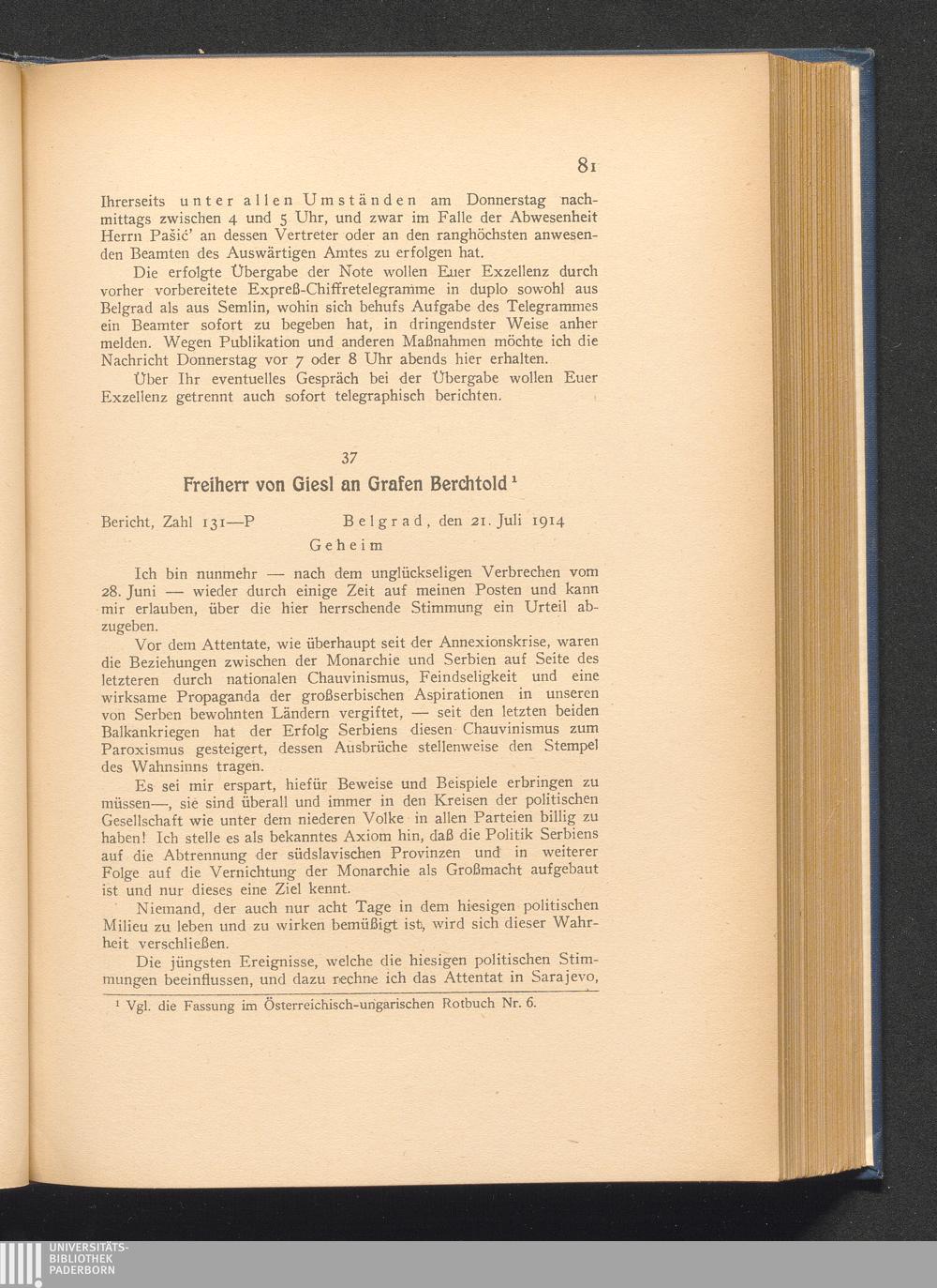 Diplomatische Aktenstücke zur Vorgeschichte des Krieges 1914 / hrsg. vom Staatsamt für Äußeres in Wien