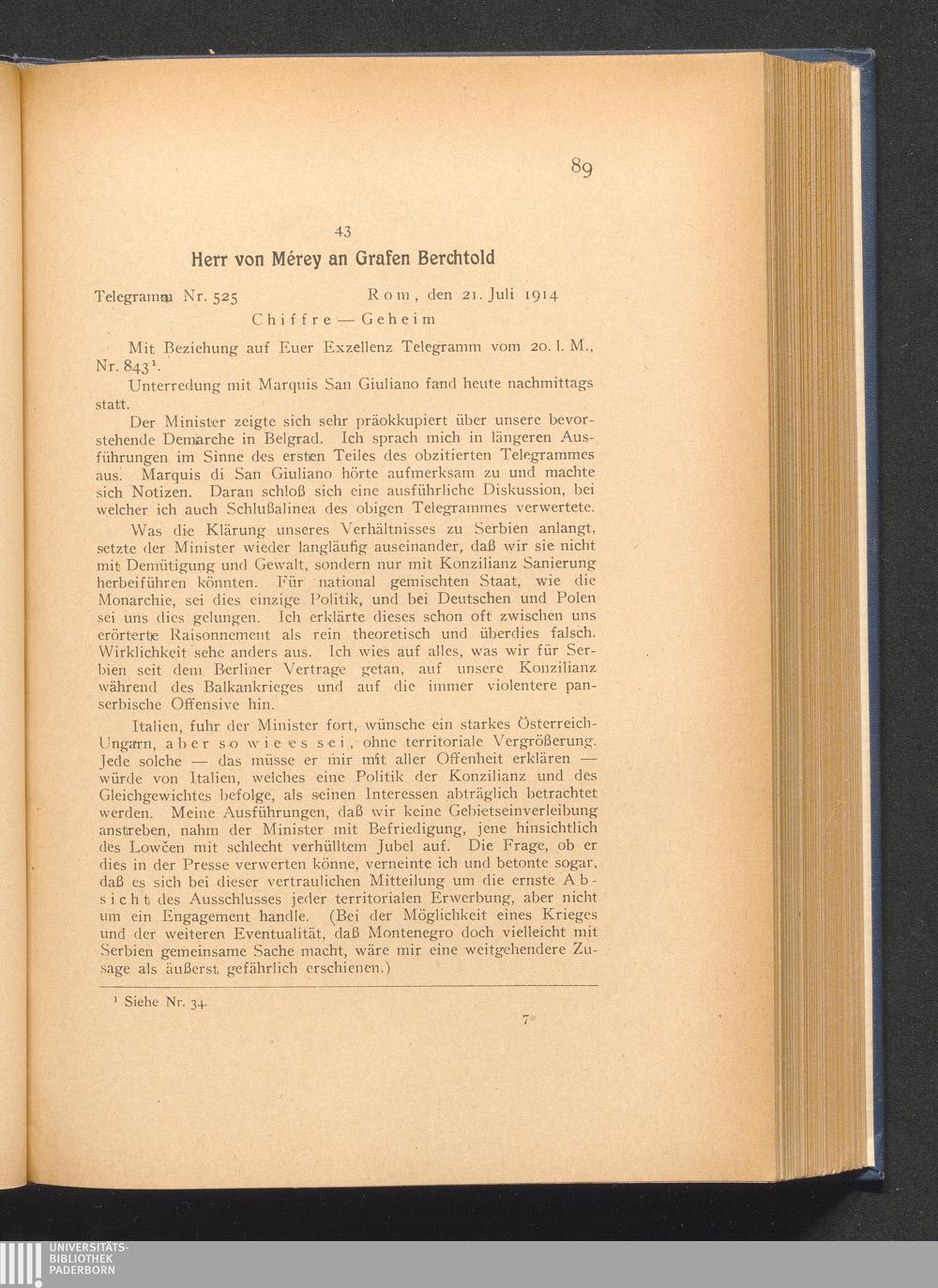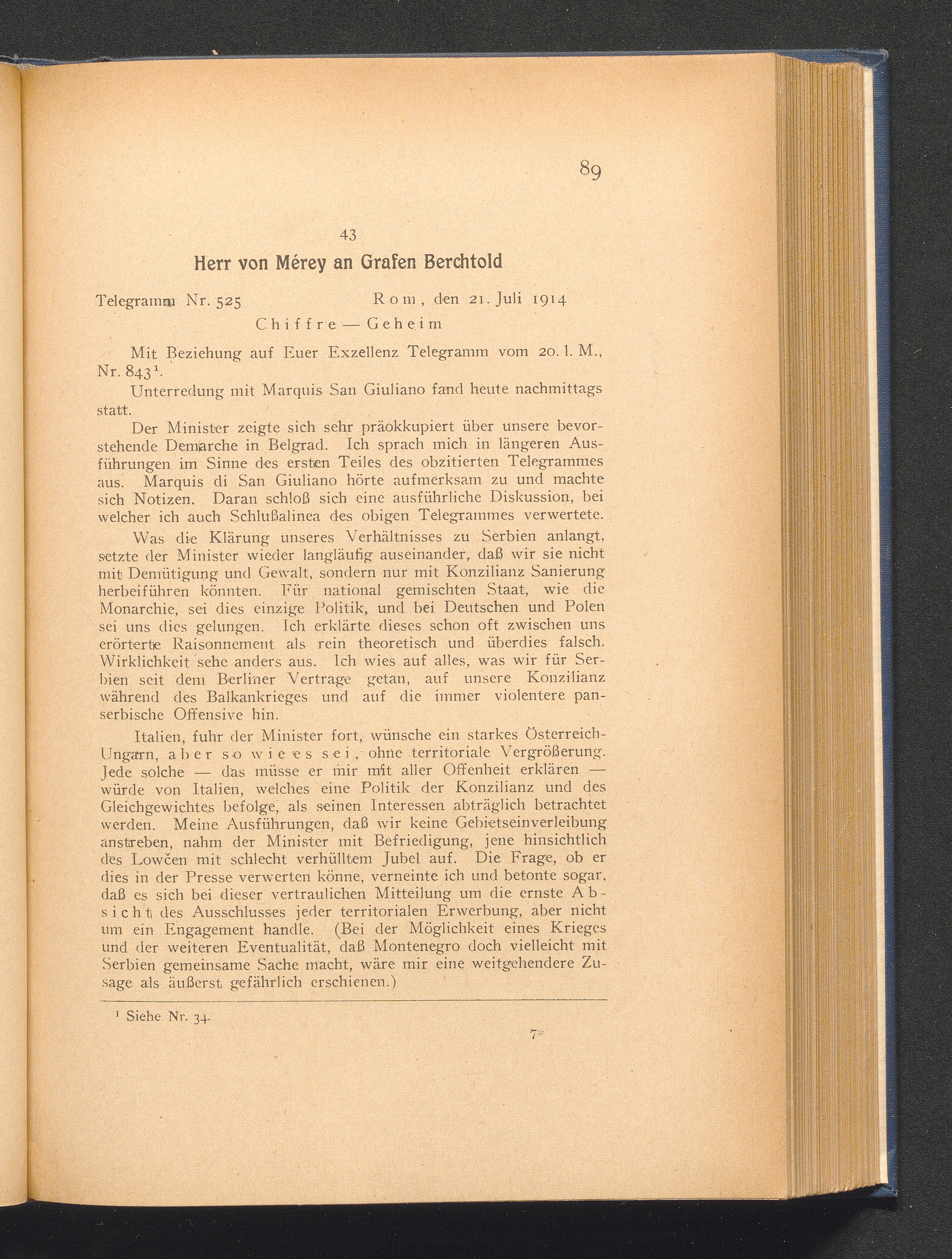 43. Rom, den 21. Juli 1914. Herr von Mérey an Grafen Berchtold.