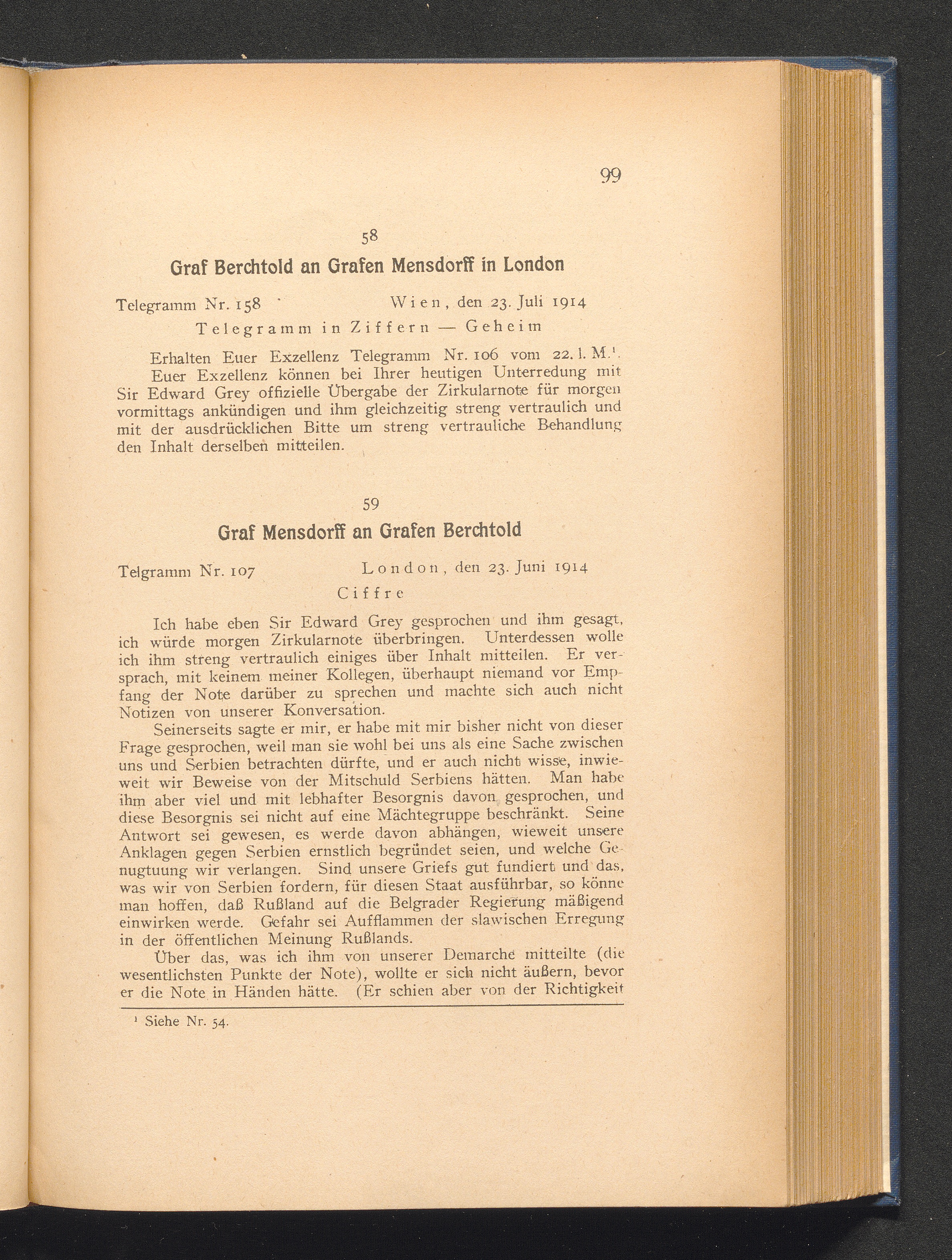 59. London, den 23 Juli. 1914. Graf Mensdorff an Grafen Berchtold.