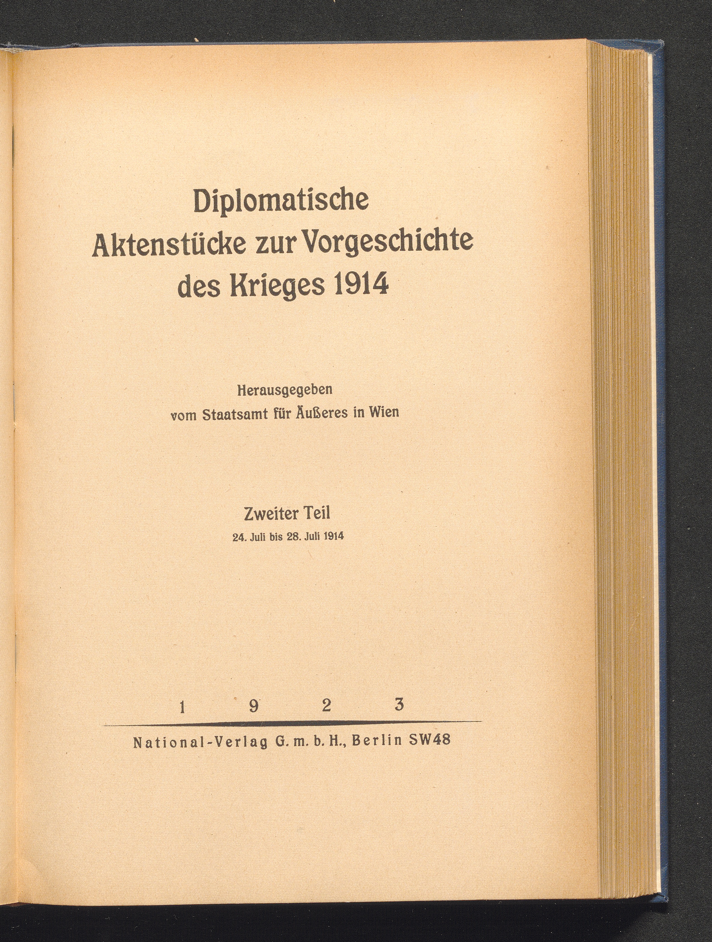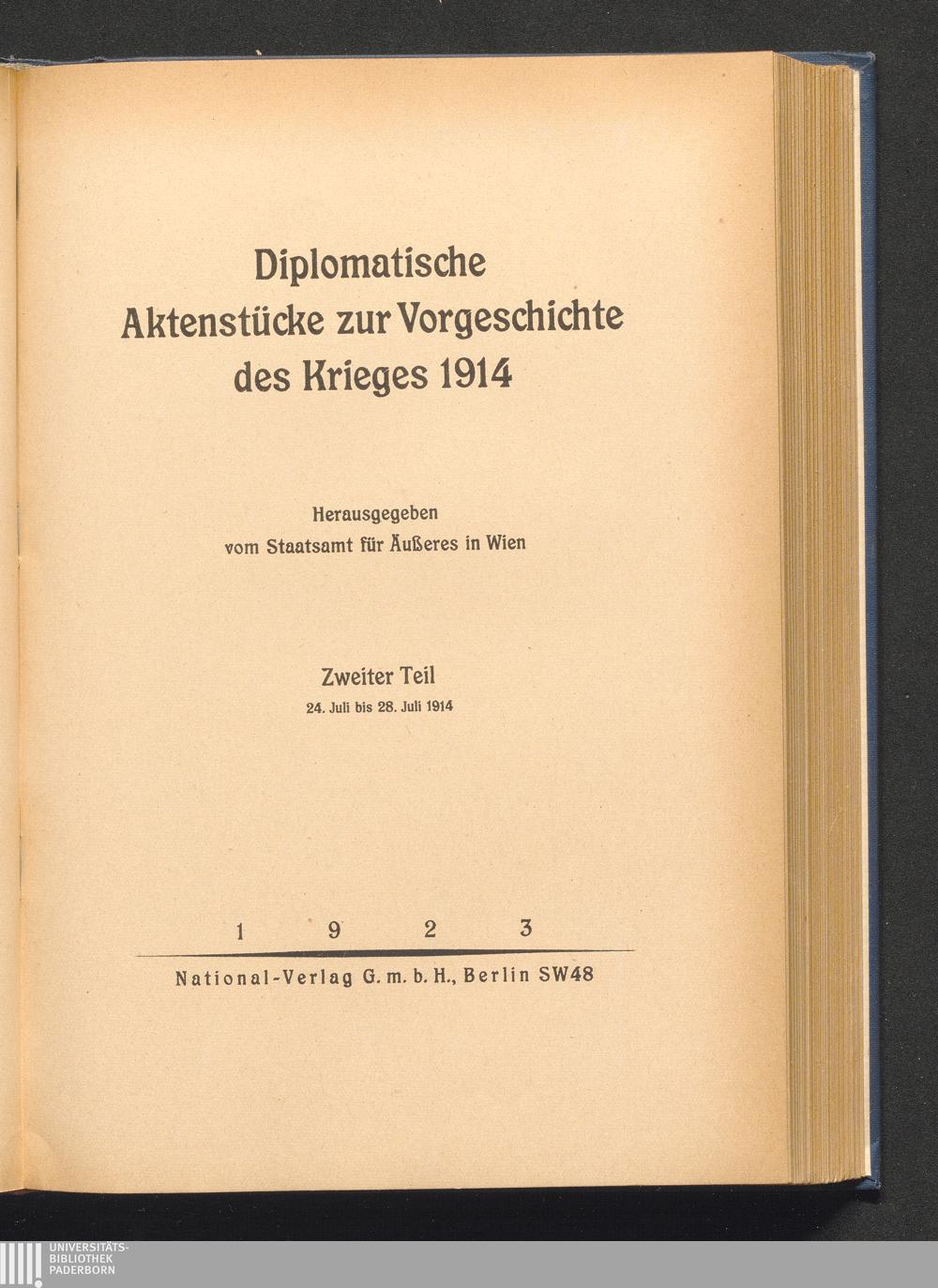 Diplomatische Aktenstücke zur Vorgeschichte des Krieges 1914 / hrsg. vom Staatsamt für Äußeres in Wien