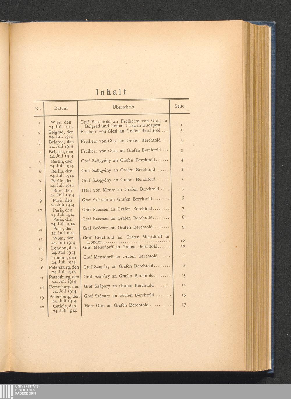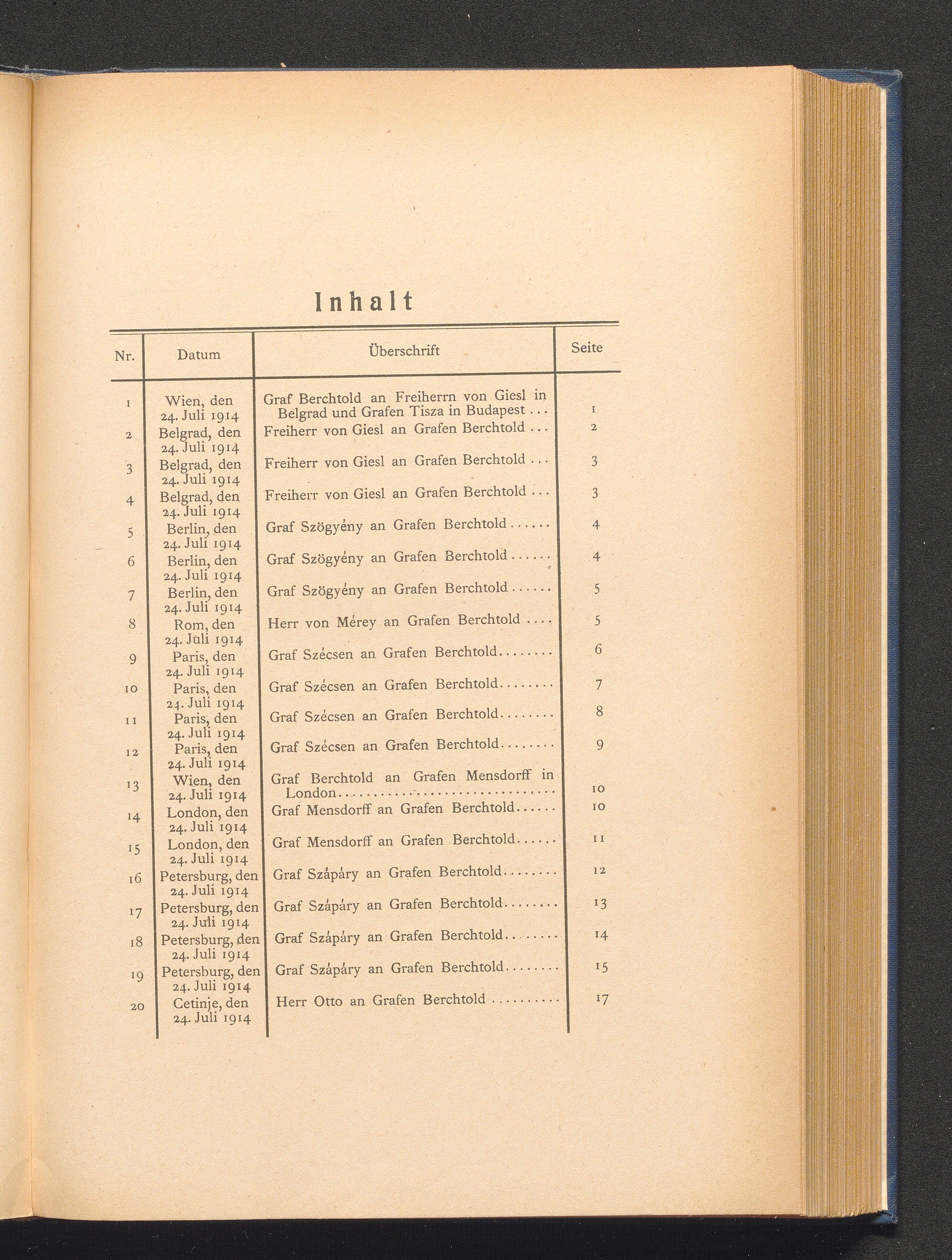 Diplomatische Aktenstücke zur Vorgeschichte des Krieges 1914