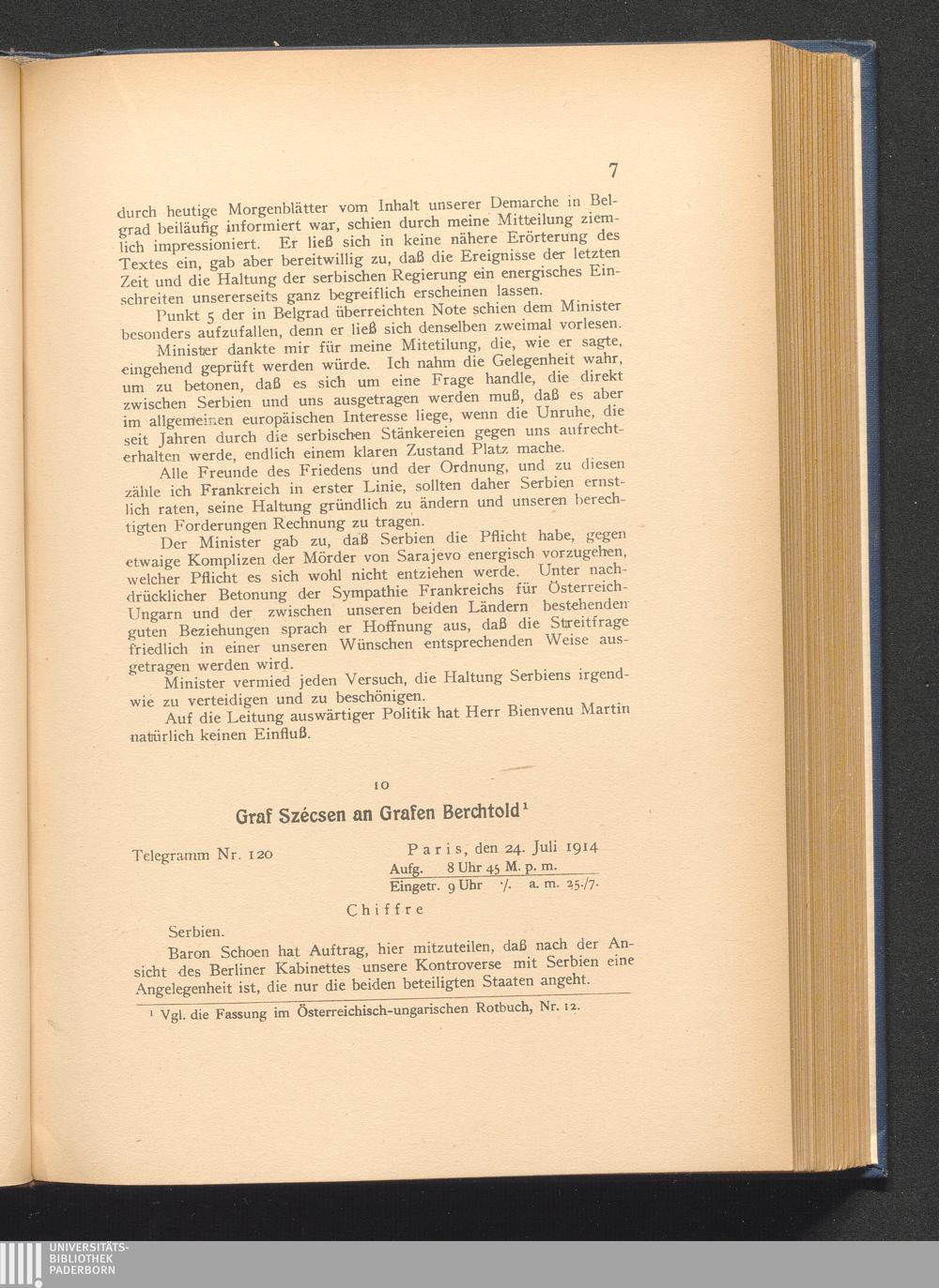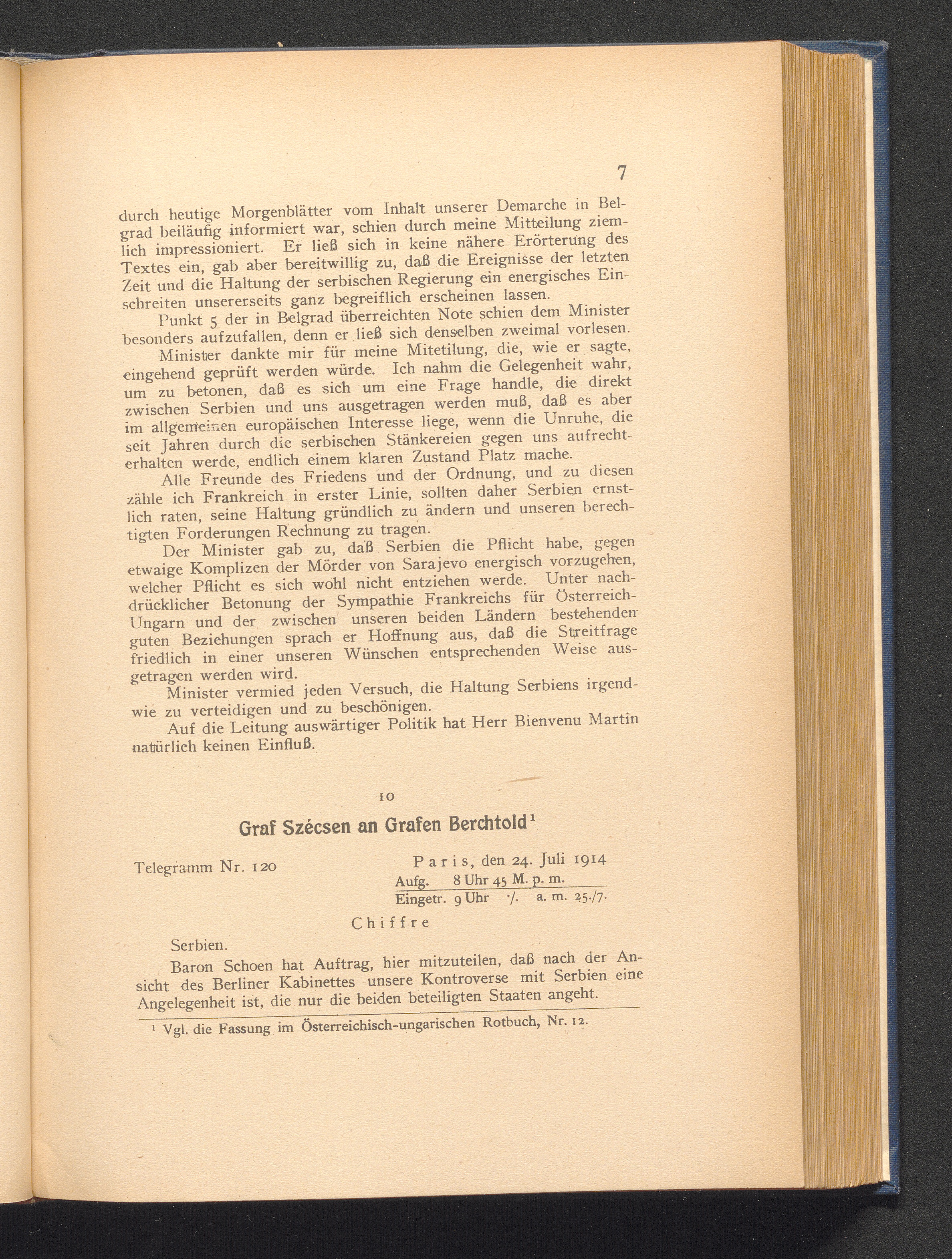 10. Paris, den 24. Juli 1914. Graf Szécsen an Grafen Berchtold.
