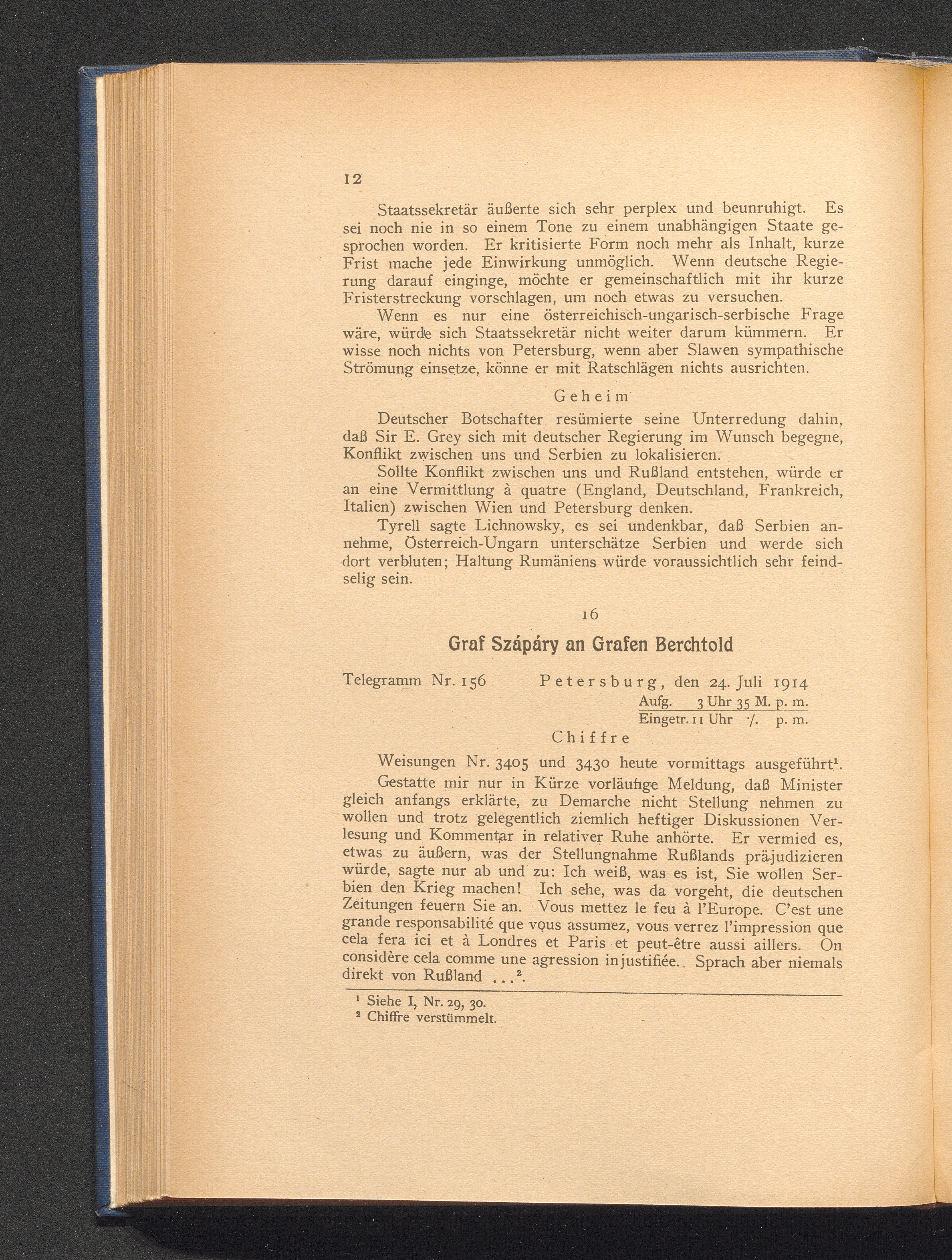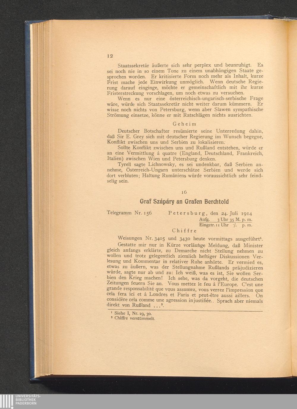 16. Petersburg, den 24. Juli 1914. Graf Szápáry an Grafen Berchtold.