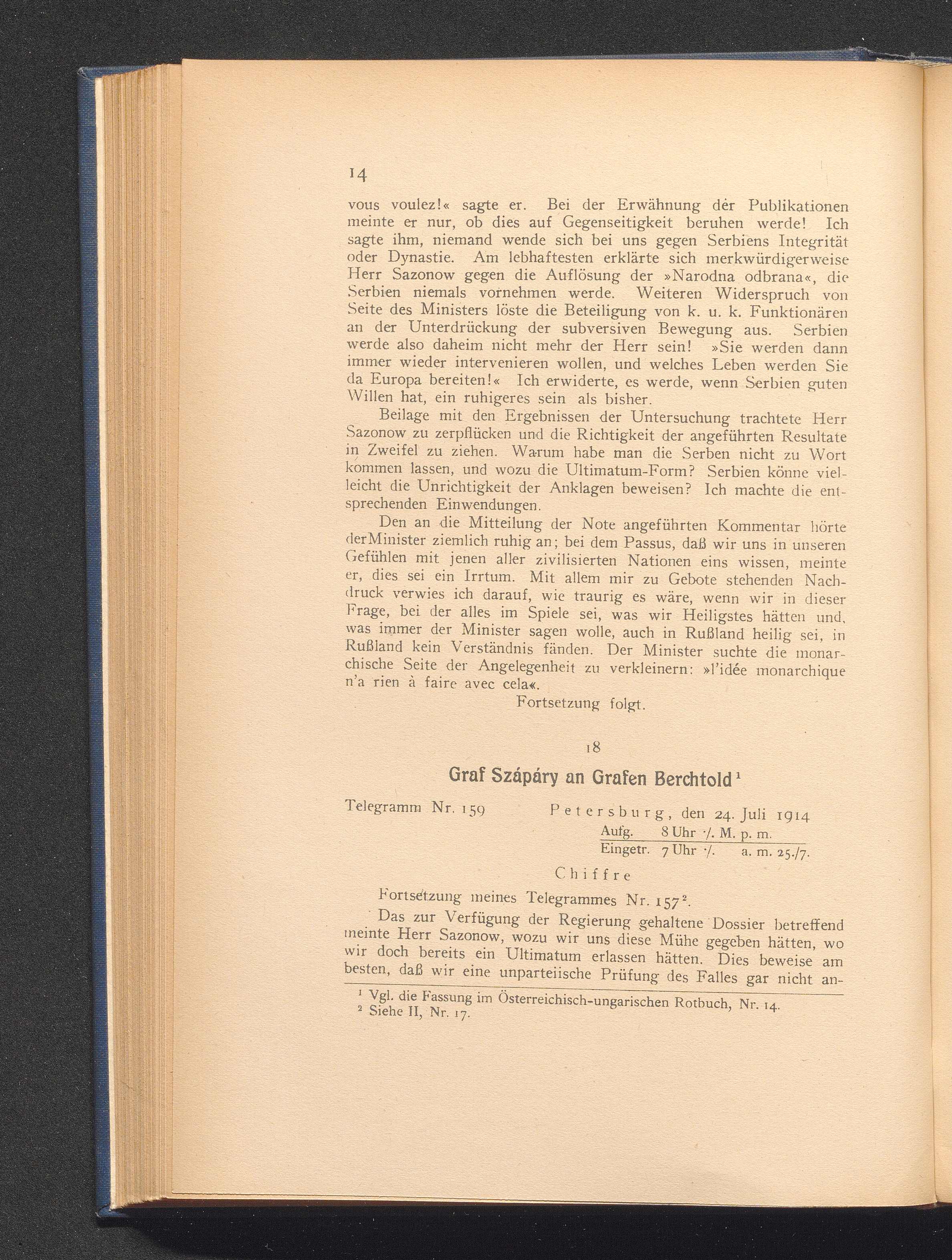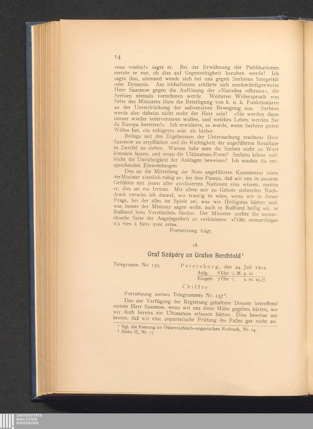 18. Petersburg, den 24. Juli 1914. Graf Szápáry an Grafen Berchtold.