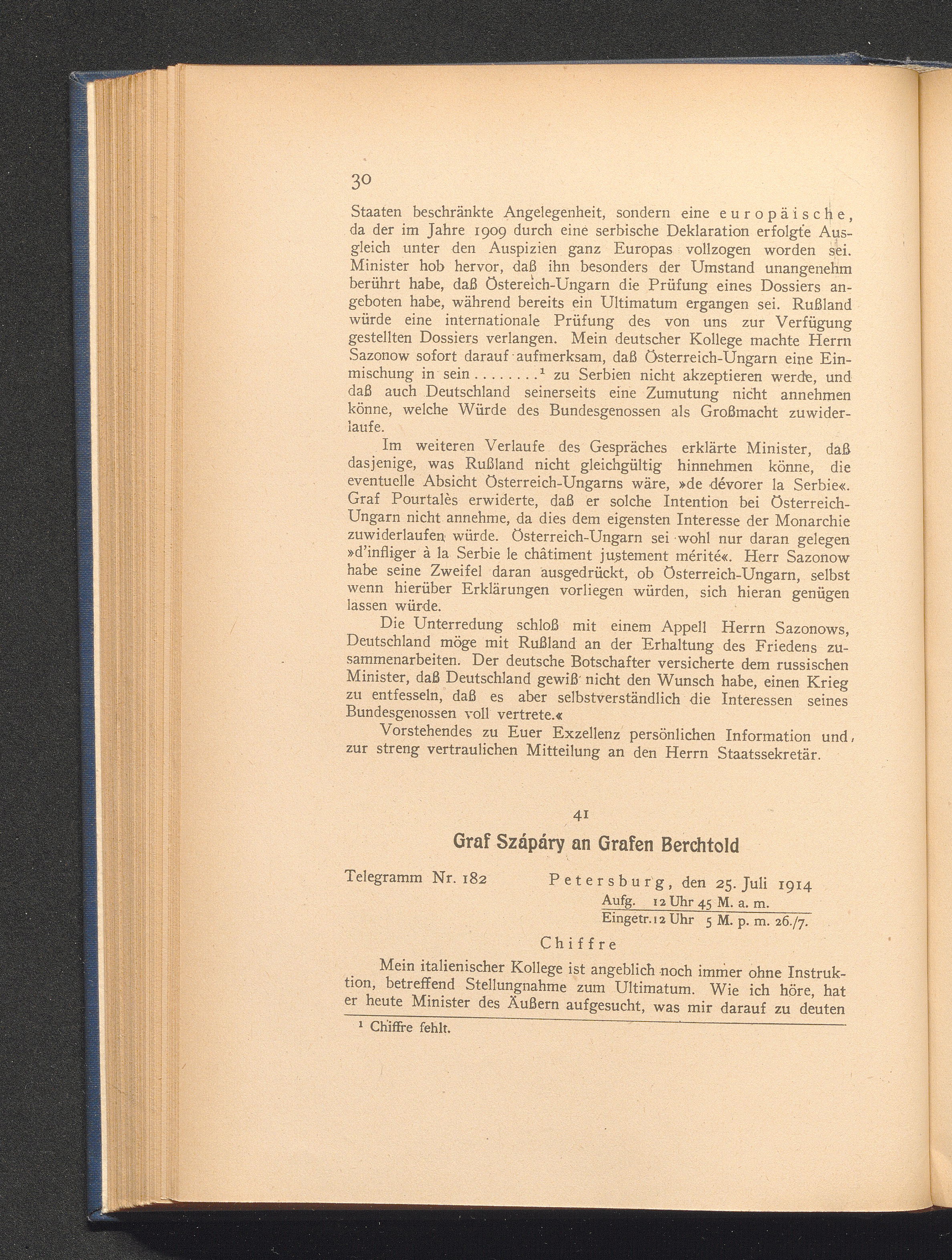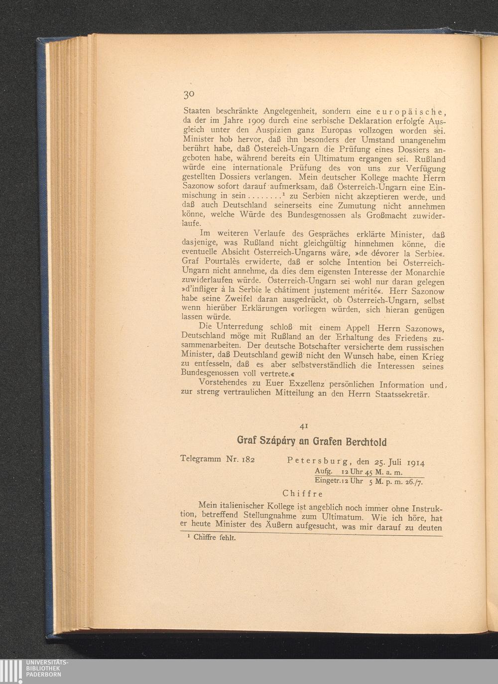 41. Petersburg, den 25. Juli 1914. Graf Szápáry an Grafen Berchtold.