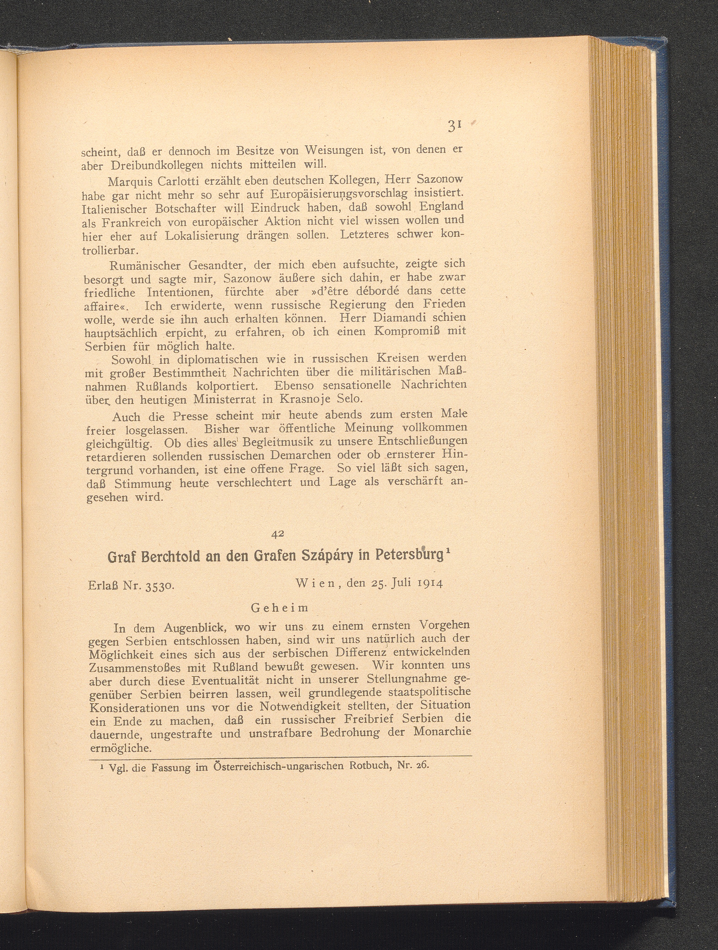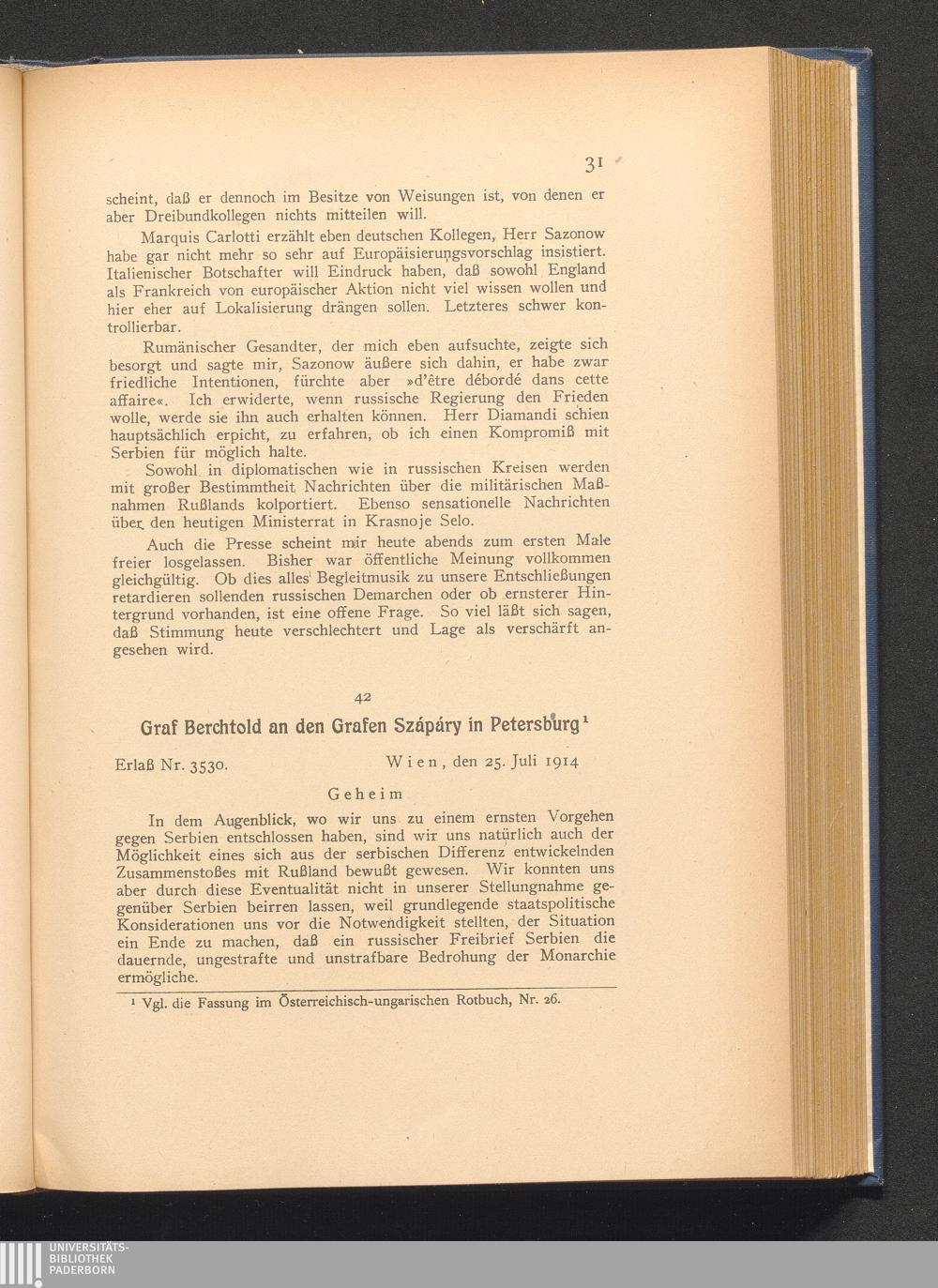 42. Wien, den 25. Juli 1914. Graf Berchtold an Grafen Szápáry in Petersburg.