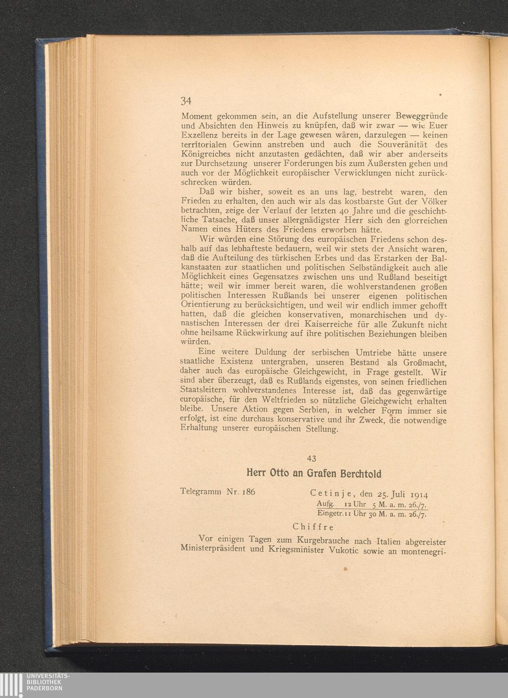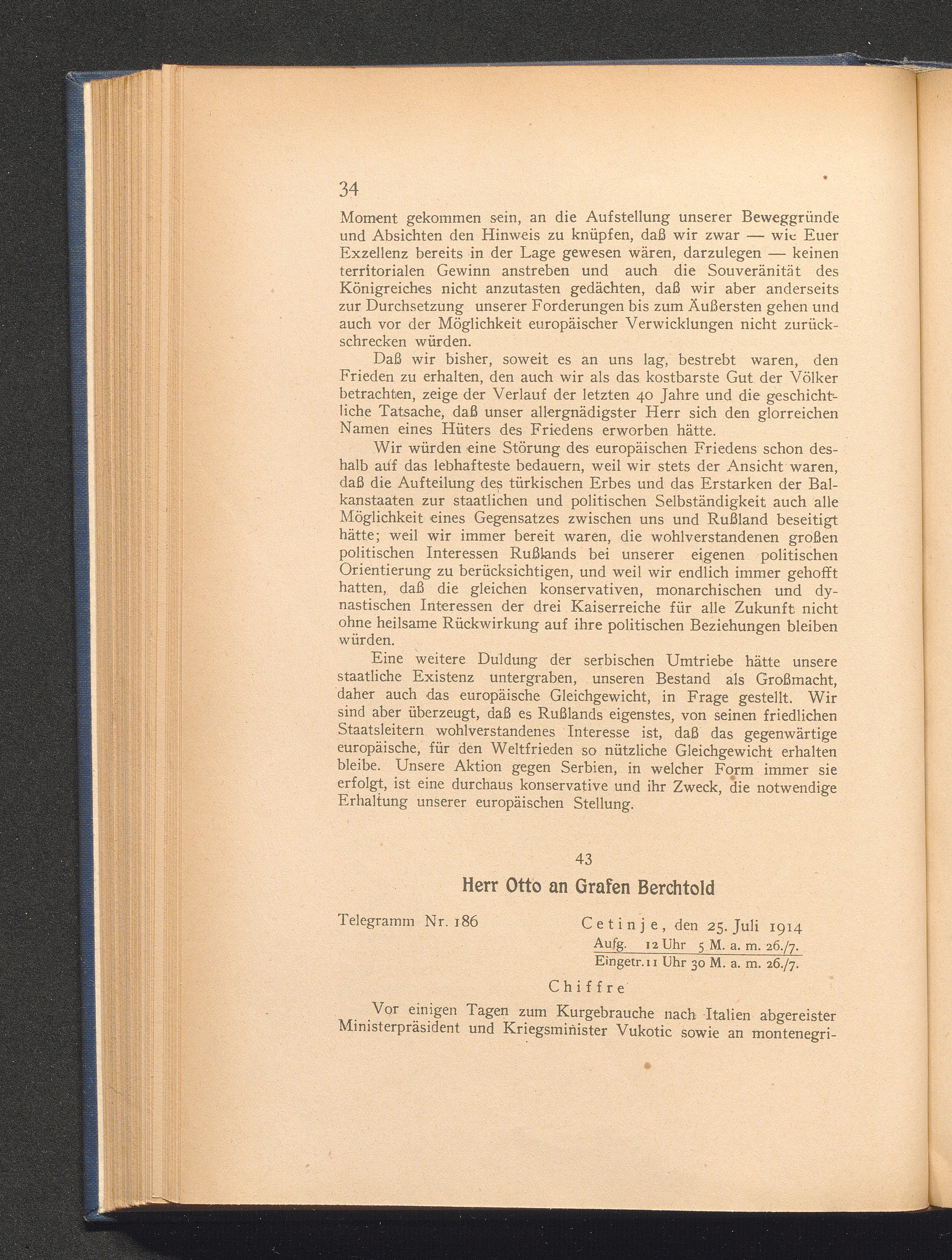 43. Cetinje, den 25. Juli 1914. Herr Otto an Grafen Berchtold.