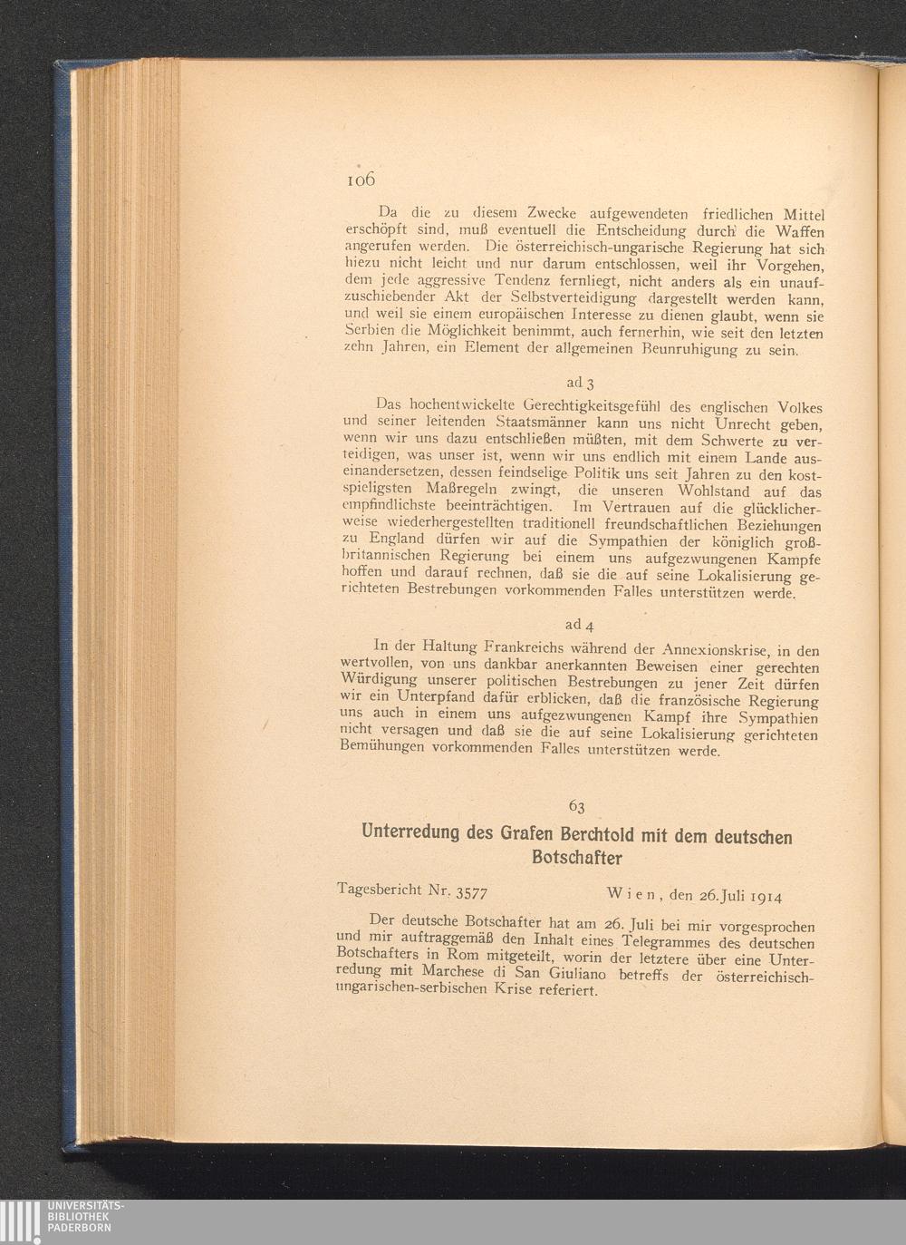 63. Wien, den 26. Juli 1914. Unterredung des Grafen Berchtold mit dem deutschen [...]
