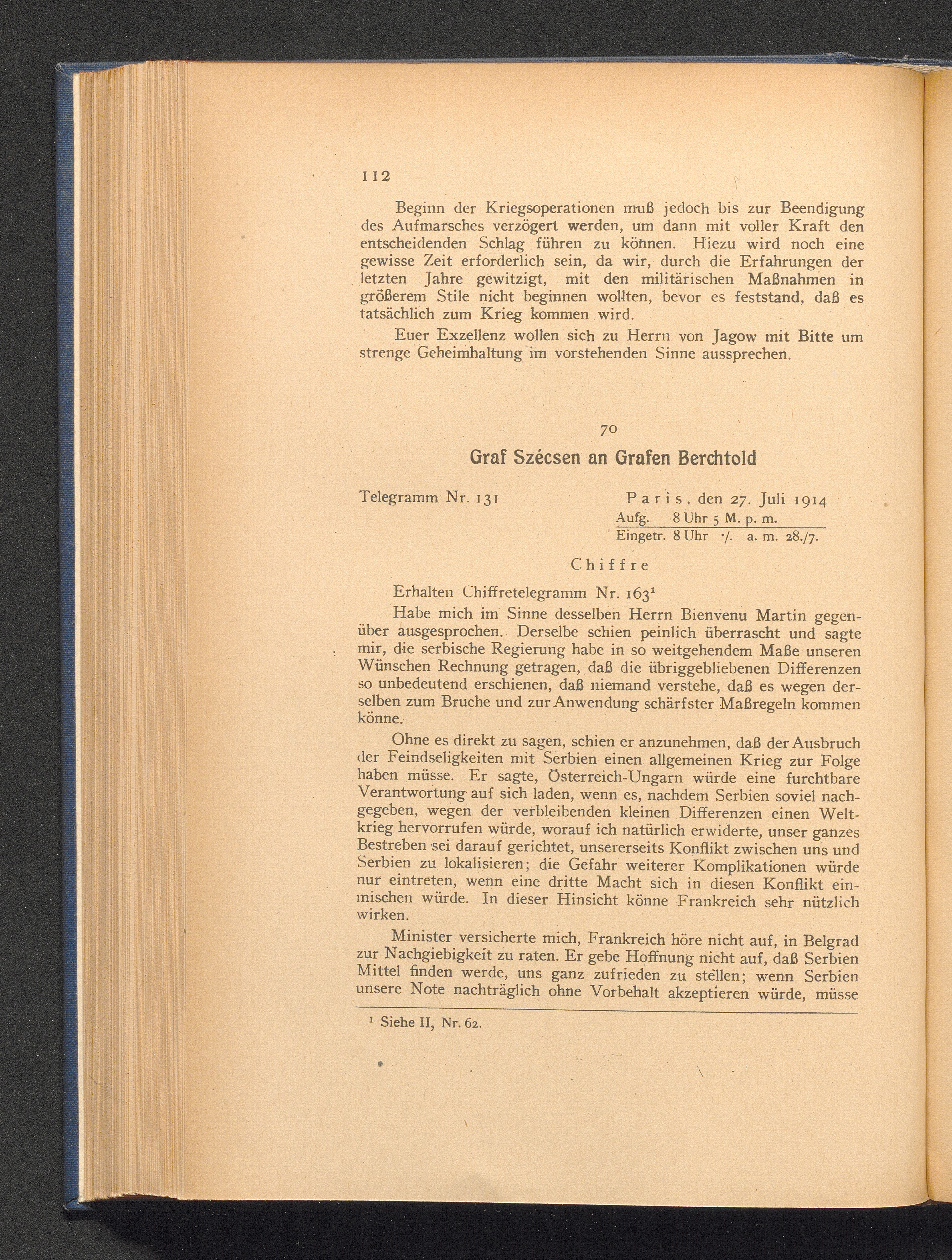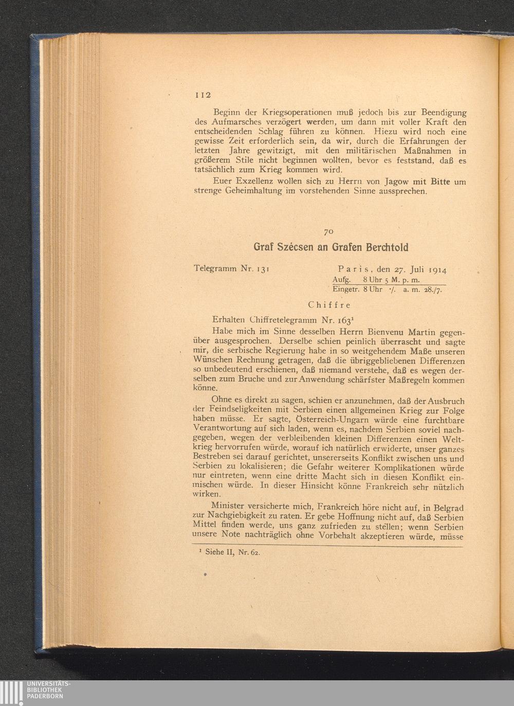 70. Paris, den 27. Juli 1914. Graf Szécsen an Grafen Berchtold.