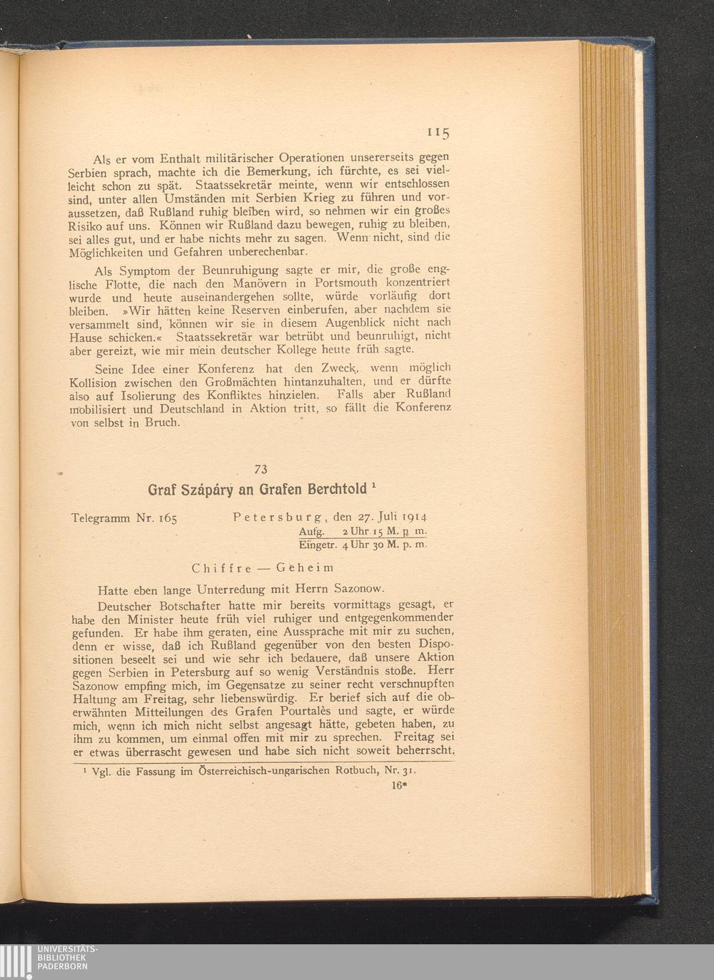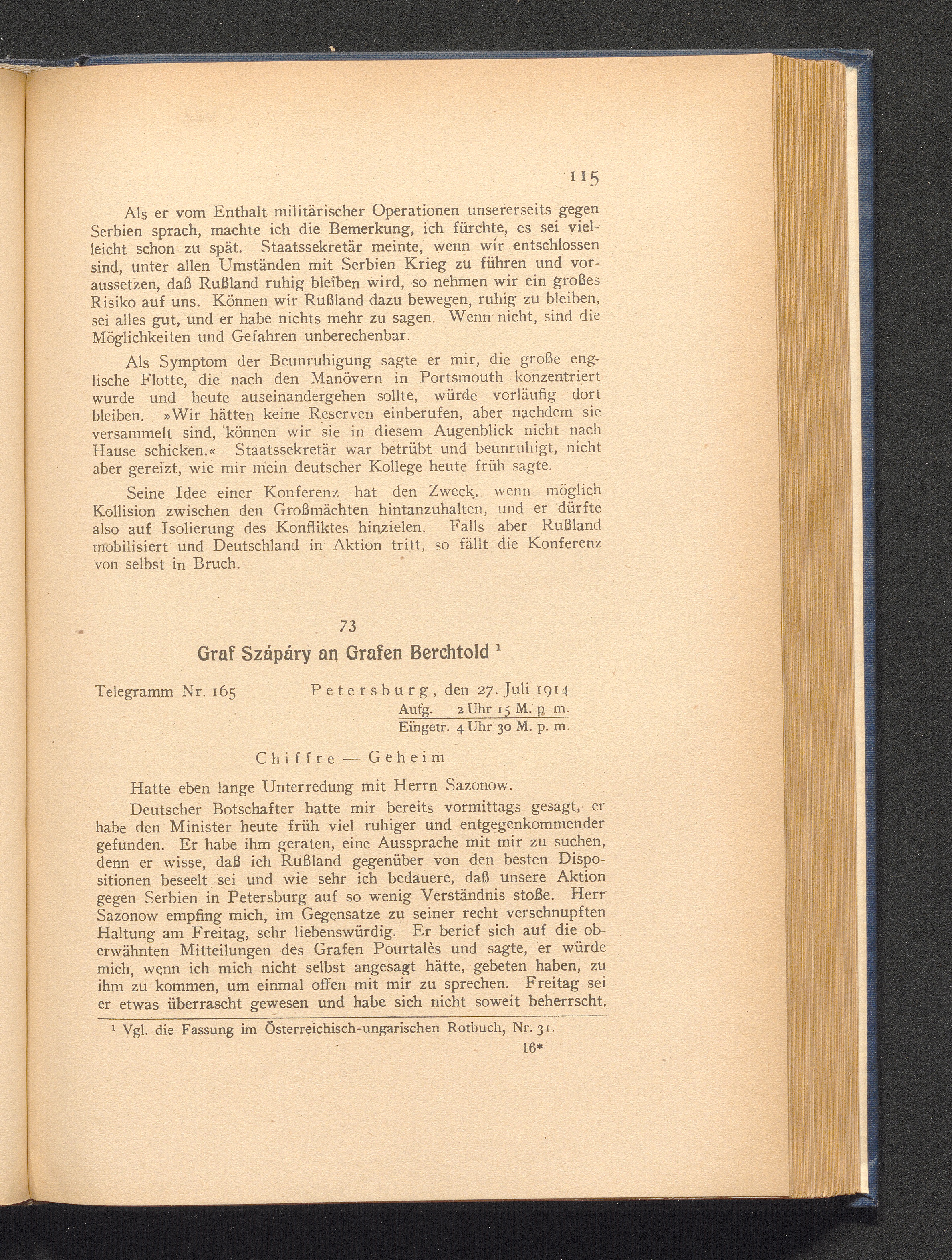 73. Petersburg, den 27. Juli 1914. Graf Szápáry an Grafen Berchtold.