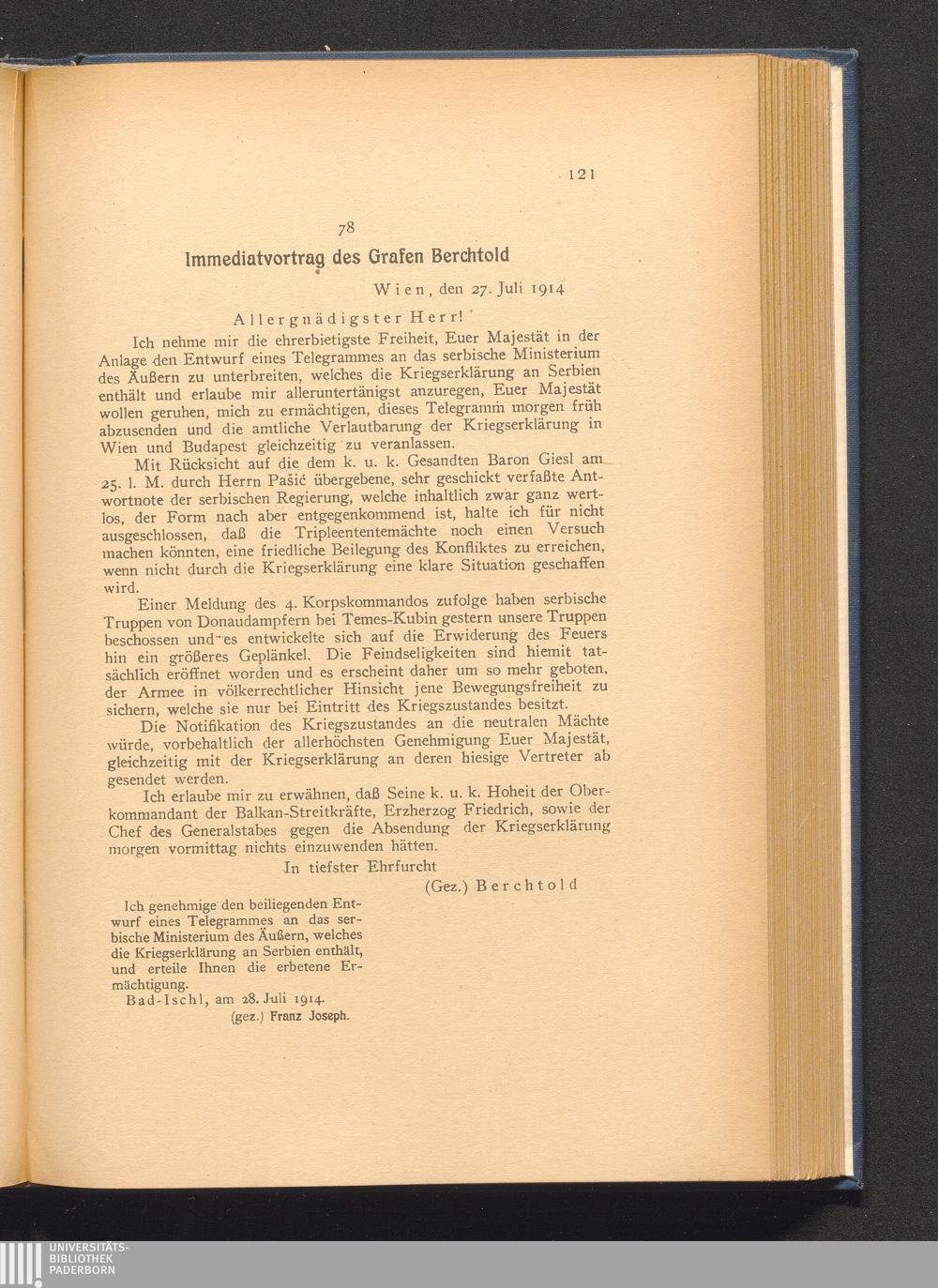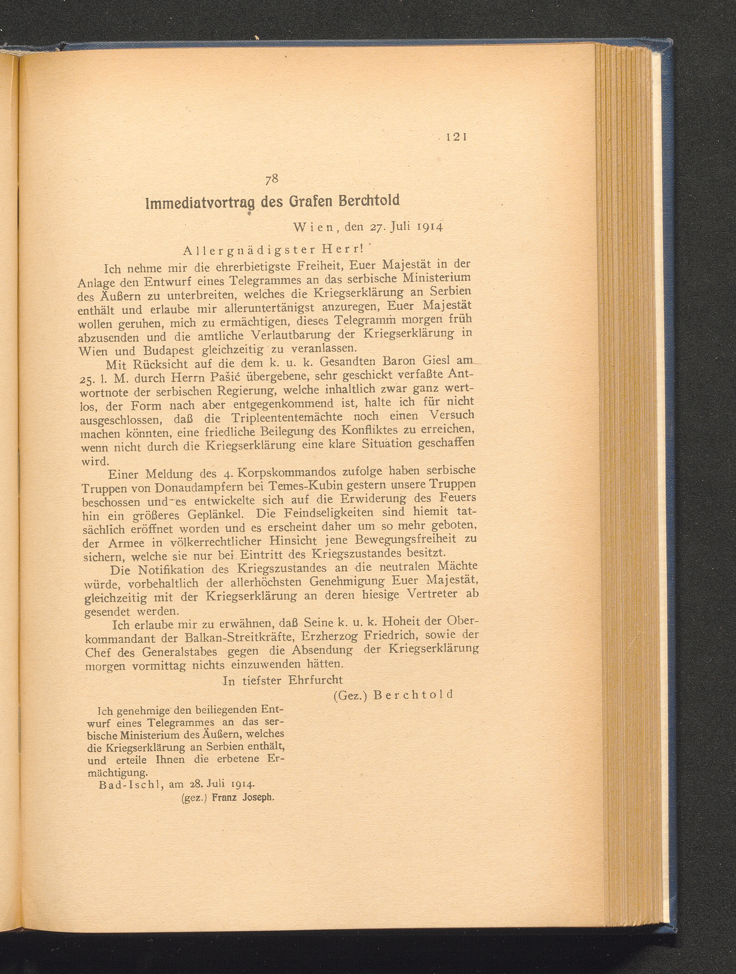 78. Wien, den 27. Juli 1914. Immediatvortrag des Grafen Berchtold.