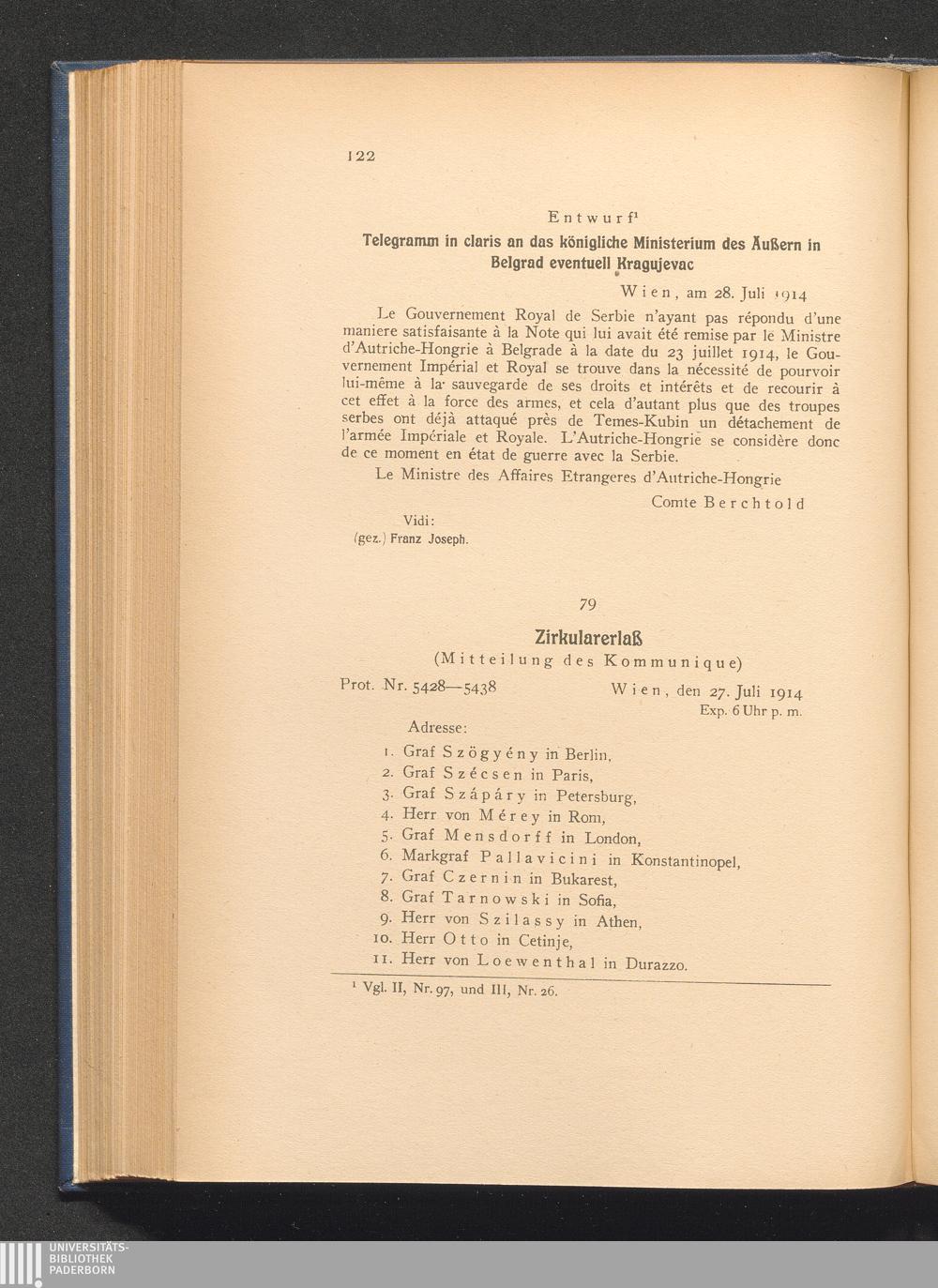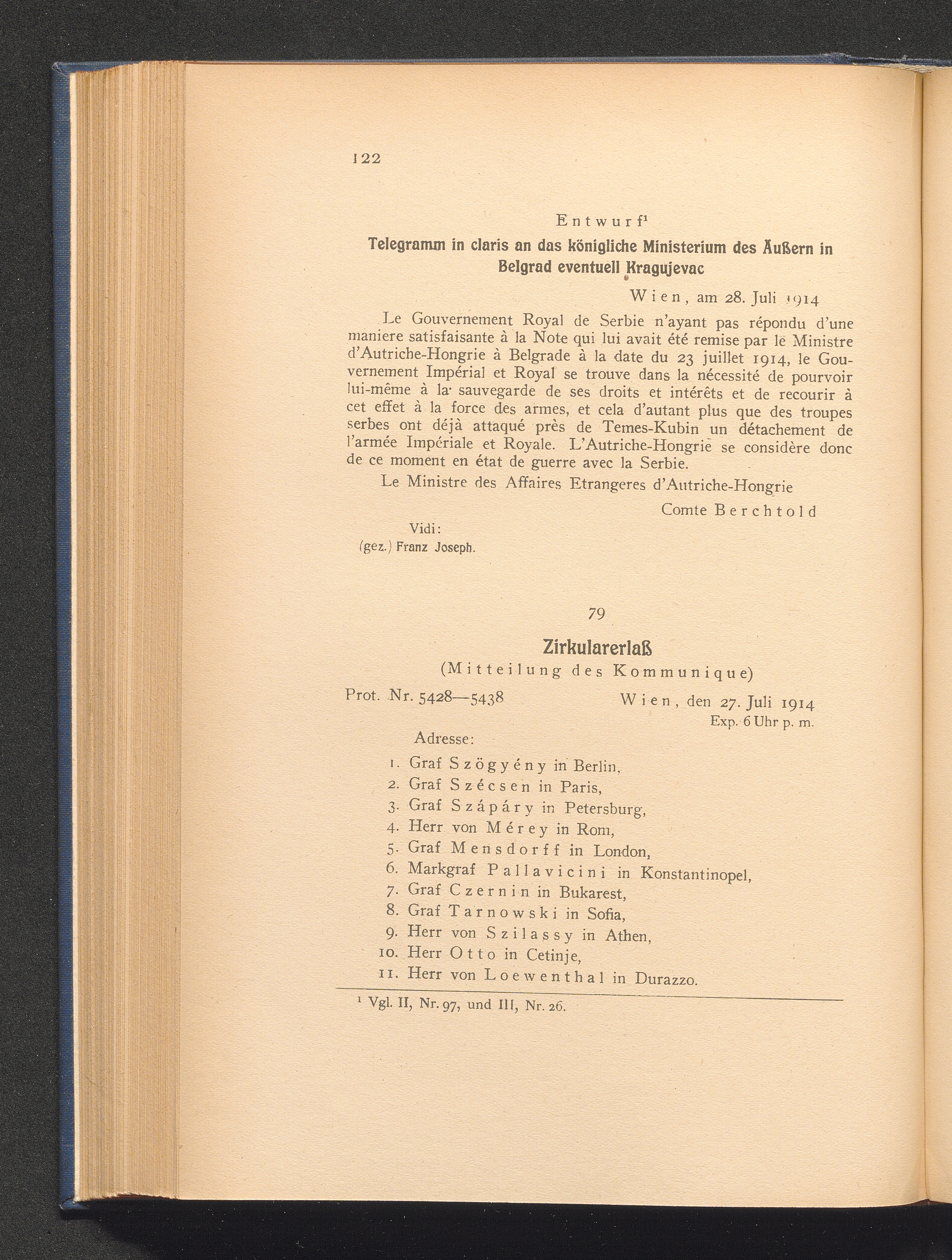 79. Wien, den 27. Juli 1914. Zirkularerlaß. (Mitteilung des Kommunique).