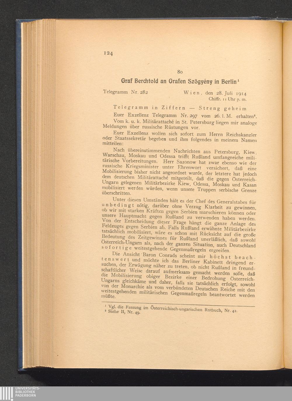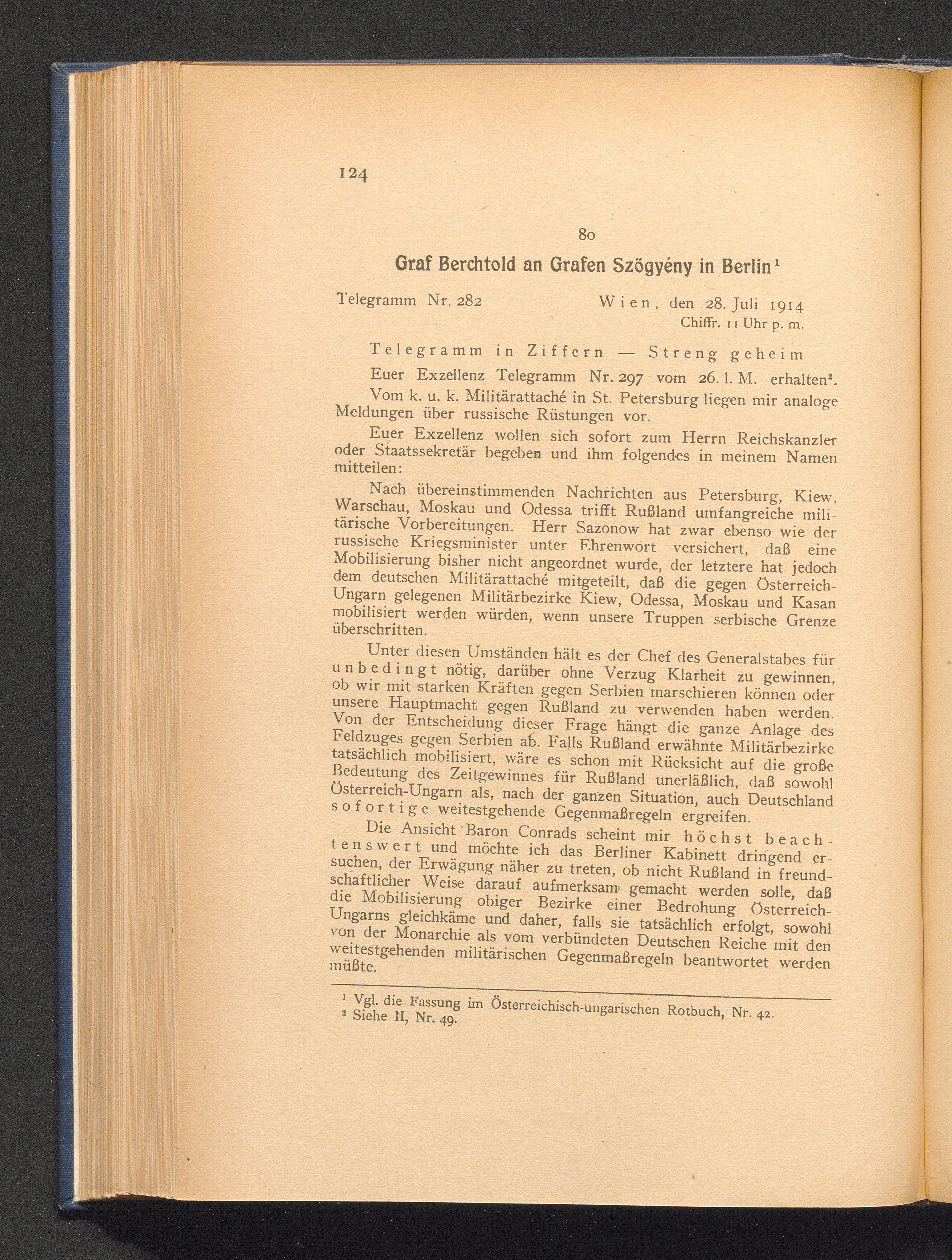 80. Wien, den 28. Juli 1914. Graf Berchtold an Grafen Szögyény in Berlin.