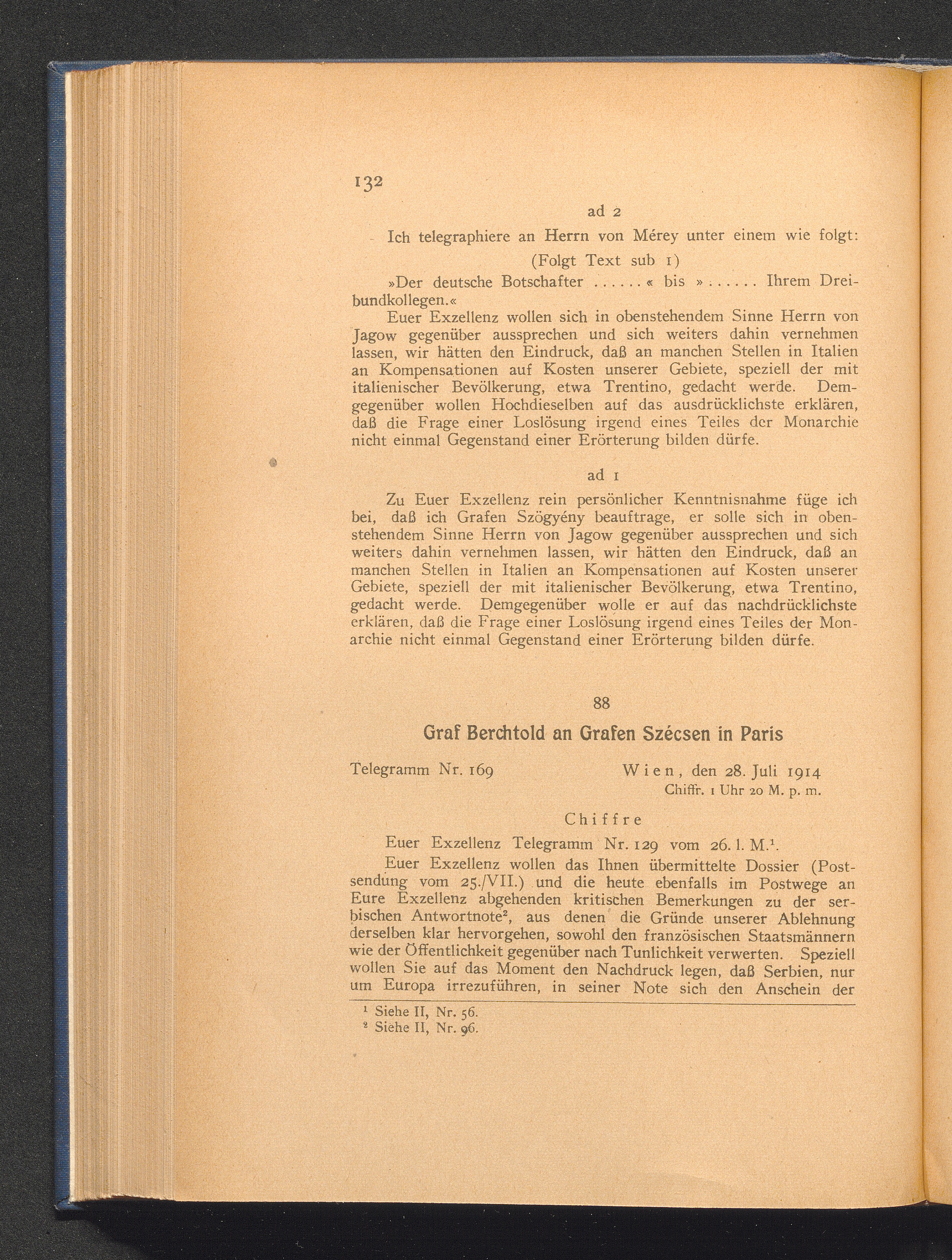 88. Wien, den 28. Juli 1914. Graf Berchtold an Graf Szécsen in Paris.