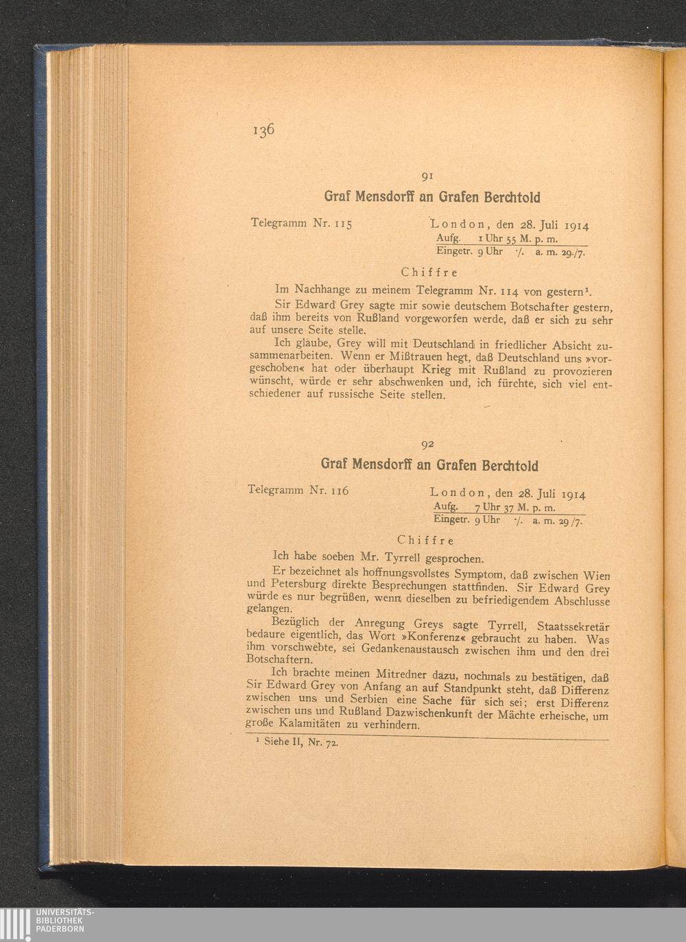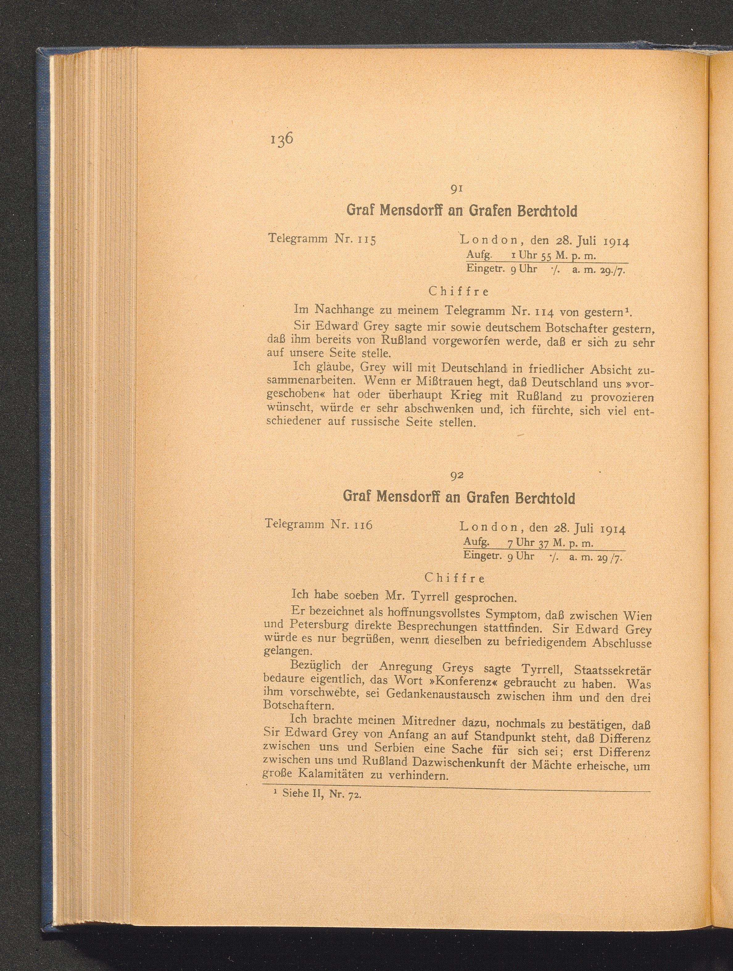 92. London, den 28. Juli 1914. Graf Mensdorff an Grafen Berchtold.