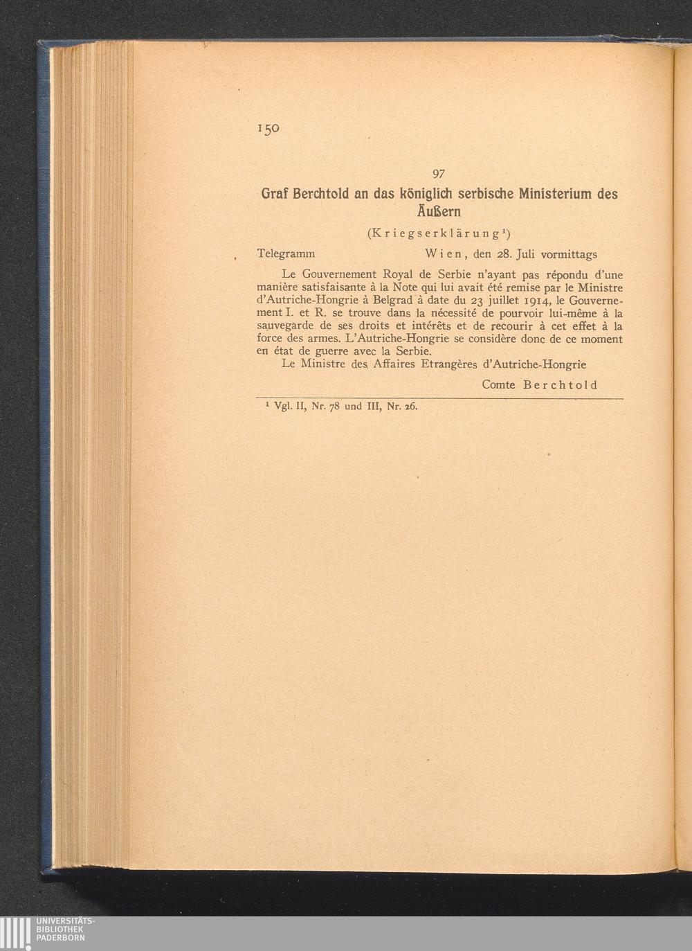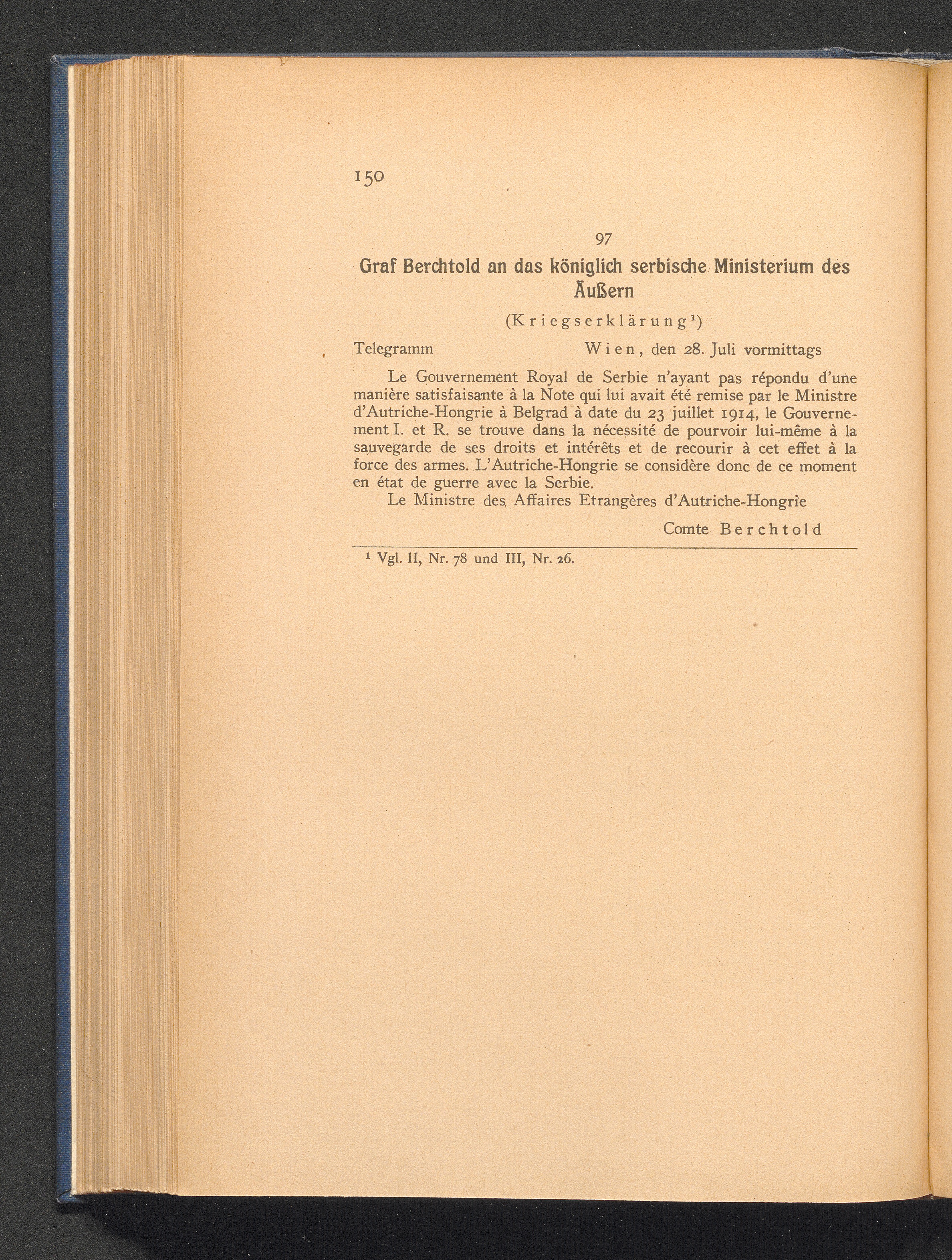 97. Wien, den 28. Juli 1914. Graf Berchtold an das königlich serbische Ministerium[...]