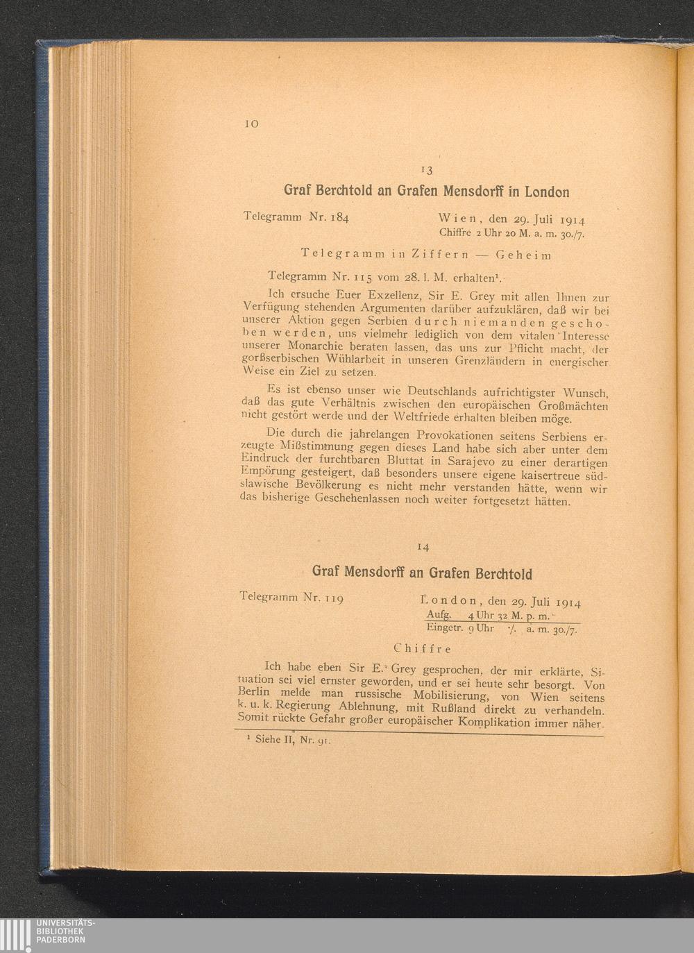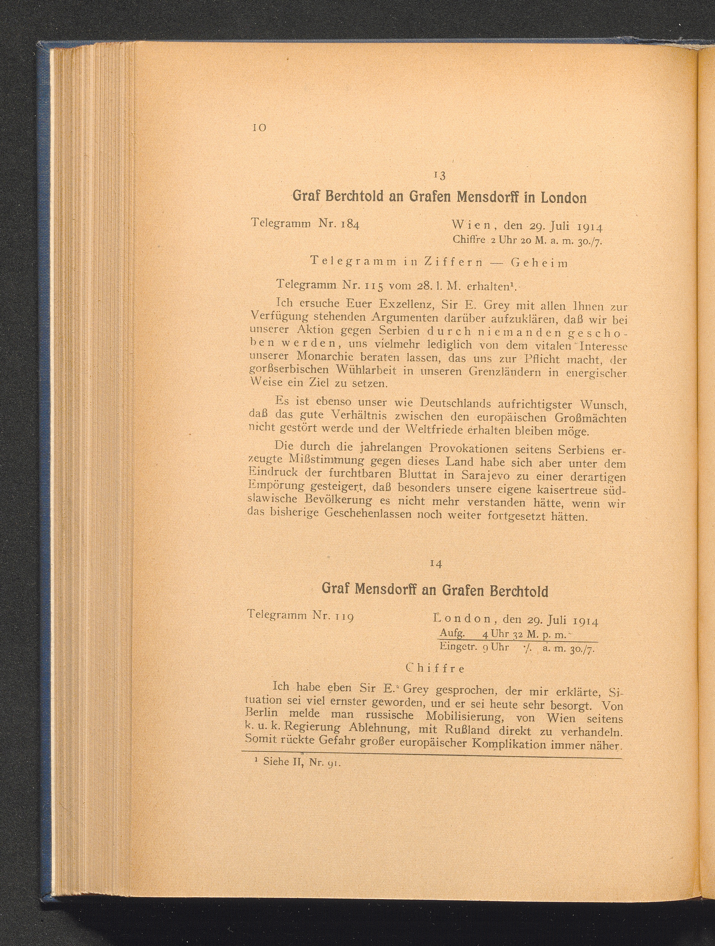 14. London, den 29. Juli 1914. Graf Mensdorff an Grafen Berchtold.