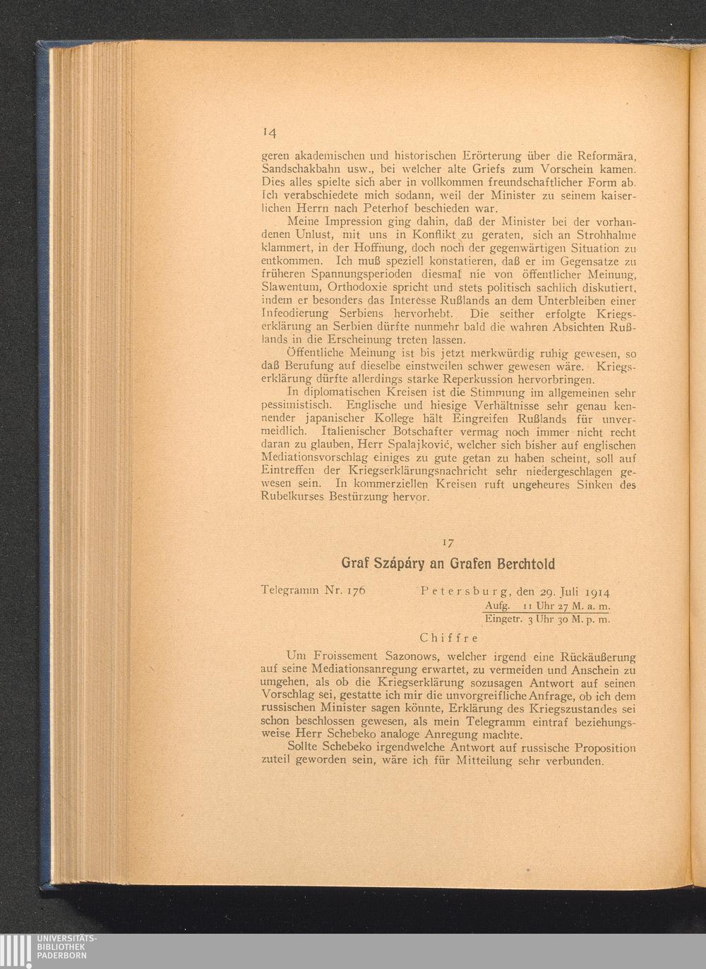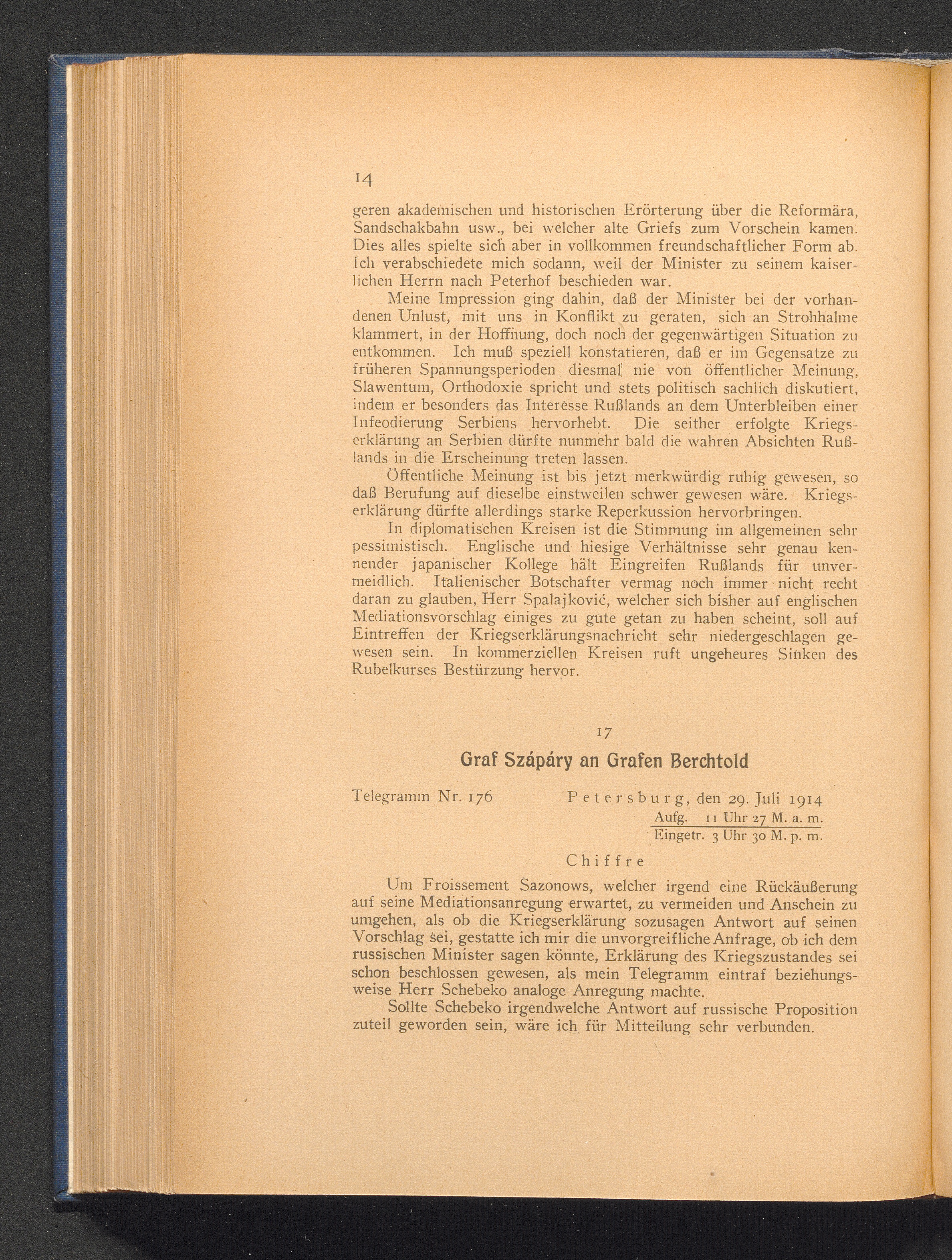 17. Berlin, den 29. Juli 1914. Graf Szögyény an Grafen Berchtold.