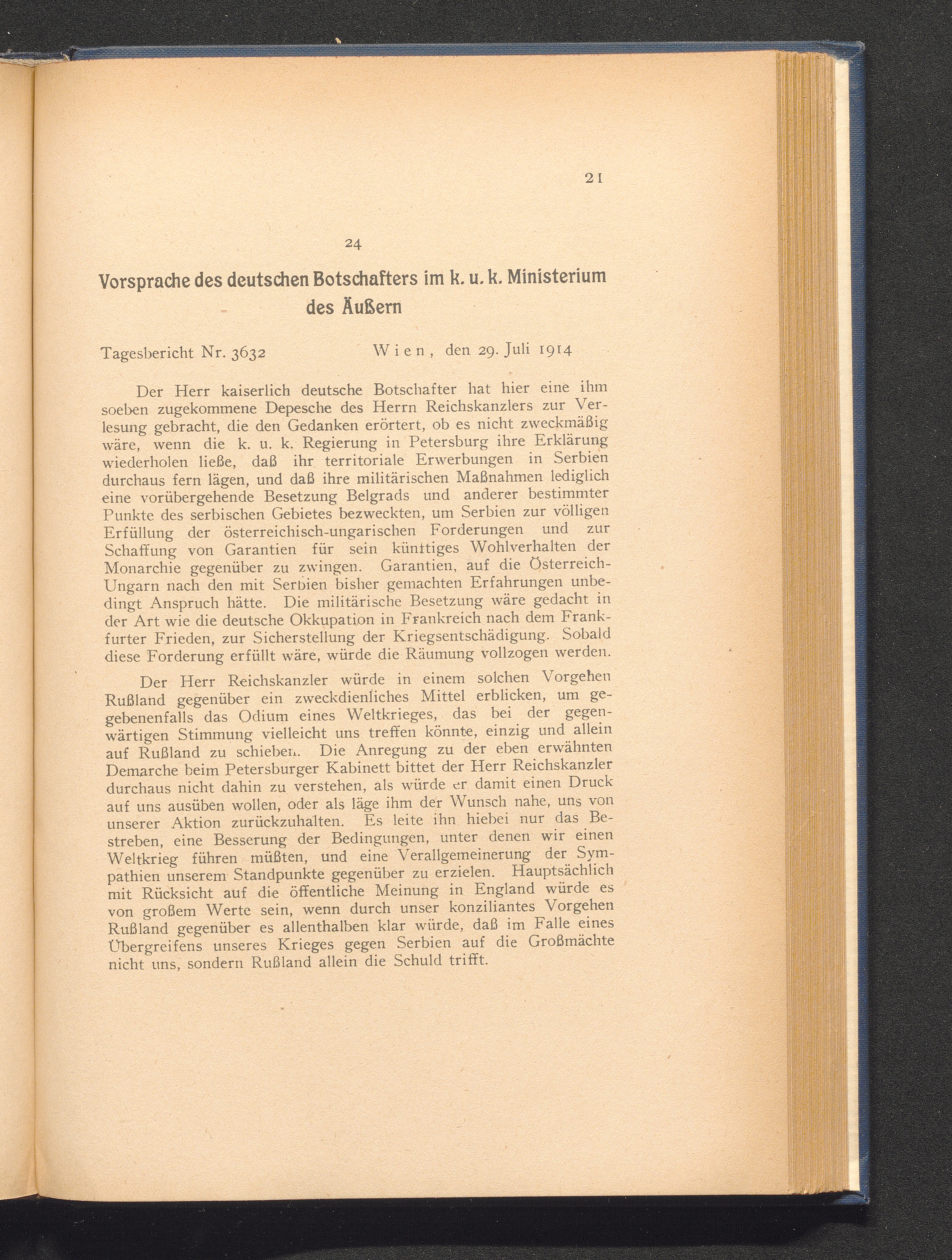 24. Wien, den 29. Juli 1914. Vorsprache des deutschen Botschafters in k. u. k. Ministerium[...]