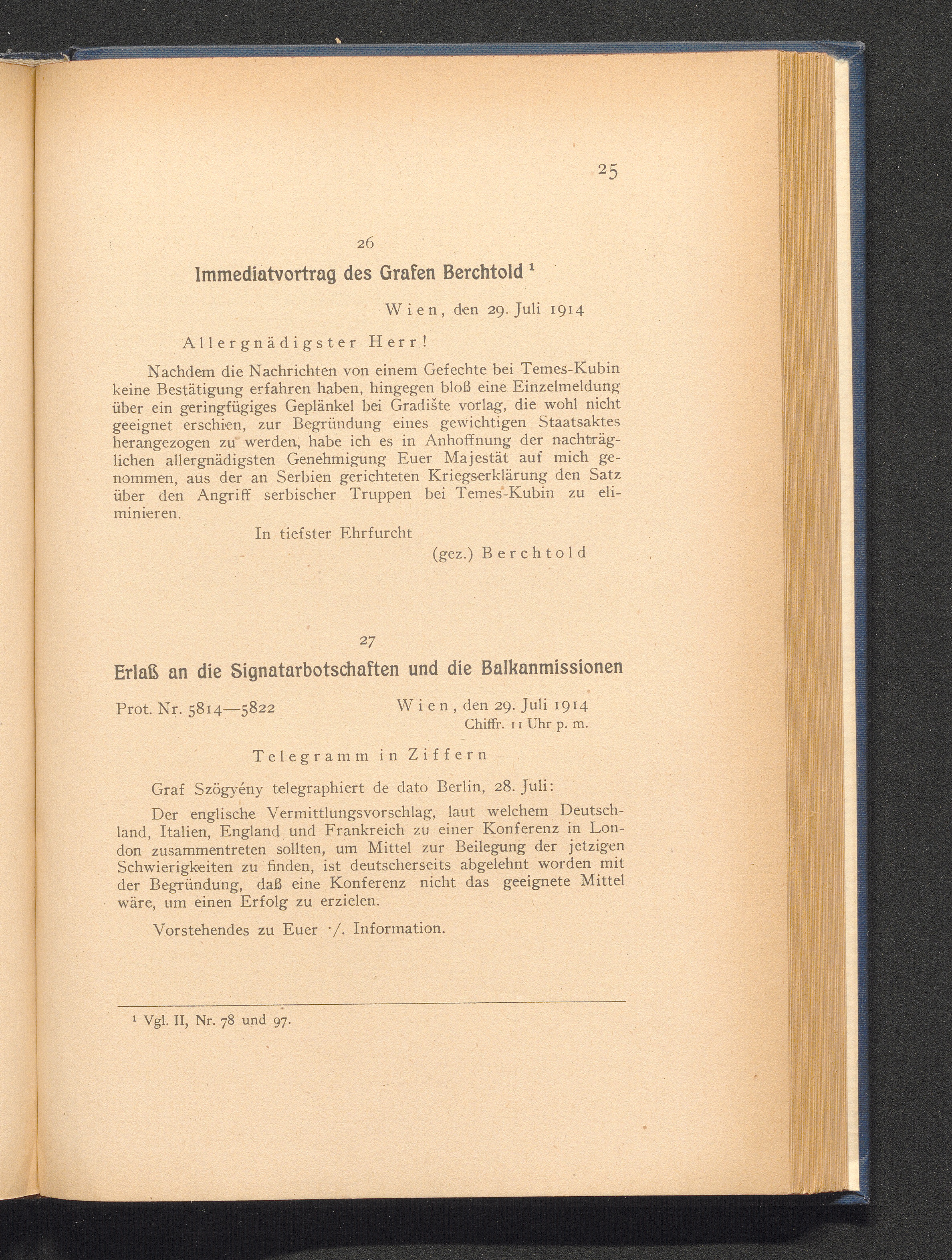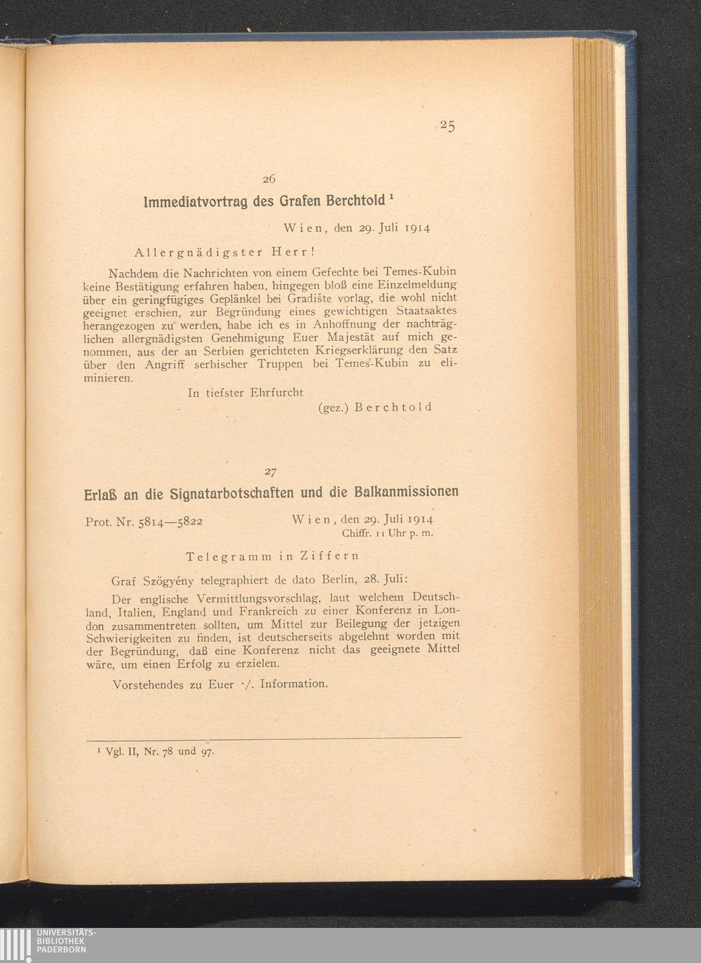 27. Wien, den 29. Juli 1914. Erlaß an die Signaturbotschaften und die Balkankomm[...]