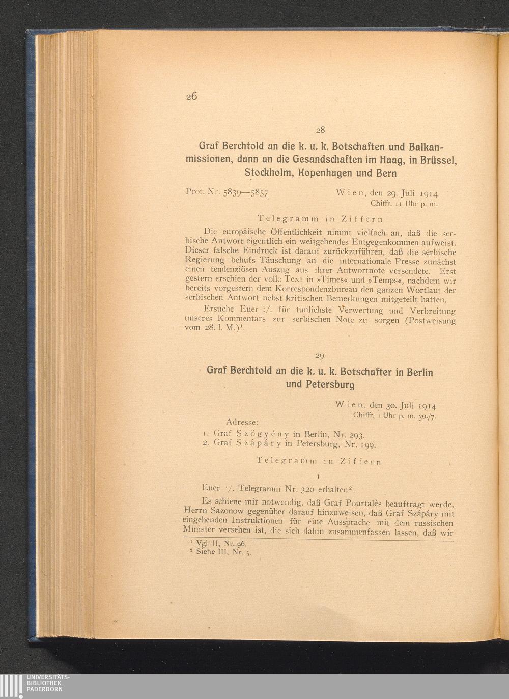 29. Wien, den 29. Juli 1914. Graf Berchtold an die k. u. k. Botschafter in Berlin[...]
