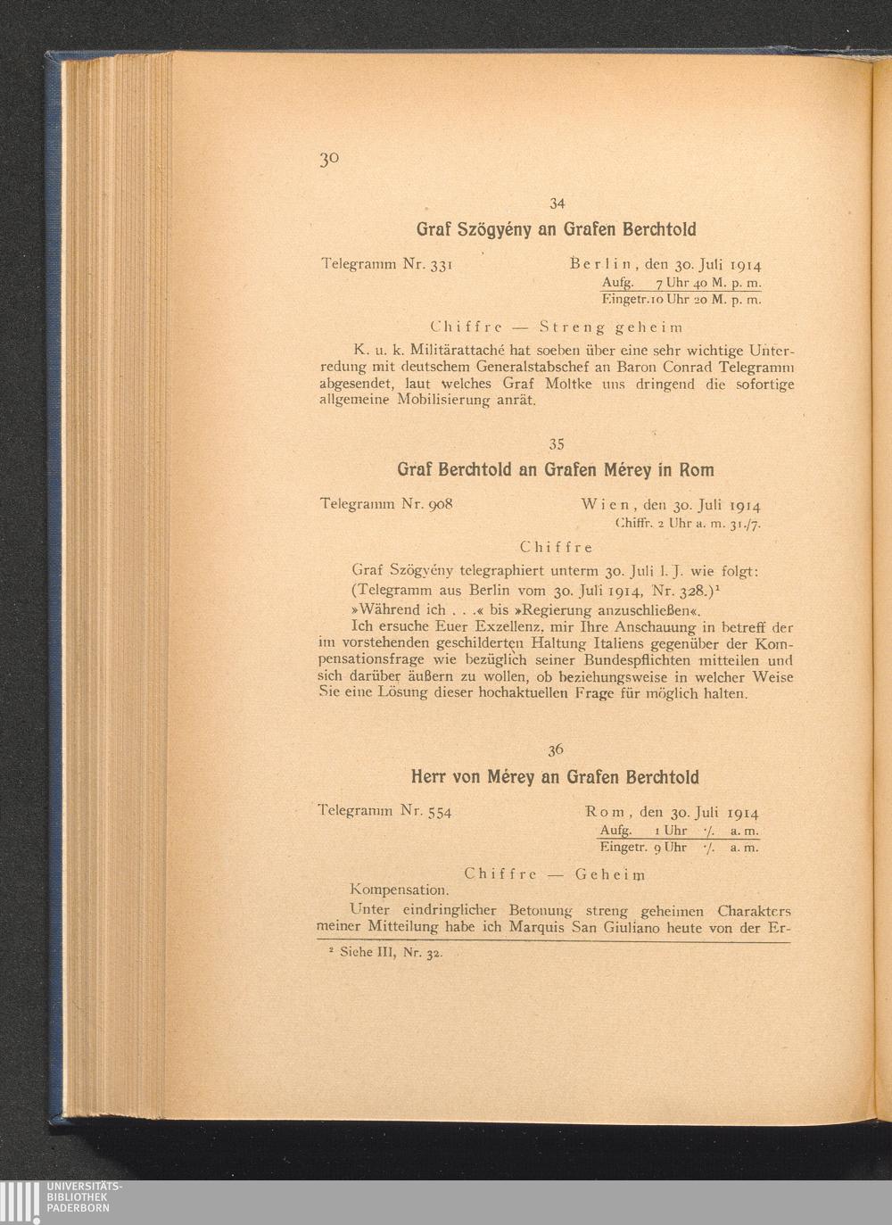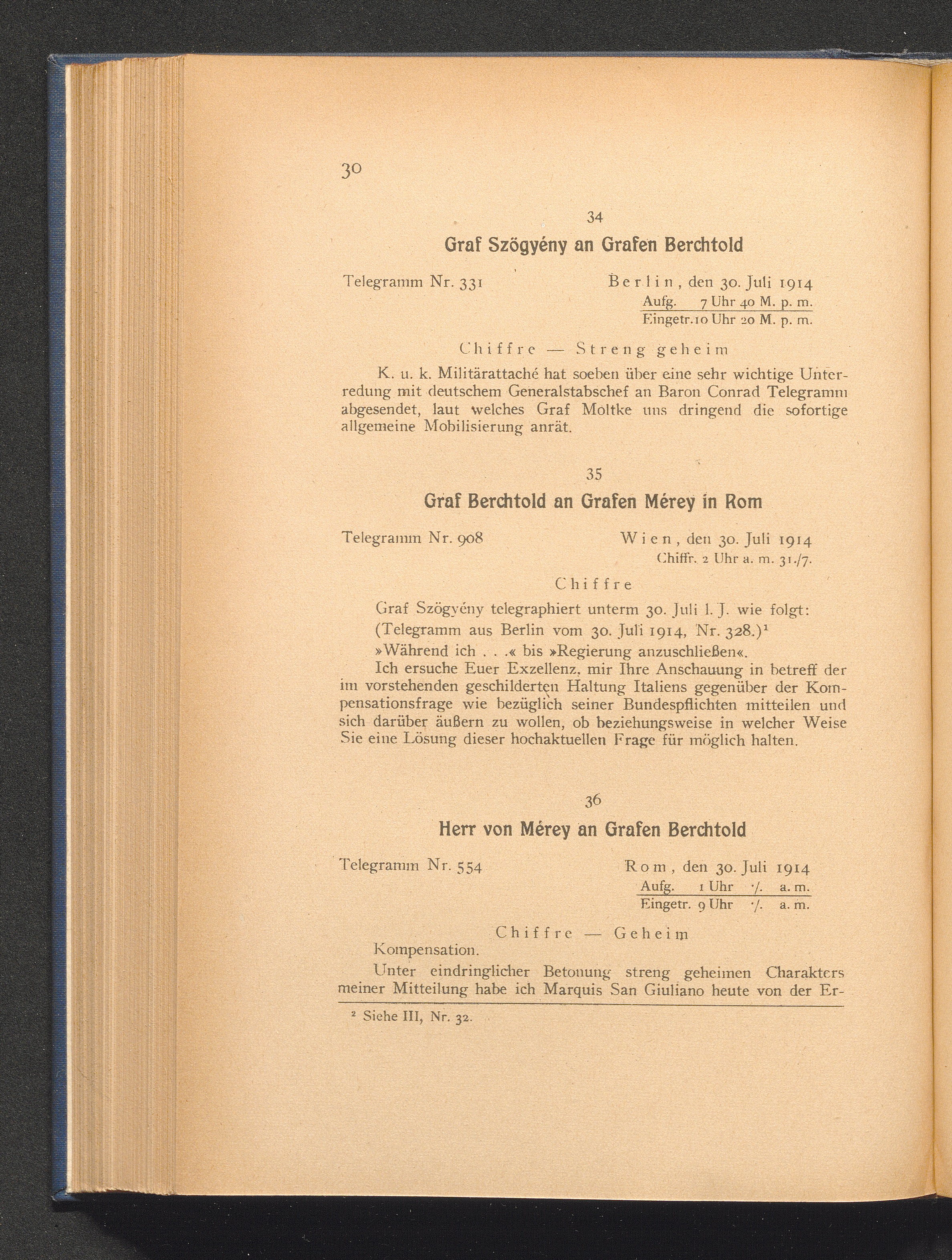 36. Rom, den 30. Juli 1914. Herr von Mérey an Grafen Berchtold.