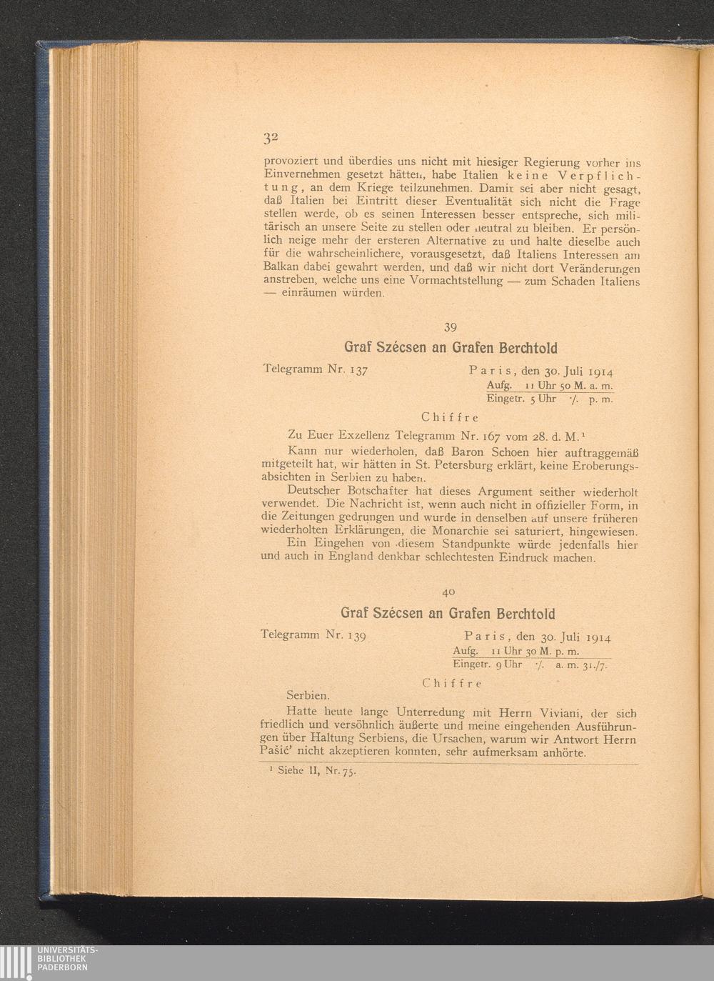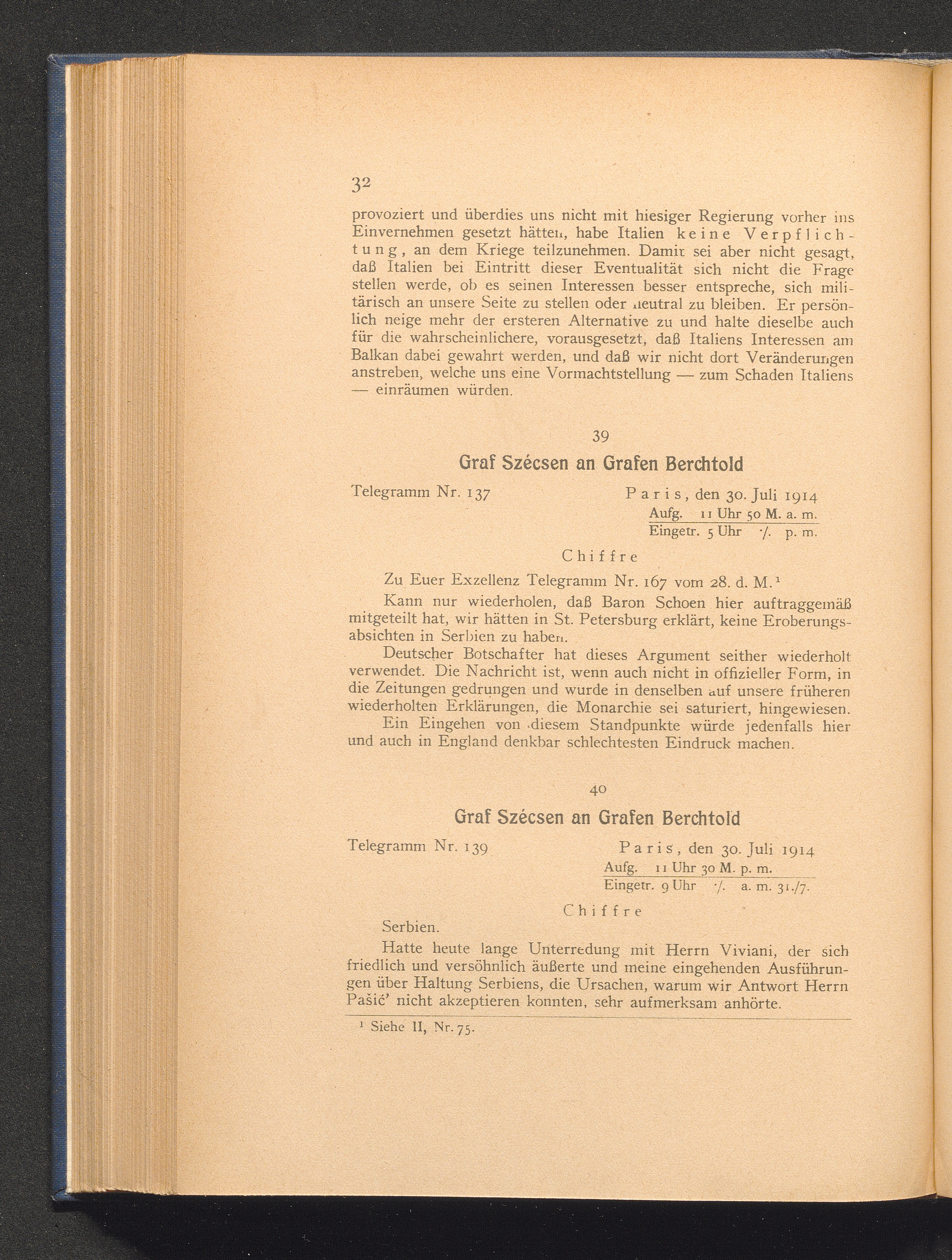 40. Paris, den 30.Juli 1914. Graf Szécsen an Grafen Berchtold.