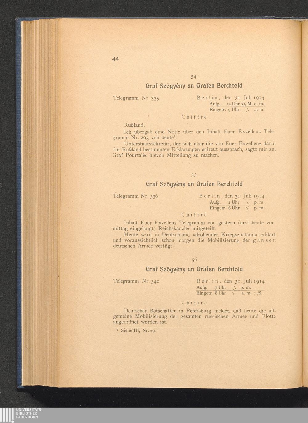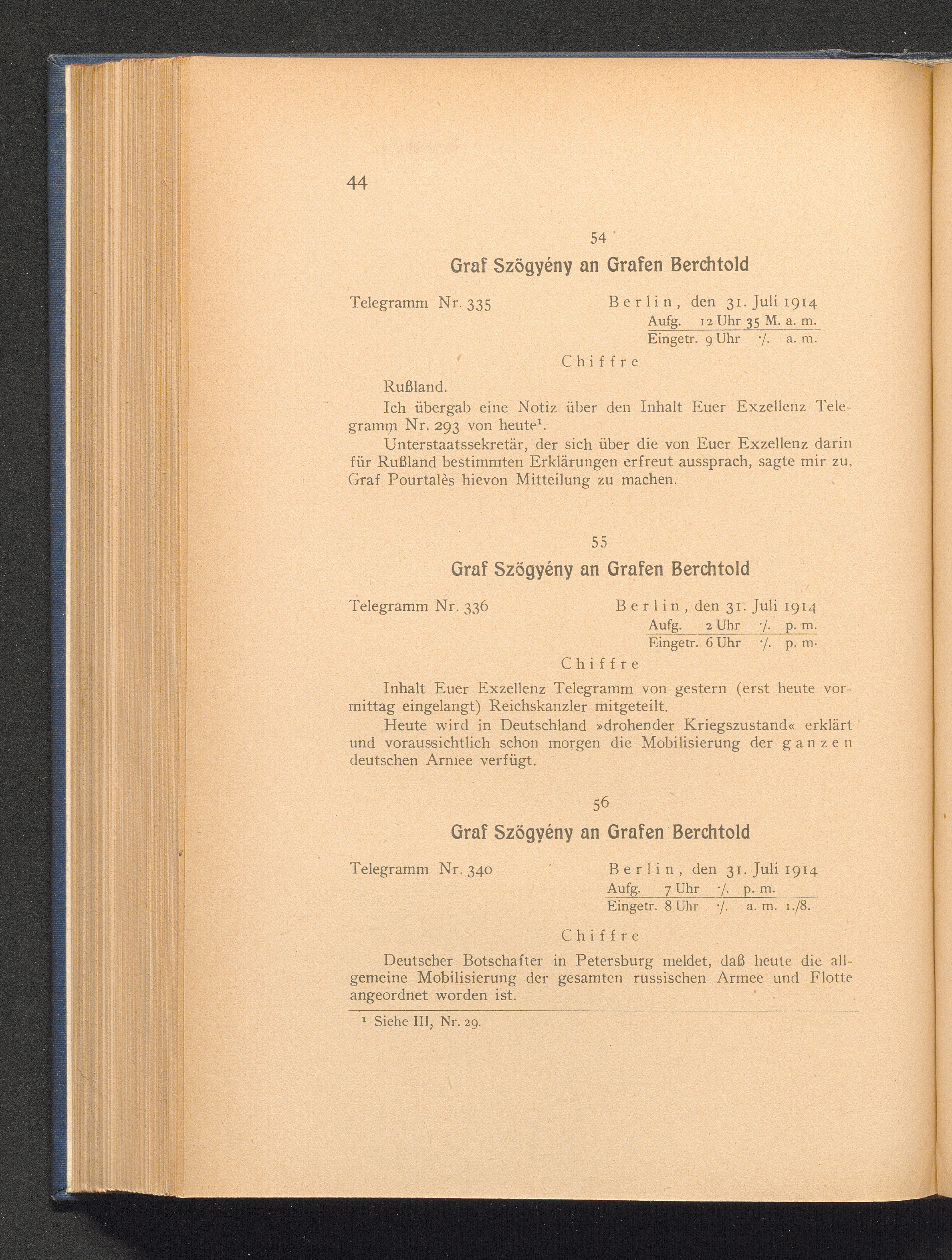 56. Berlin, den 31. Juli 1914. Graf Szögyény an Grafen Berchtold.