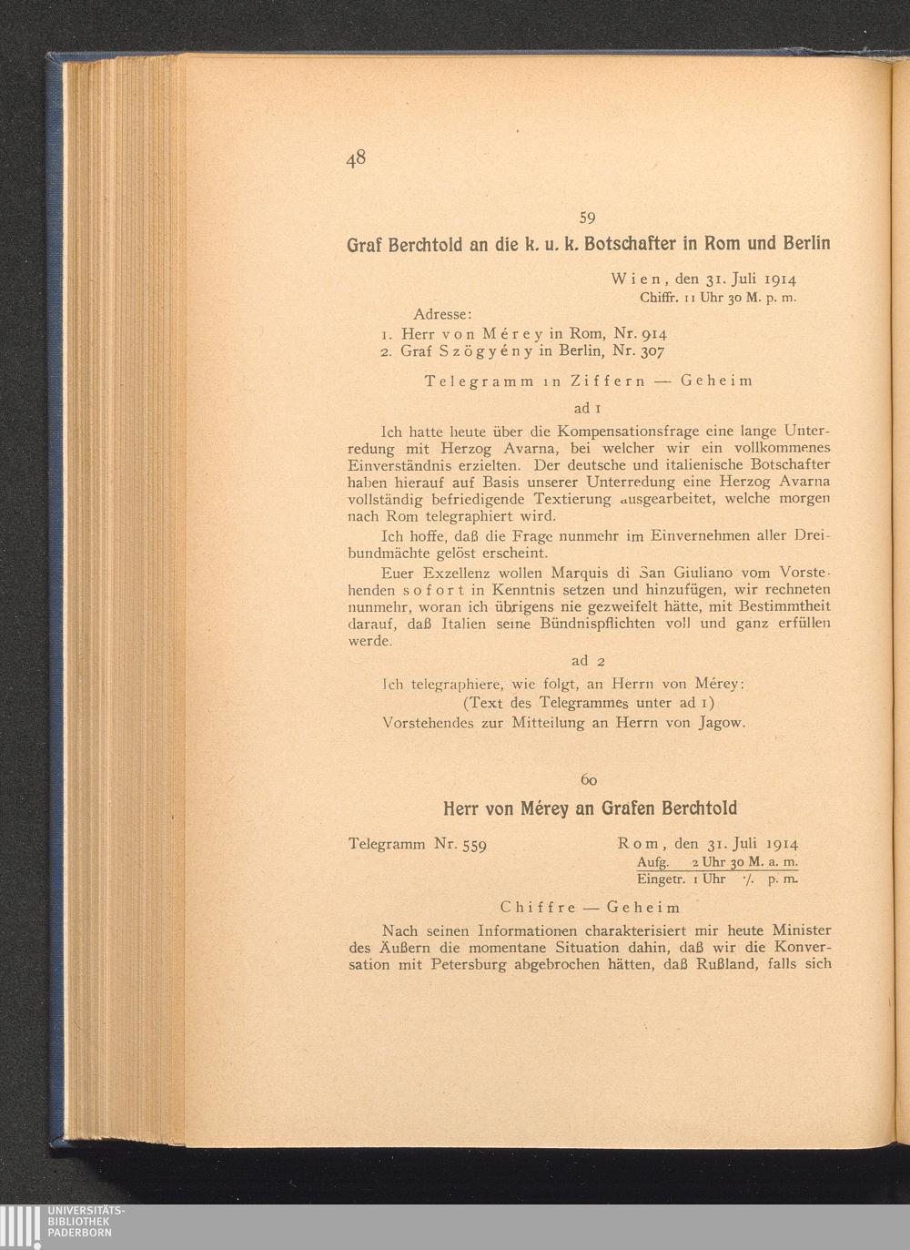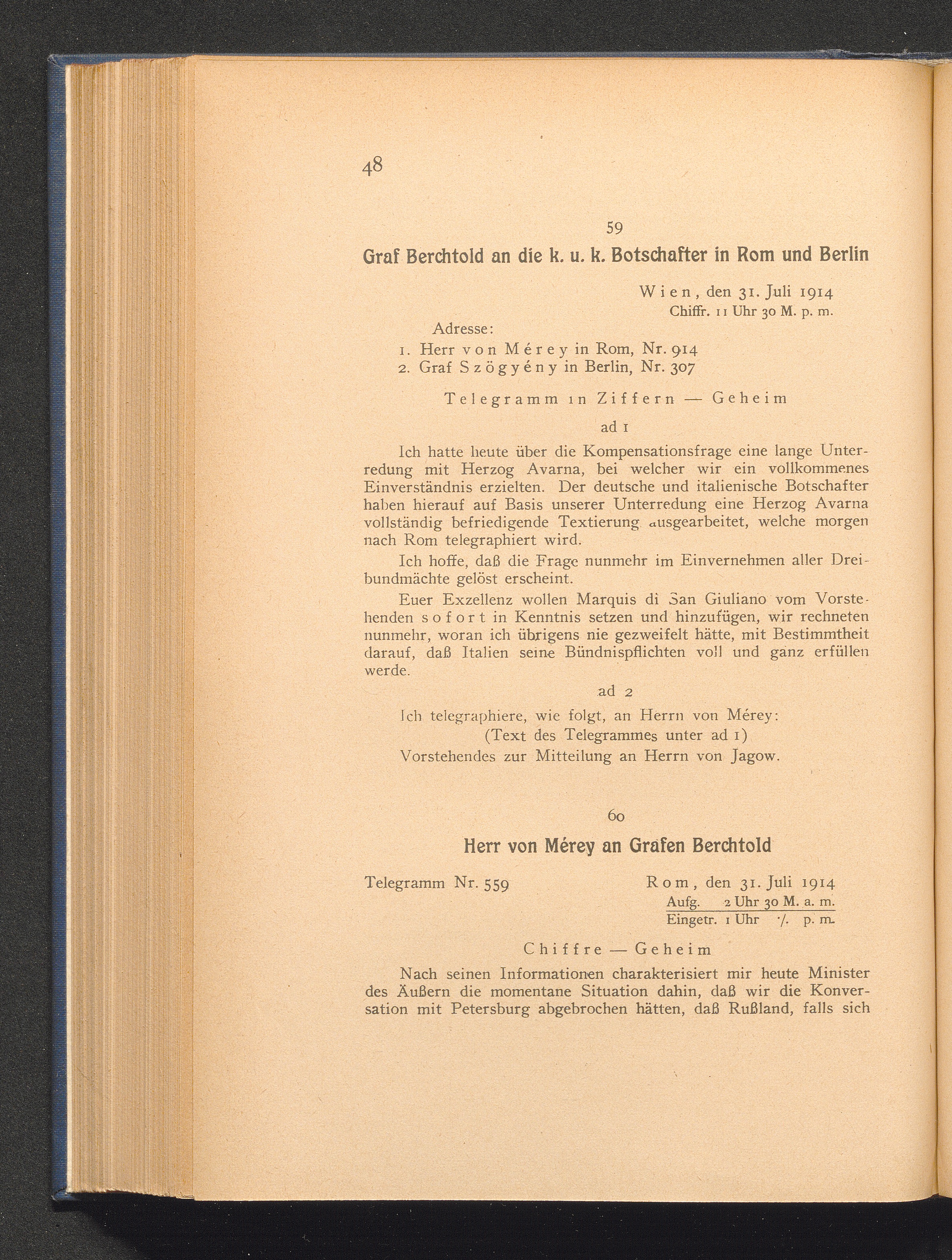 60. Rom, den 31. Juli 1914. Herr von Mérey an Grafen Berchtold.