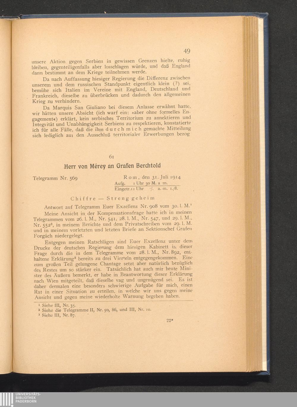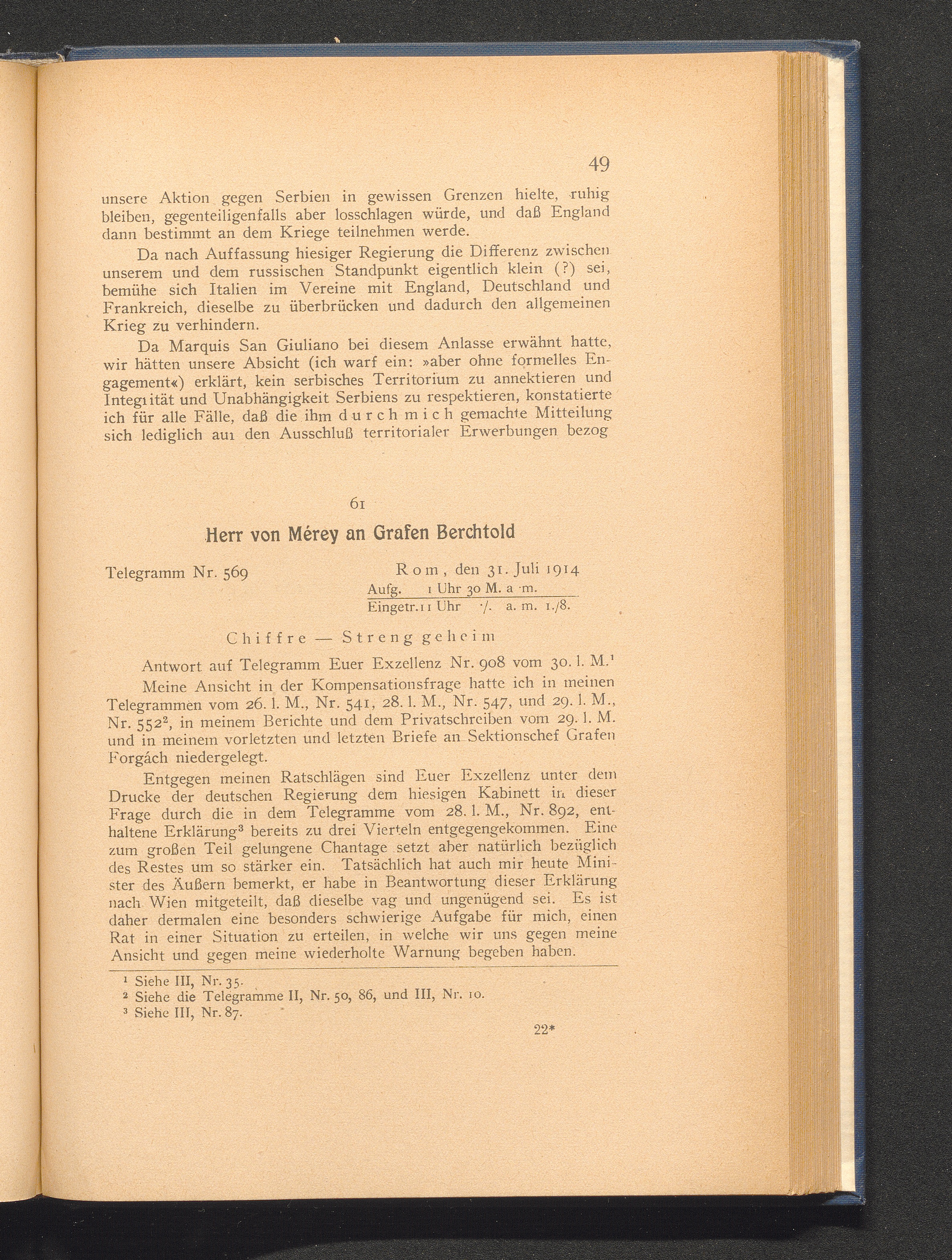 61. Rom, den 31. Juli 1914. Herr von Mérey an Grafen Berchtold.