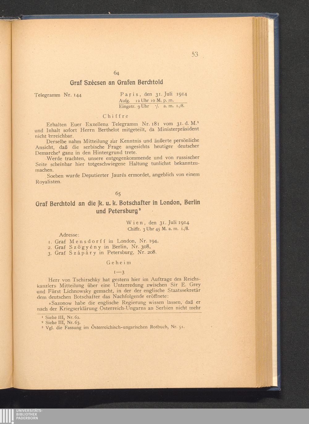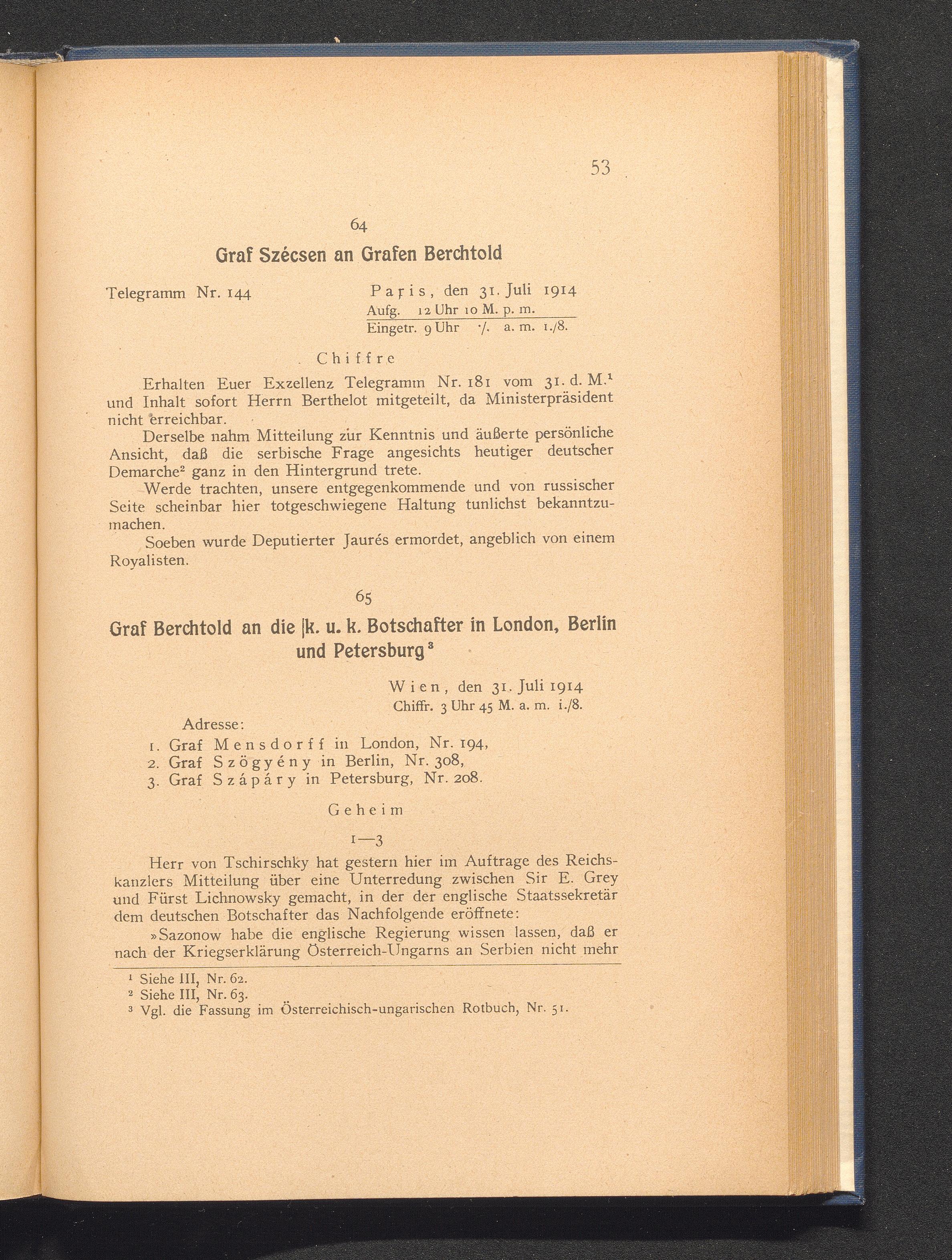 65. Wien, den 31. Juli 1914. Graf Berchtold an die k. u. k. Botschafter in London,[...]
