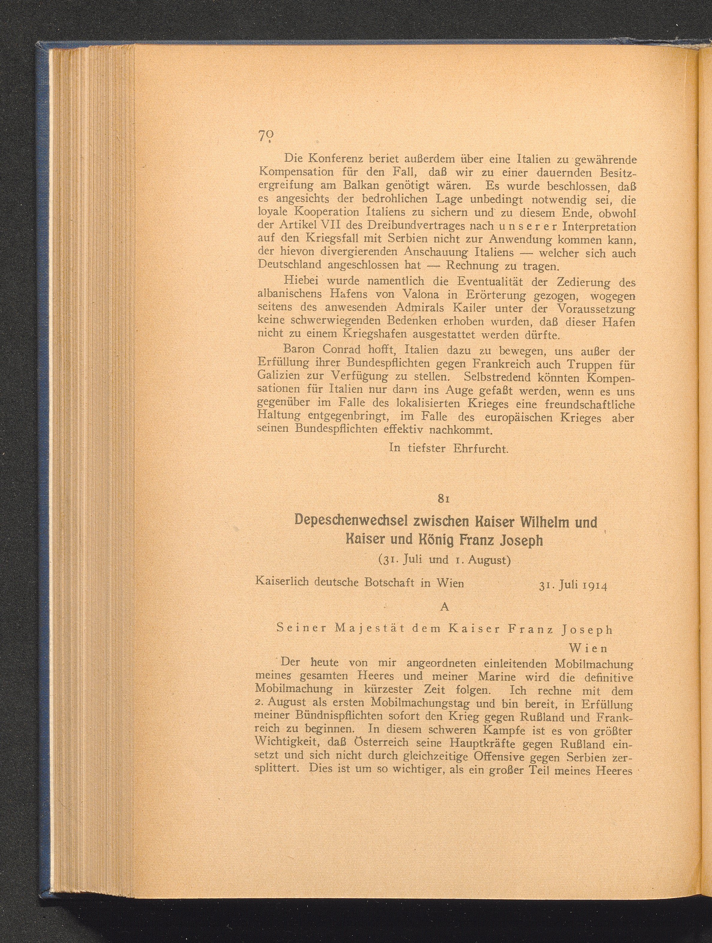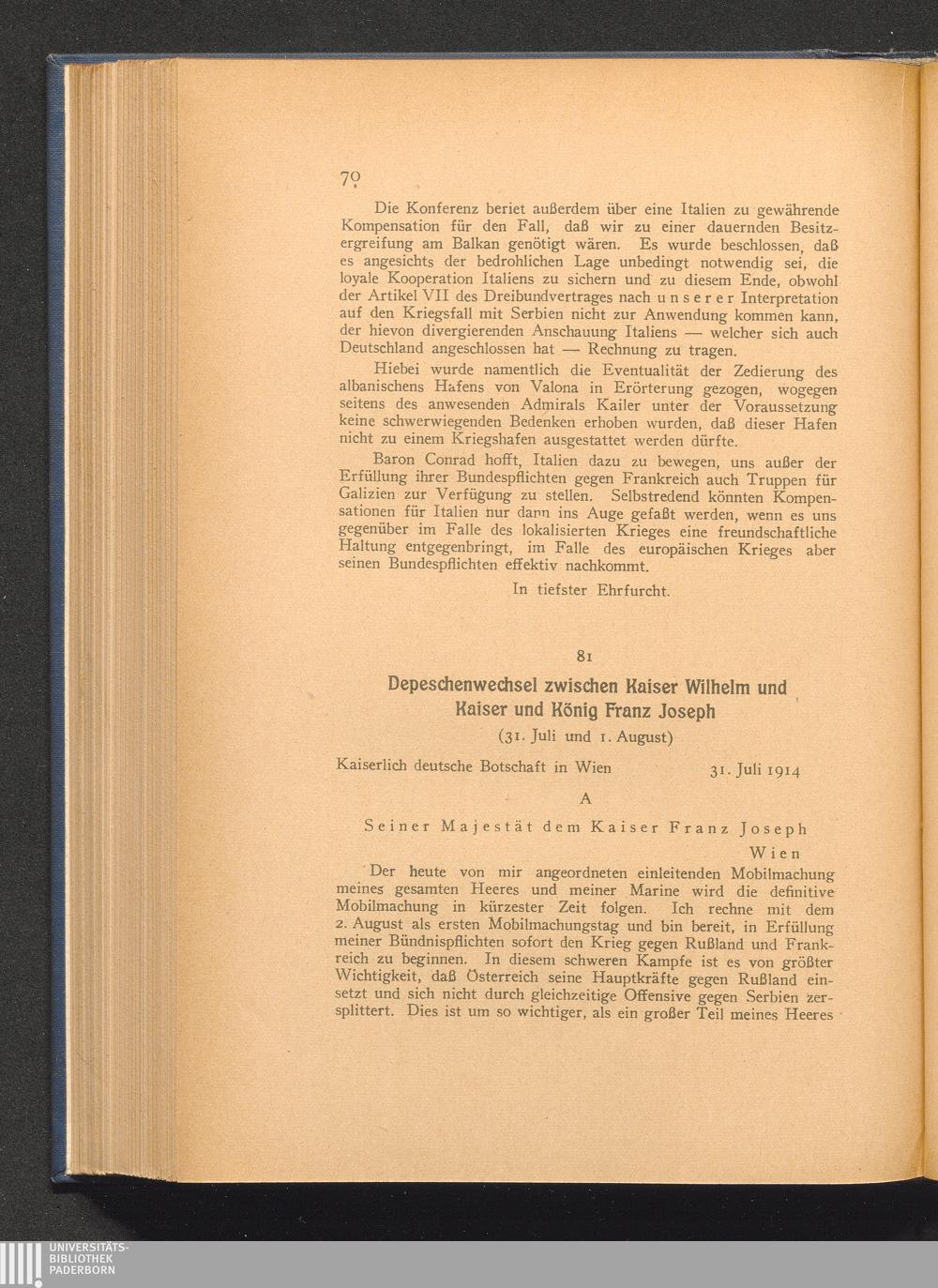 81. 31. Juli und 1. August. Depeschenwechsel zwischen Kaiser Wilhelm und Kaiser und[...]
