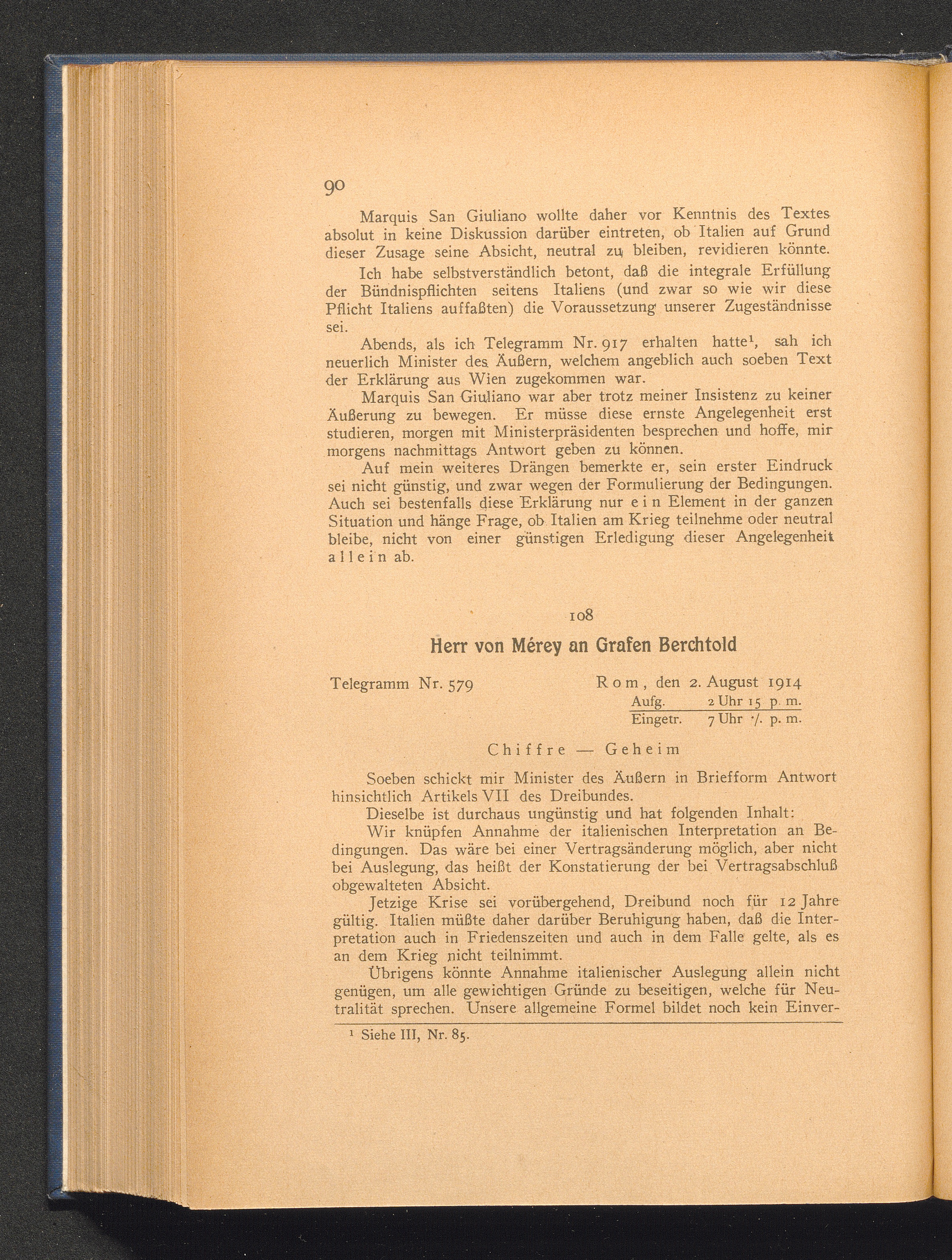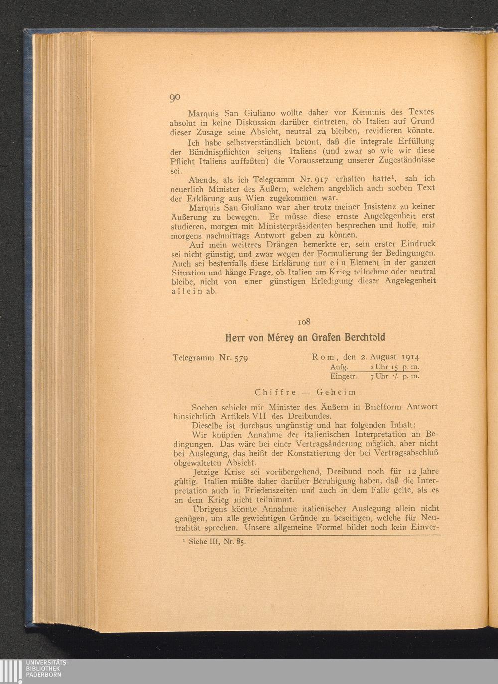 108. Rom, den 2. August 1914. Herr von Mérey an Grafen Berchtold.