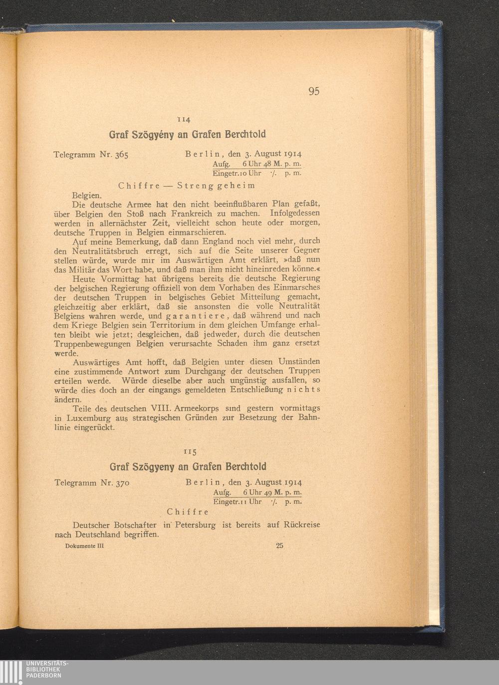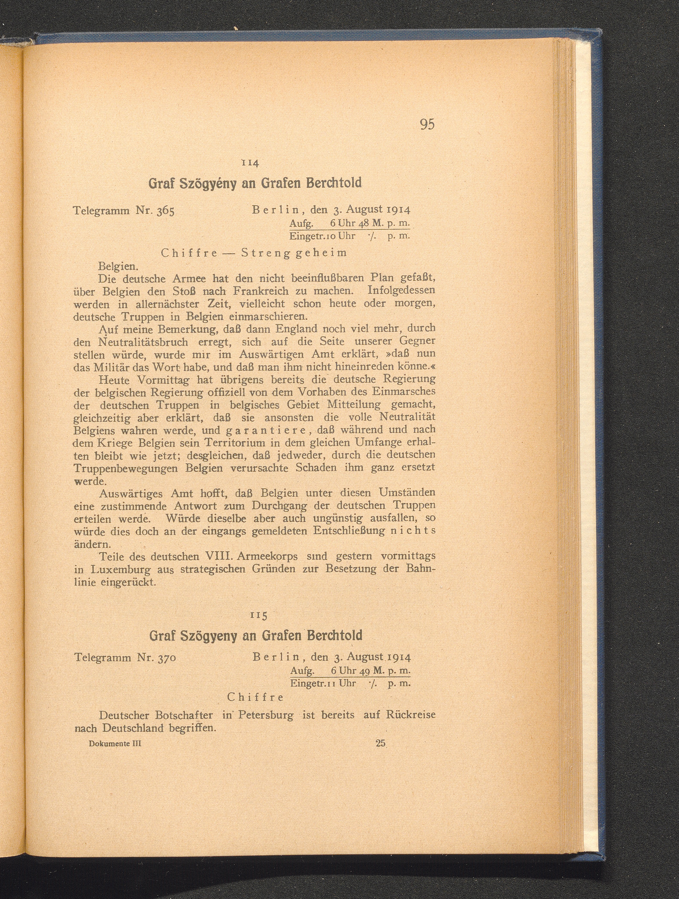115. Berlin, den 3. August 1914. Graf Szögyény an Grafen Berchtold.