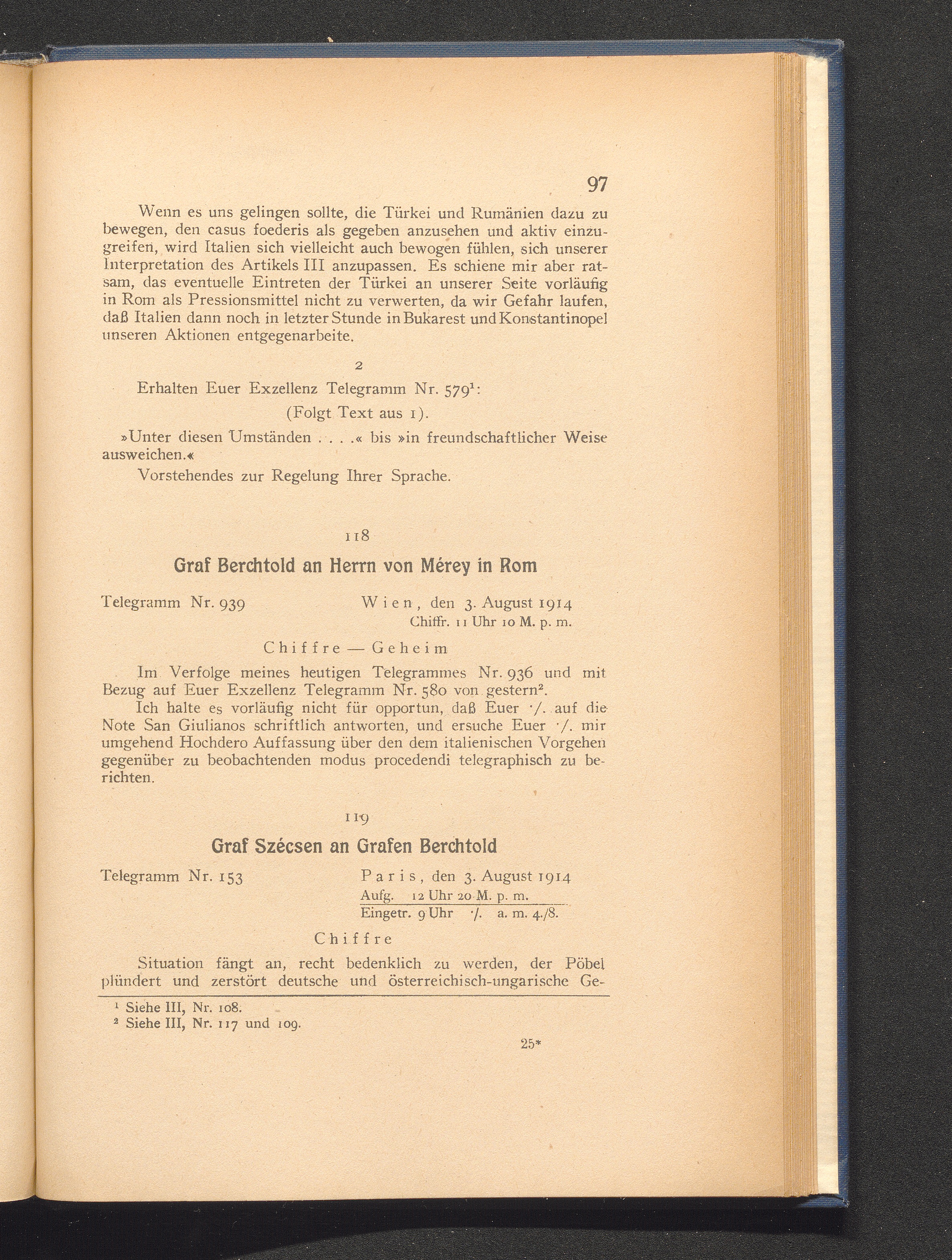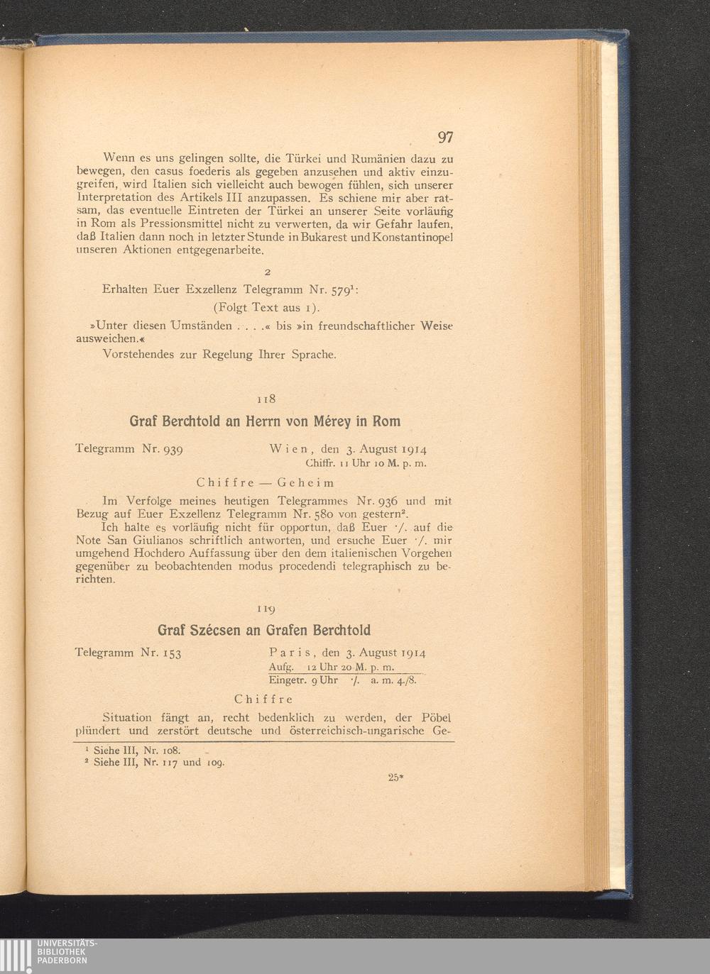 119. Paris, den 3. August 1914. Graf Szécsen an Grafen Berchtold.