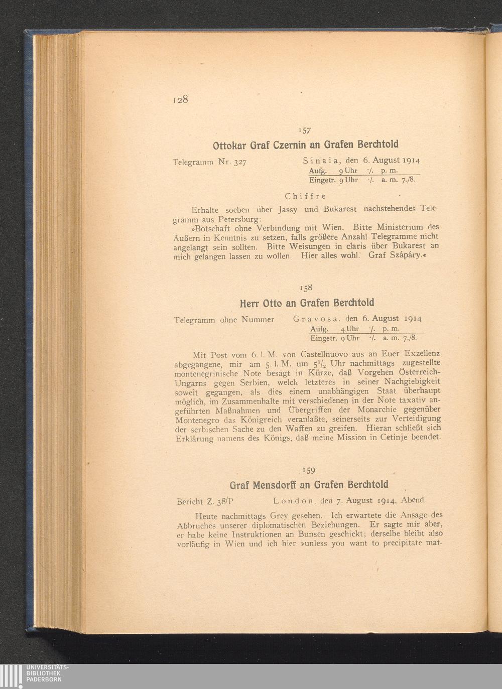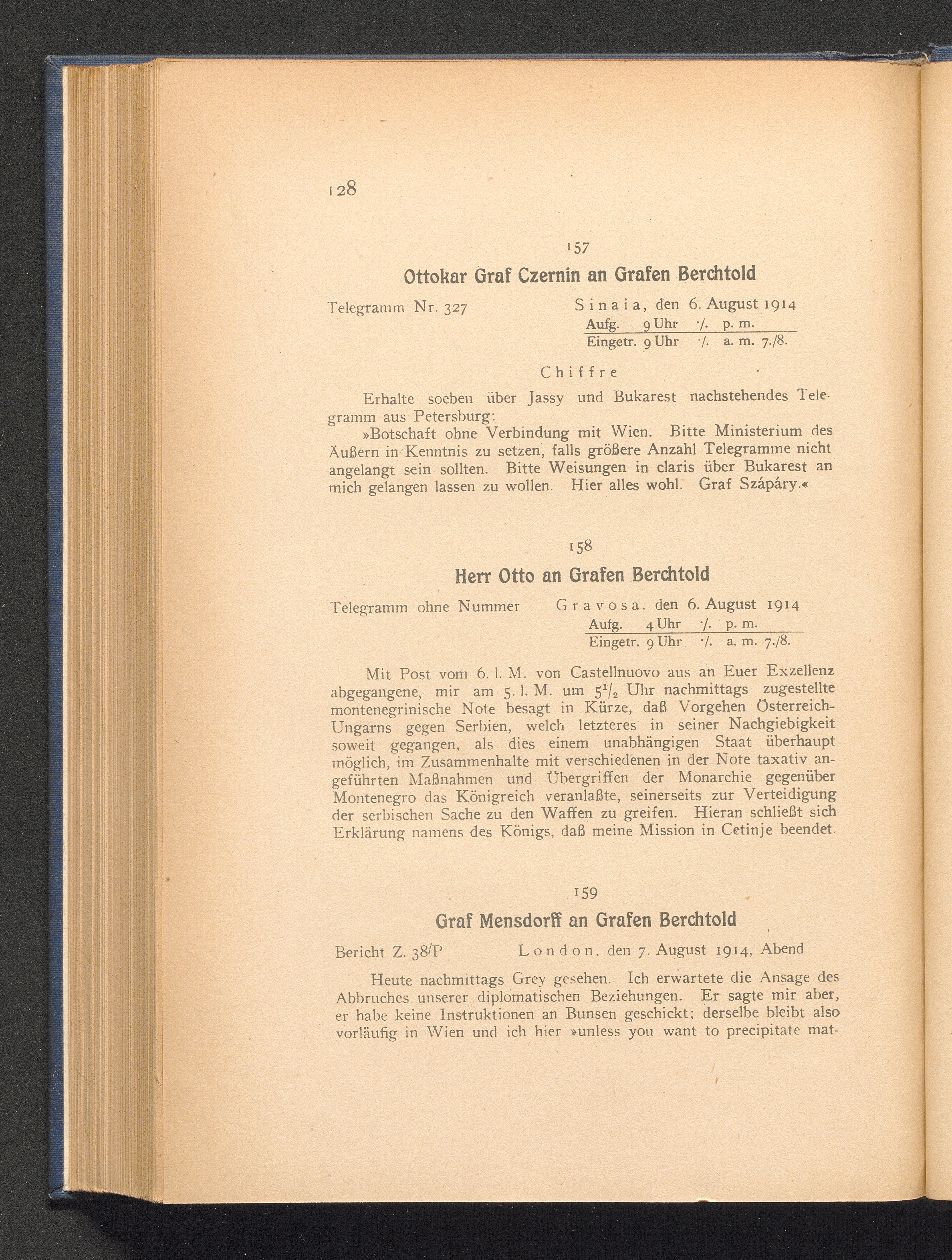 159. London, den 7. August 1914. Graf Mensdorff an Grafen Berchtold.