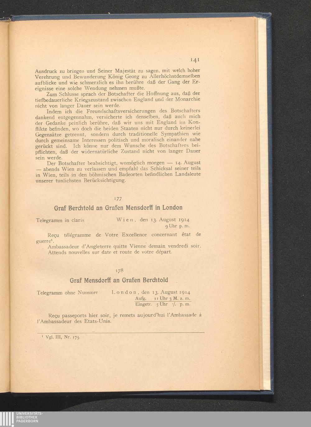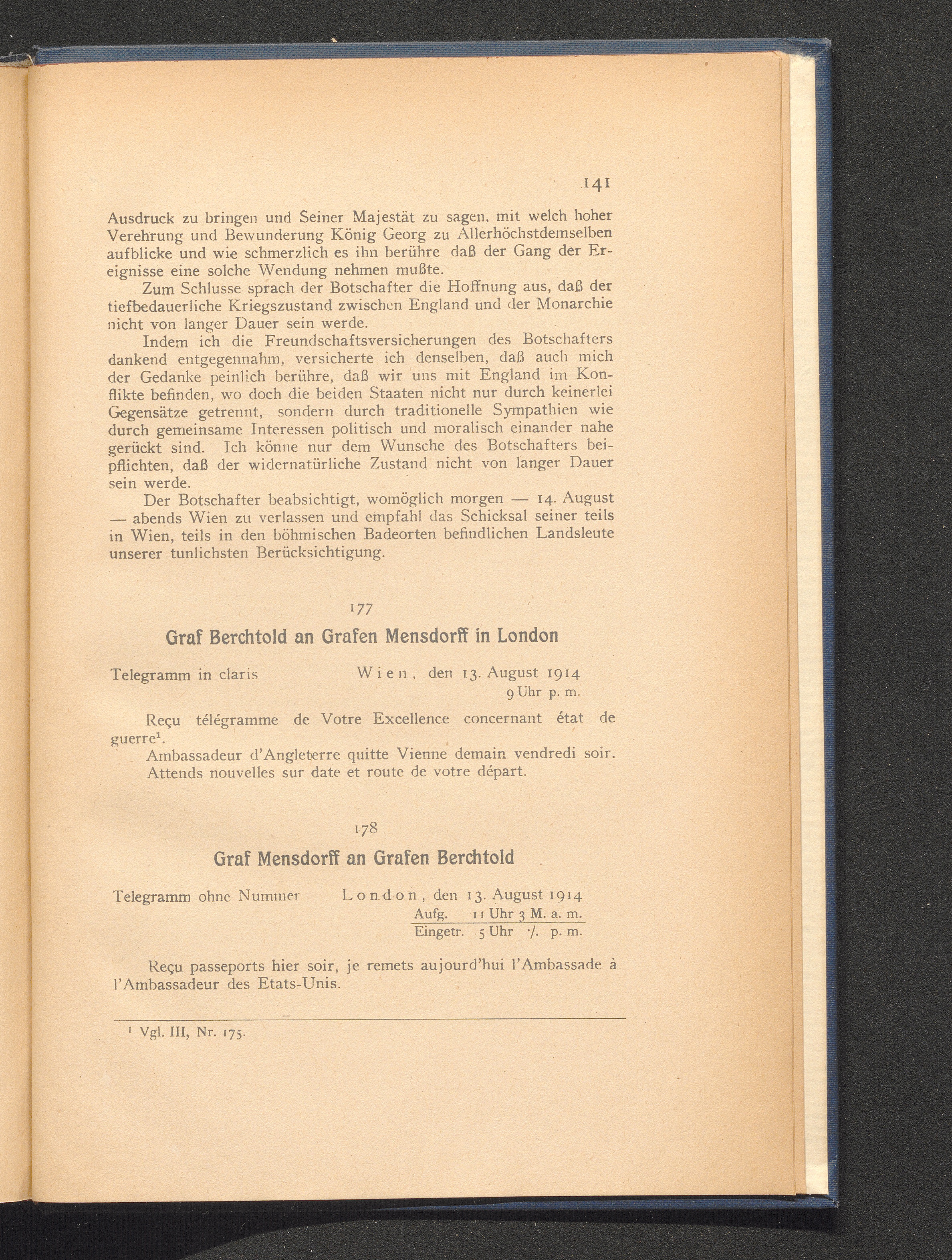 178. London, den 13. August 1914. Graf Mensdorff an Grafen Berchtold.
