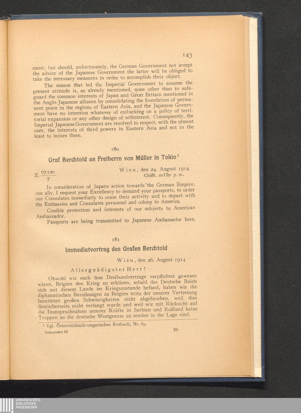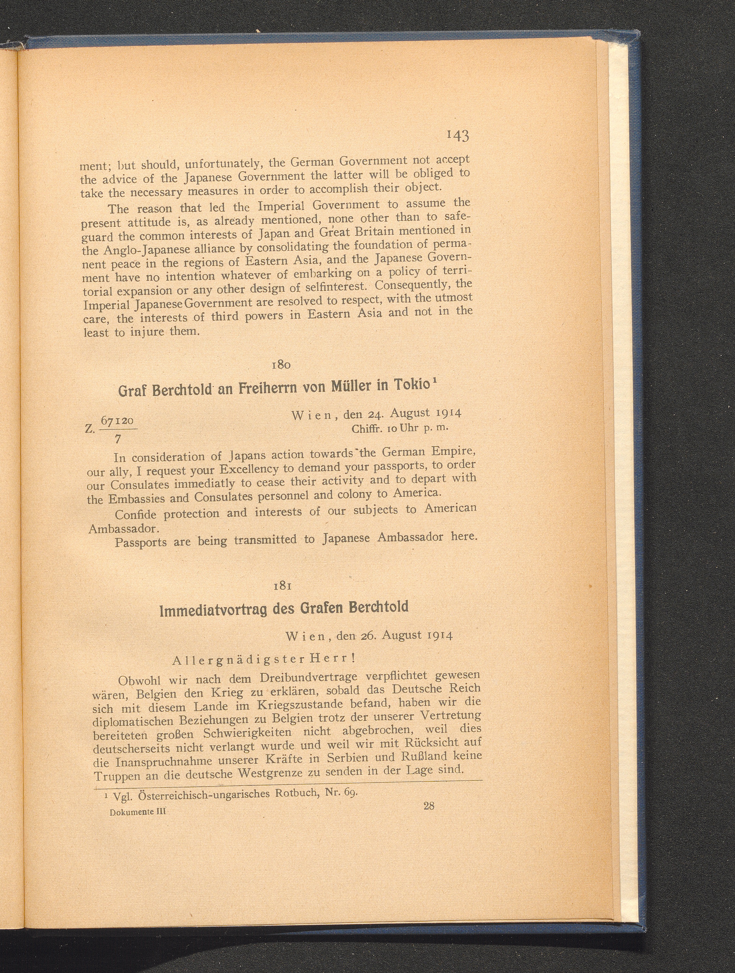 181. Wien, den 26. August 1914. Immediatvortrag des Grafen Berchtold.