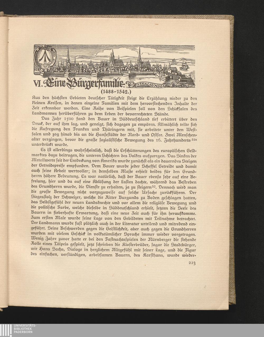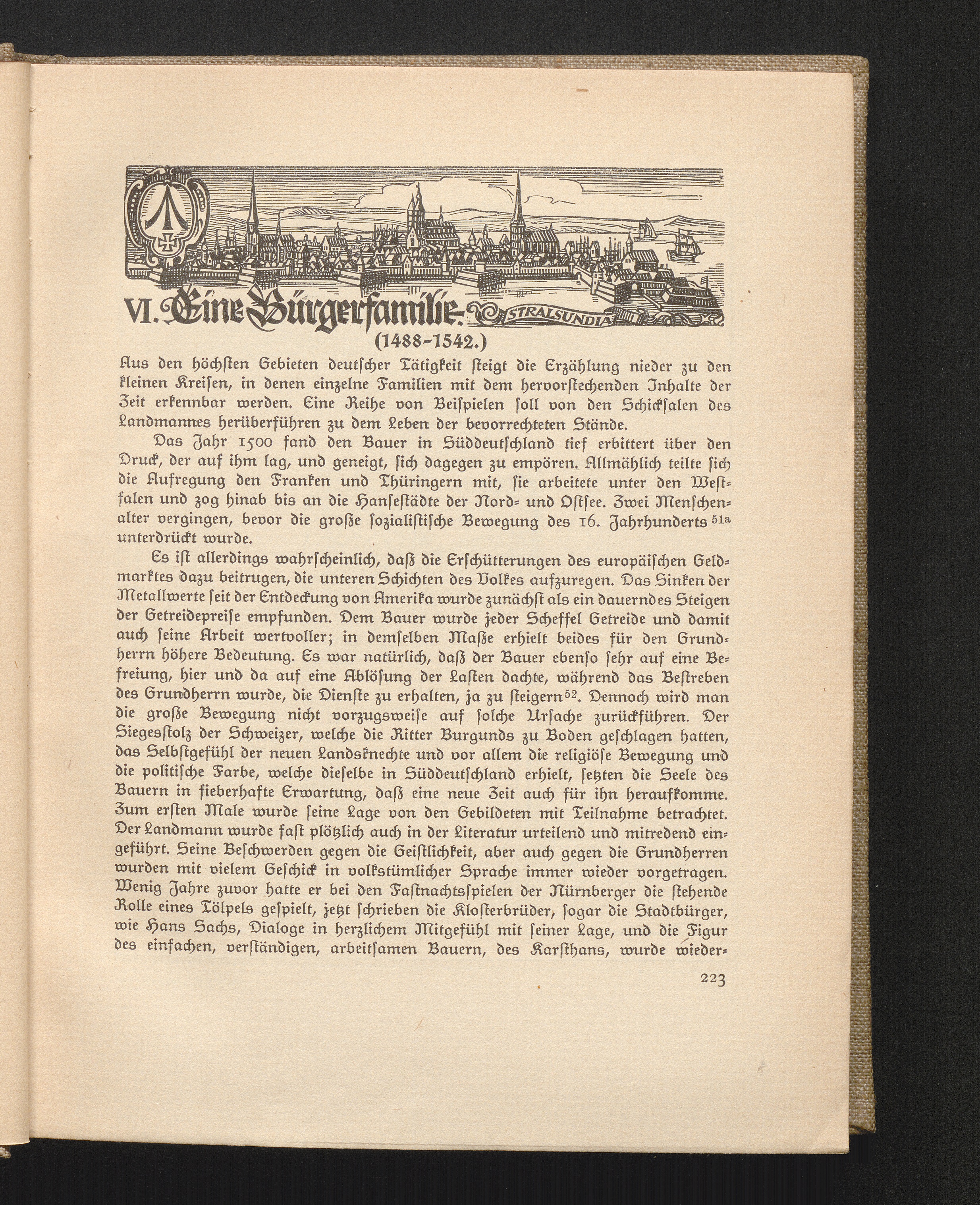 VI. Eine Bürgerfamilie. Einkehr in die kleinen Kreise des deutschen Lebens. Der Bauer in der Reformation, der Bauernkrieg, Johannes Eberlin. Einwirkung des römischen Rechts. Aufsteigende Volkskraft. Sozialer Vorzug der protestantischen Landschaften. Unsicherheit des Lebens. Familiengeschichte des Bartholomäus Sastrow.