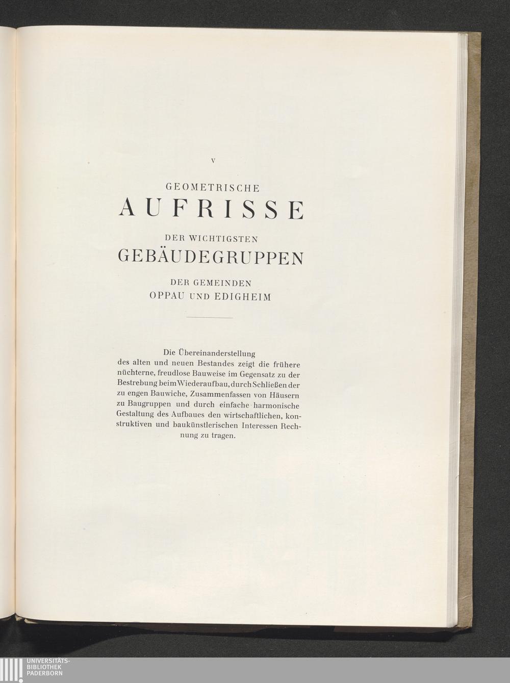 V. Geometrische Aufrisse der wichtigsten Gebäudegruppen der Gemeinden Oppau und [...]
