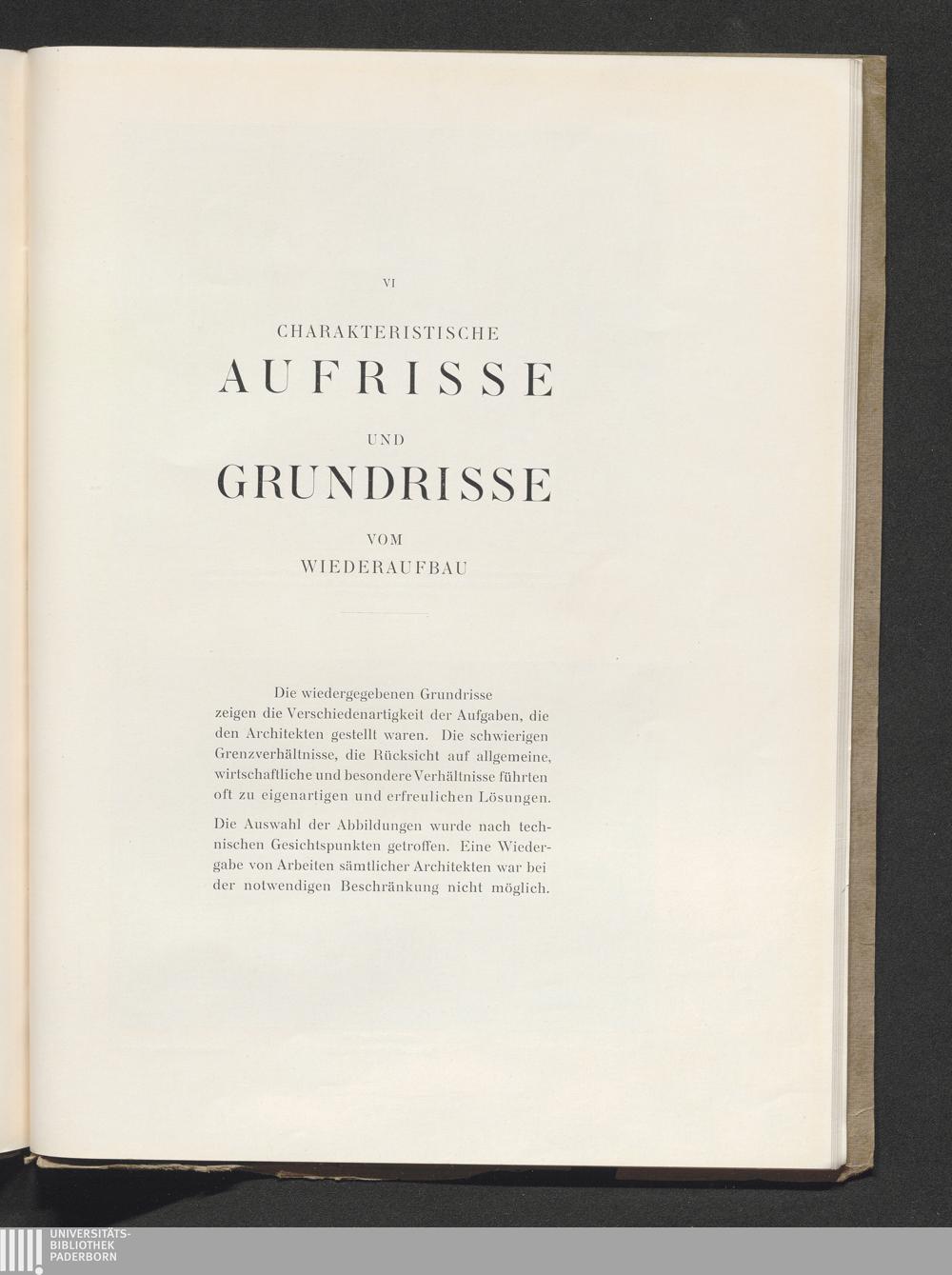 VI. Charakteristische Aufrisse und Grundrisse vom Wiederaufbau