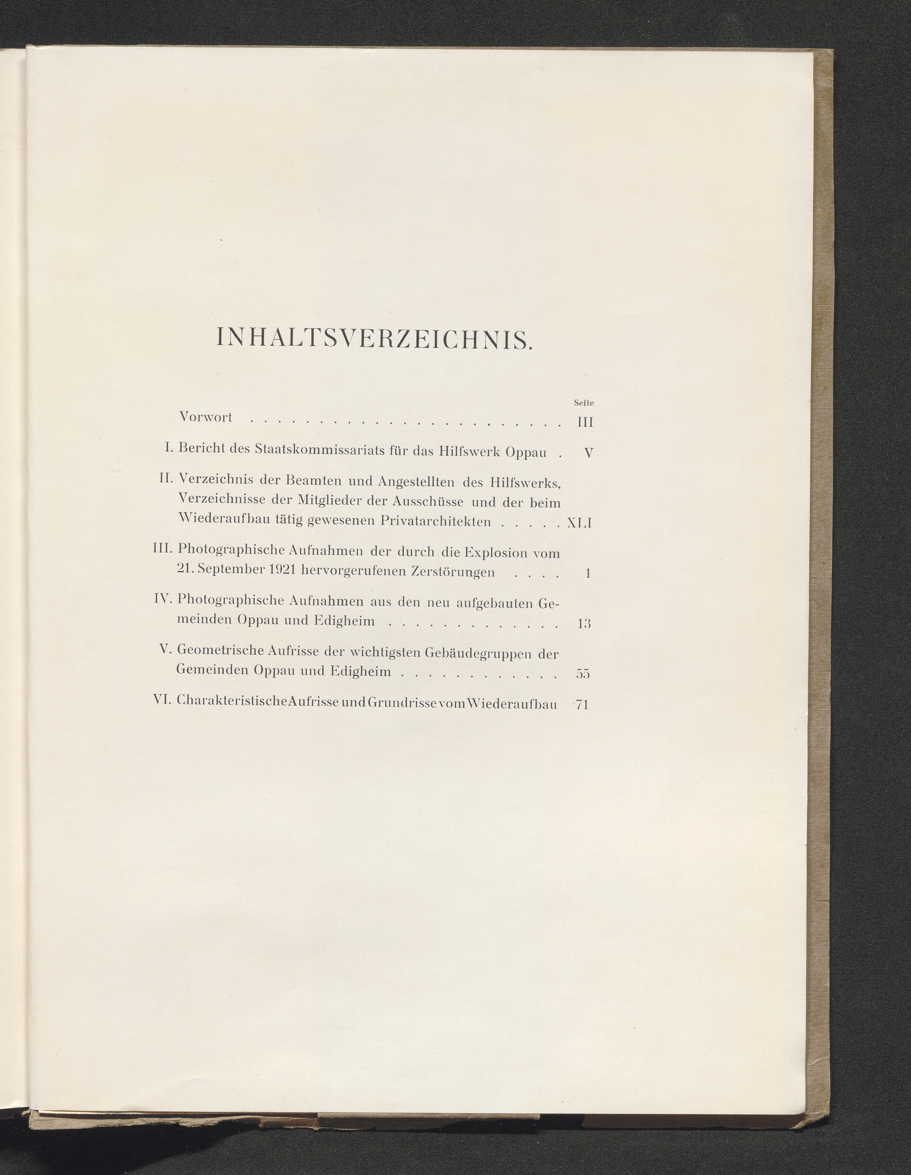 I. Bericht des Staatskommissariats für das Hilfswerk Oppau