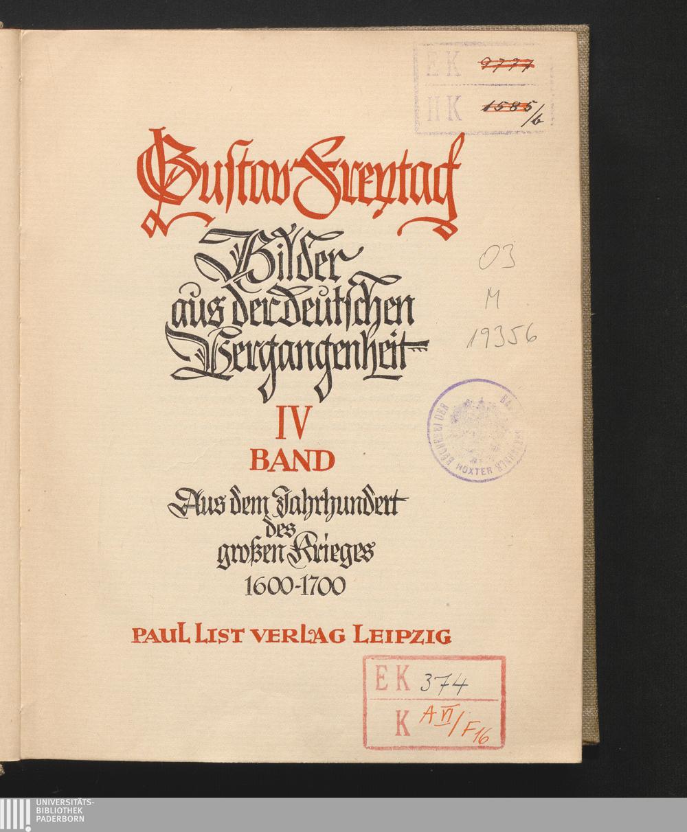 Bd. 4 (1924) Aus dem Jahrhundert des großen Krieges : 1600 - 1700