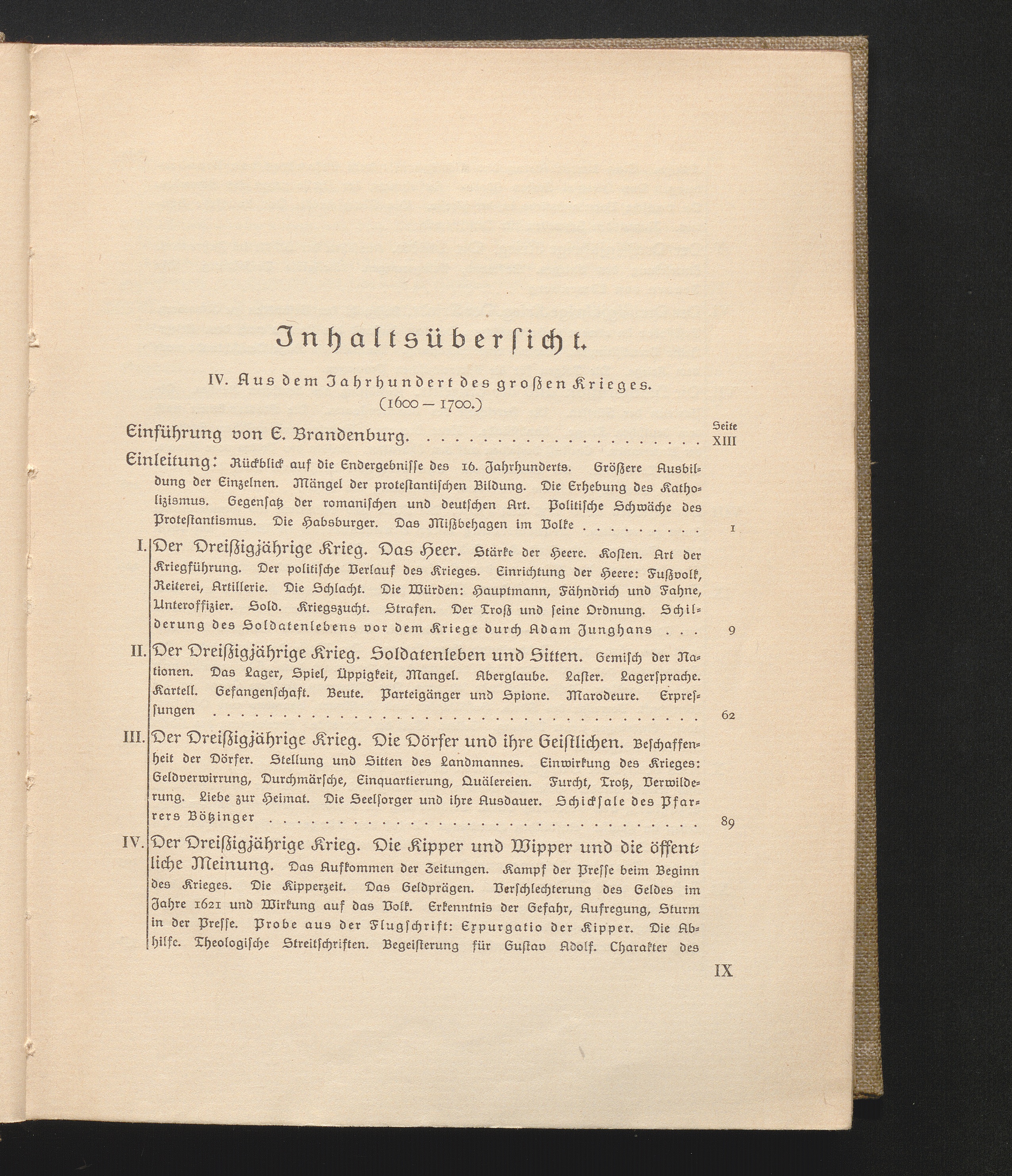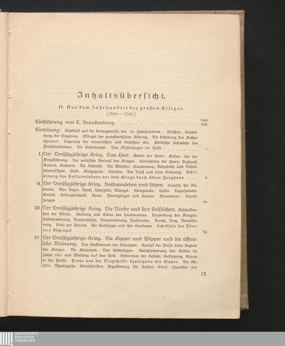 Jnhaltsübersicht. IV. Aus dem Jahrhundert des großen Krieges. (1600-1700.)