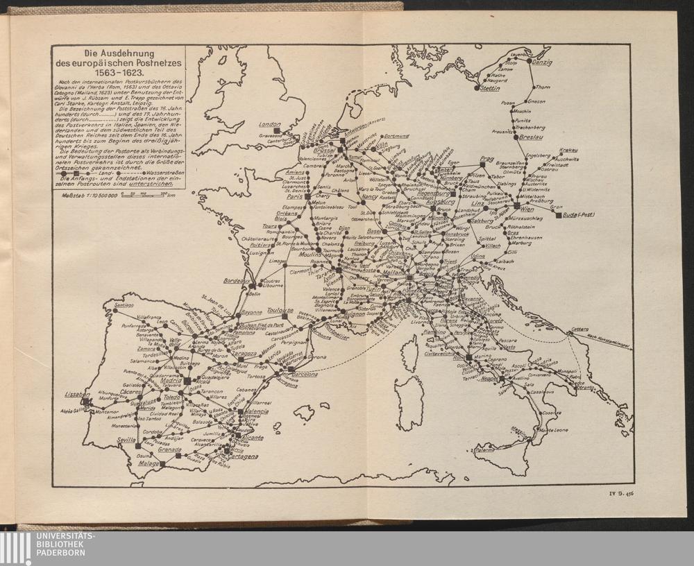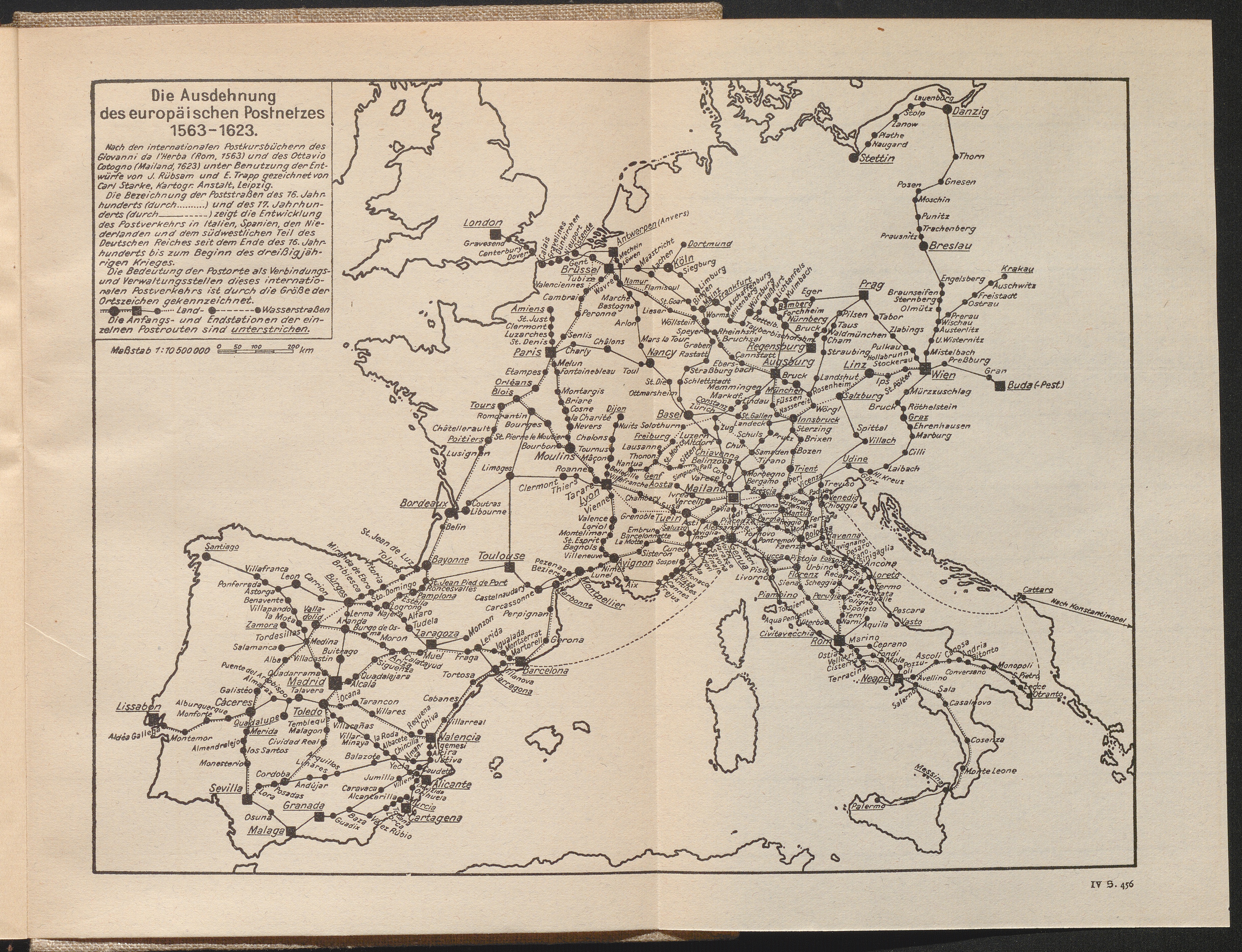 Die Ausdehnung des europäischen Postnetzes 1563 - 1623.