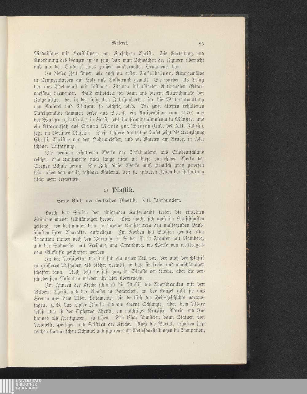 c) Plastik. Erste Blüte der deutschen Plastik. XIII. Jahrhundert.