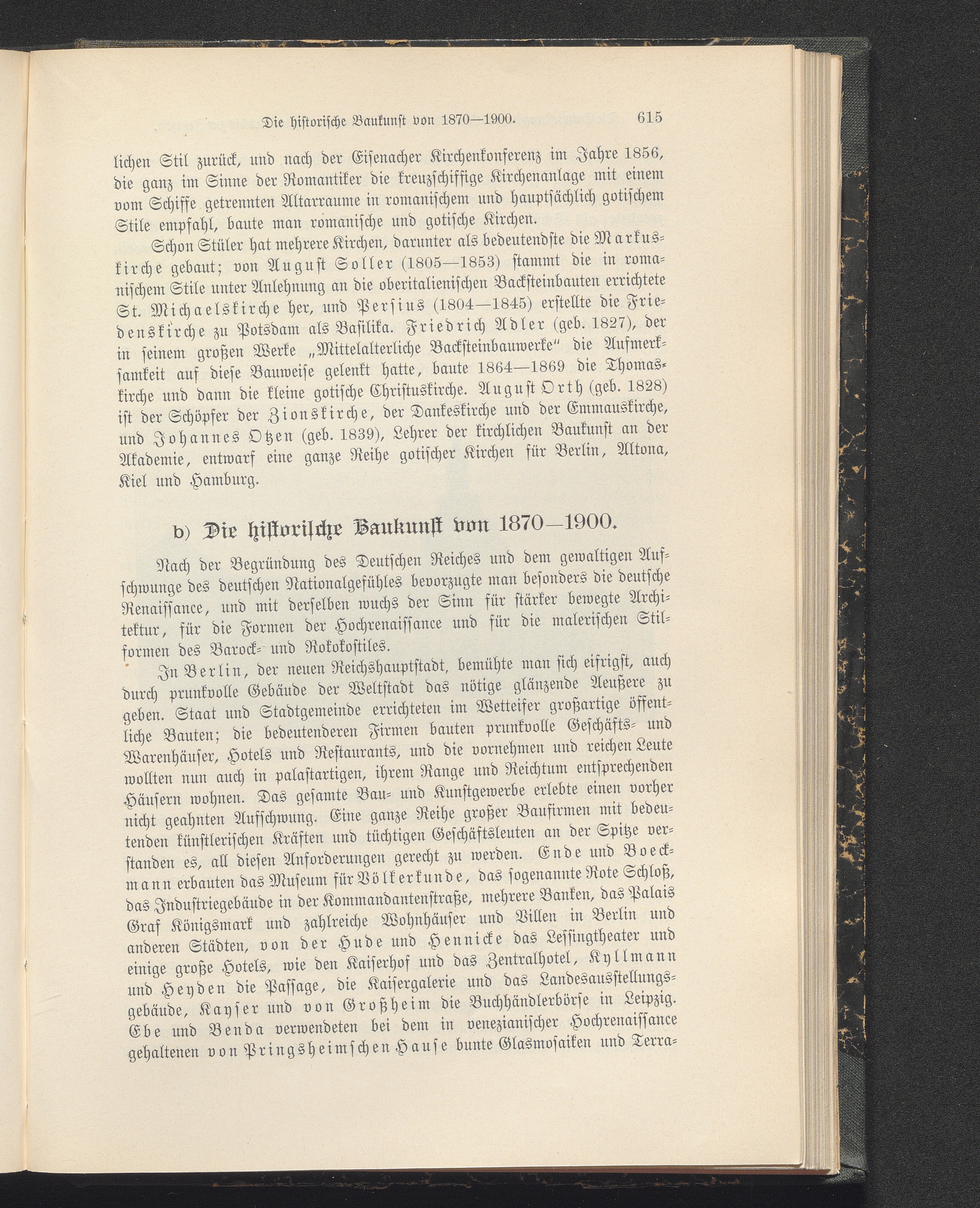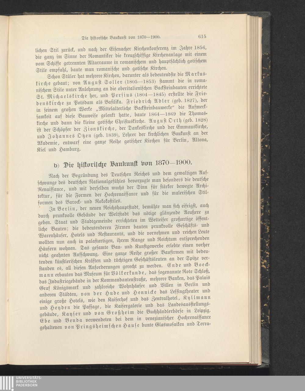 b) Die historische Baukunst von 1870-1900.