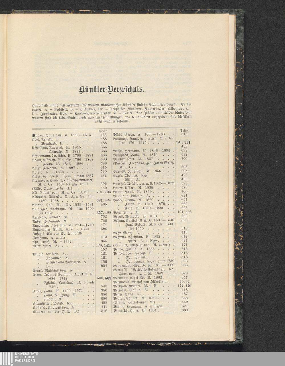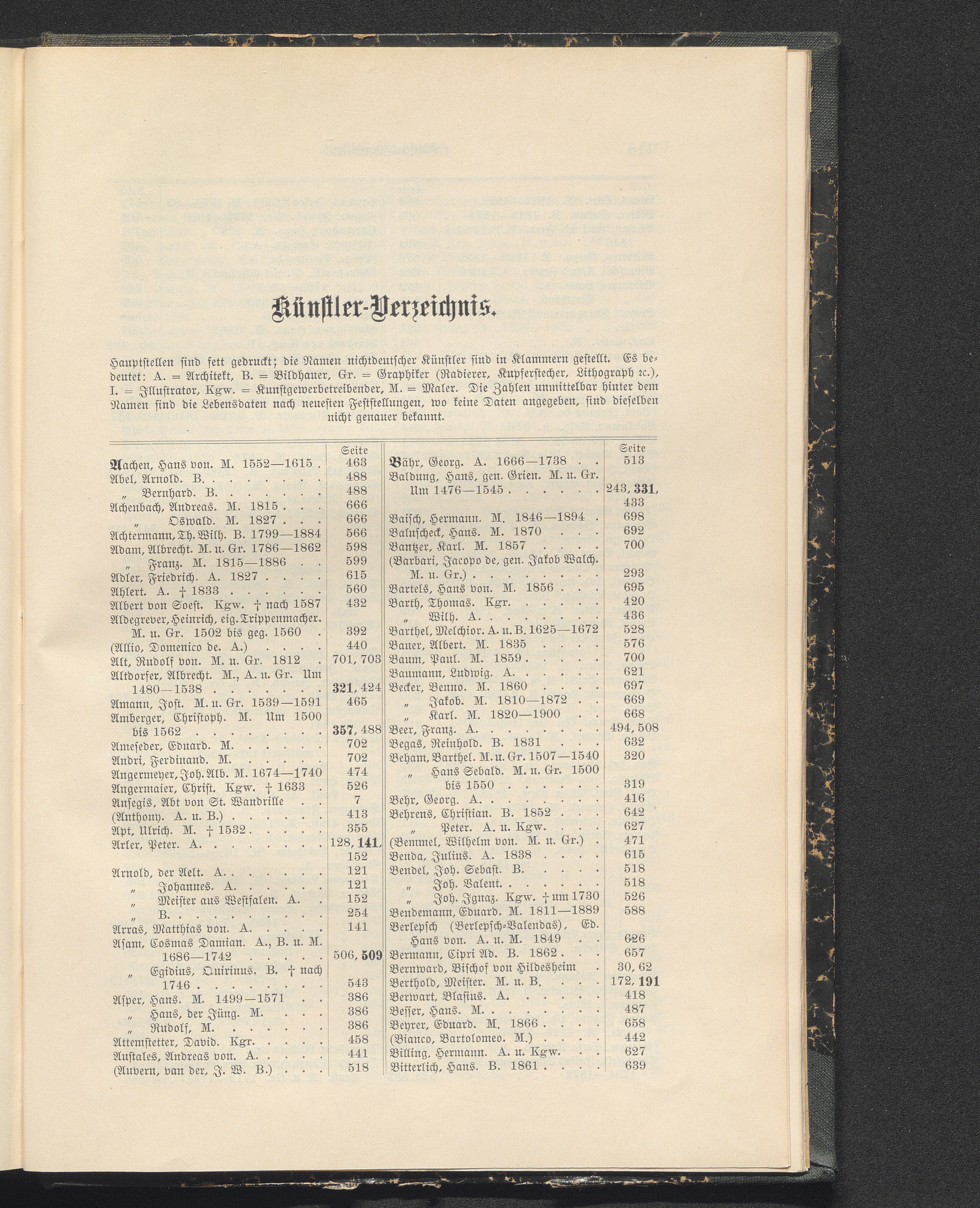 Künstlerverzeichnis.