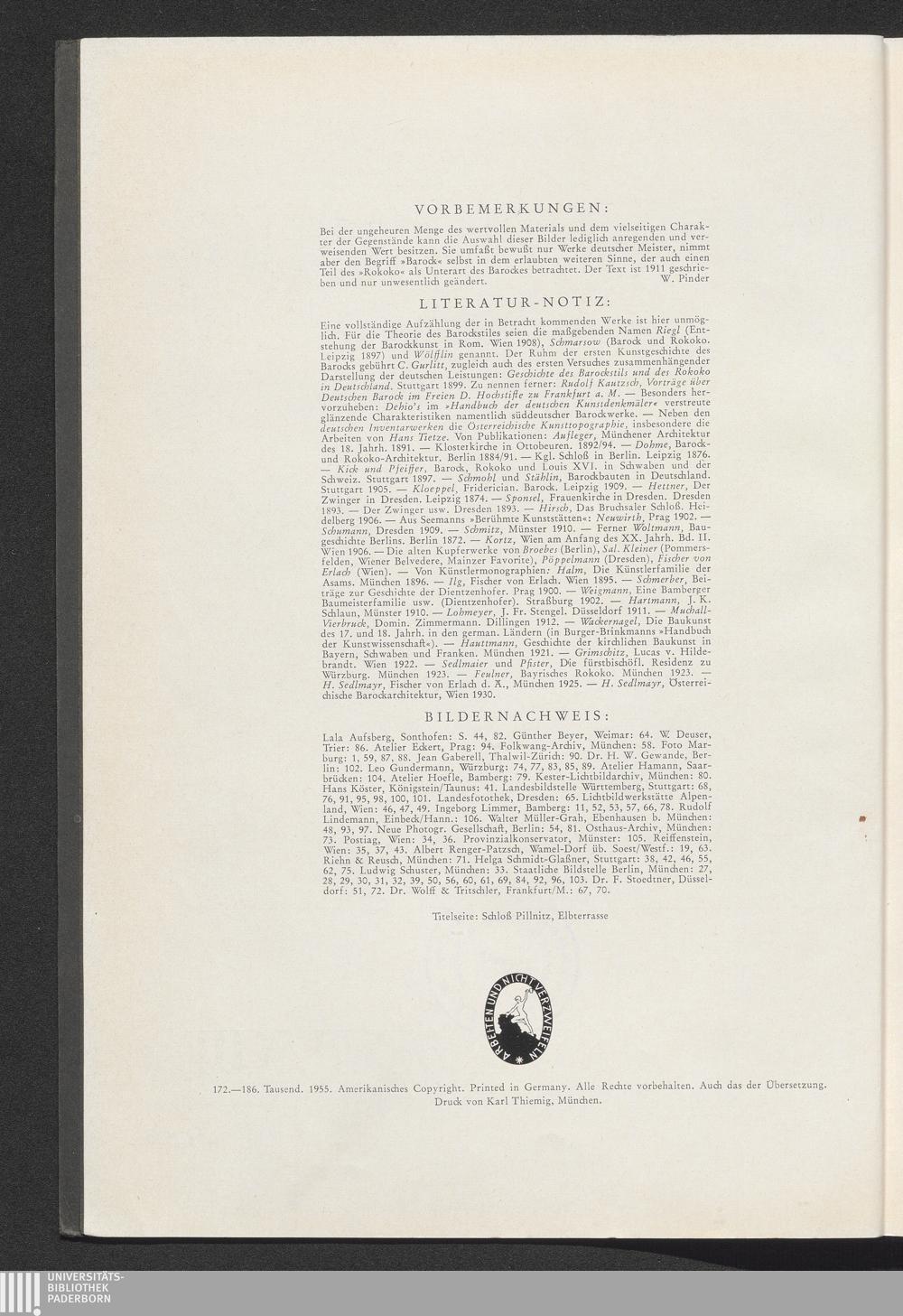 Deutscher Barock : die großen Baumeister des 18. Jahrhunderts / Wilhelm Pinder
